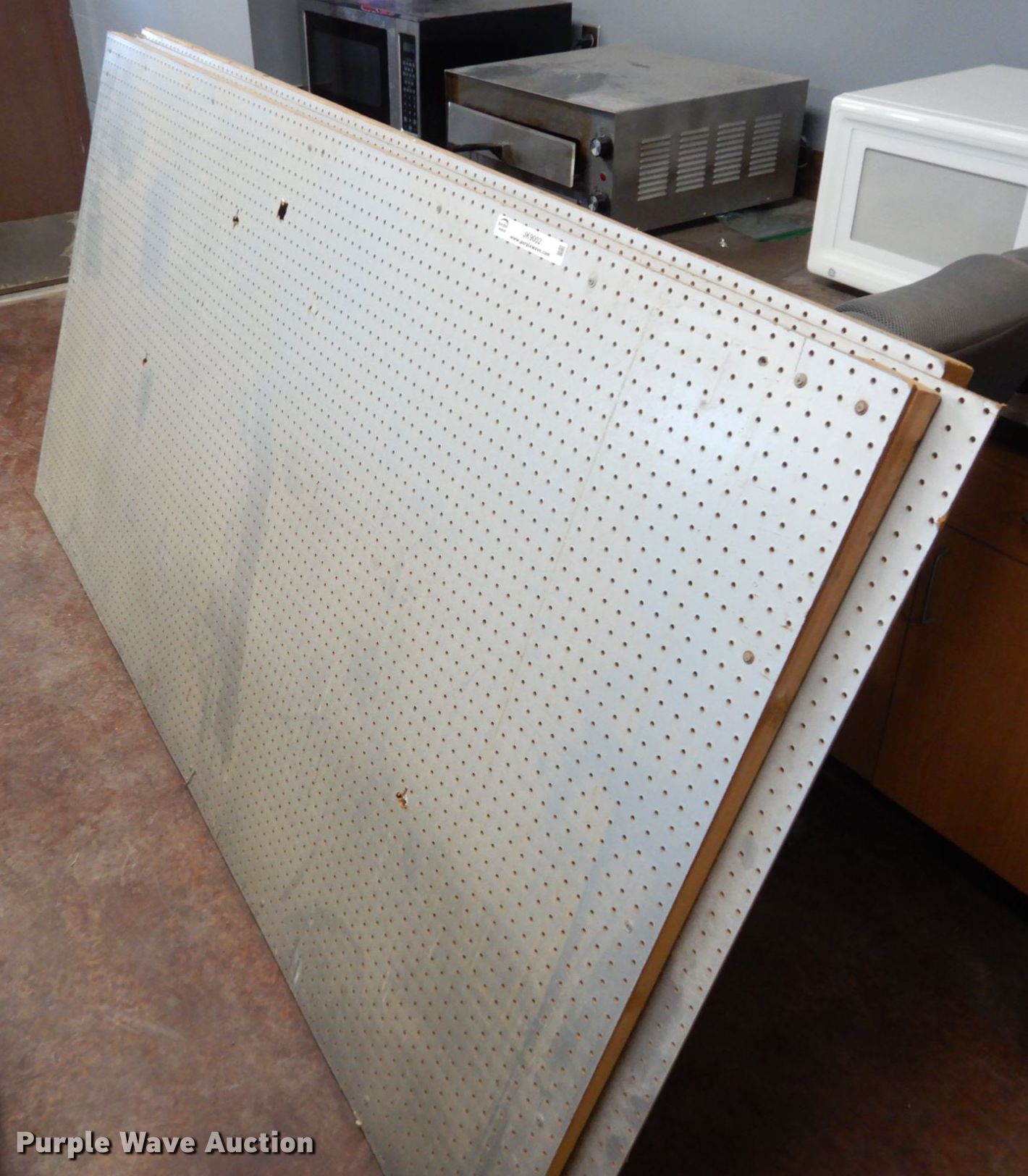 Purple Wave is selling a used Furniture in Kansas. This item is a Furniture with the following: Approx. 24 chairs, (3) peg boards, 48" x 96", (2) trash cans, Swim diaper dispenser, Magnavox 32" television, Sanyo 48" television, Dolly