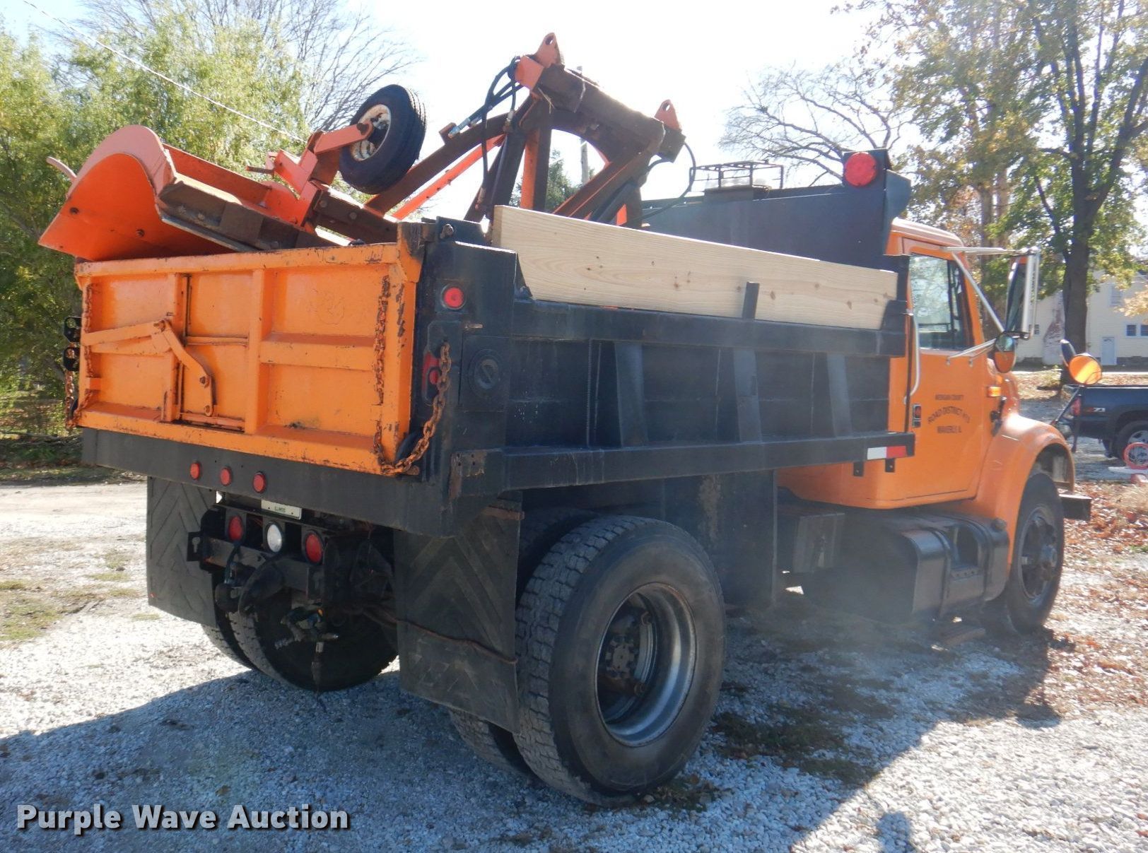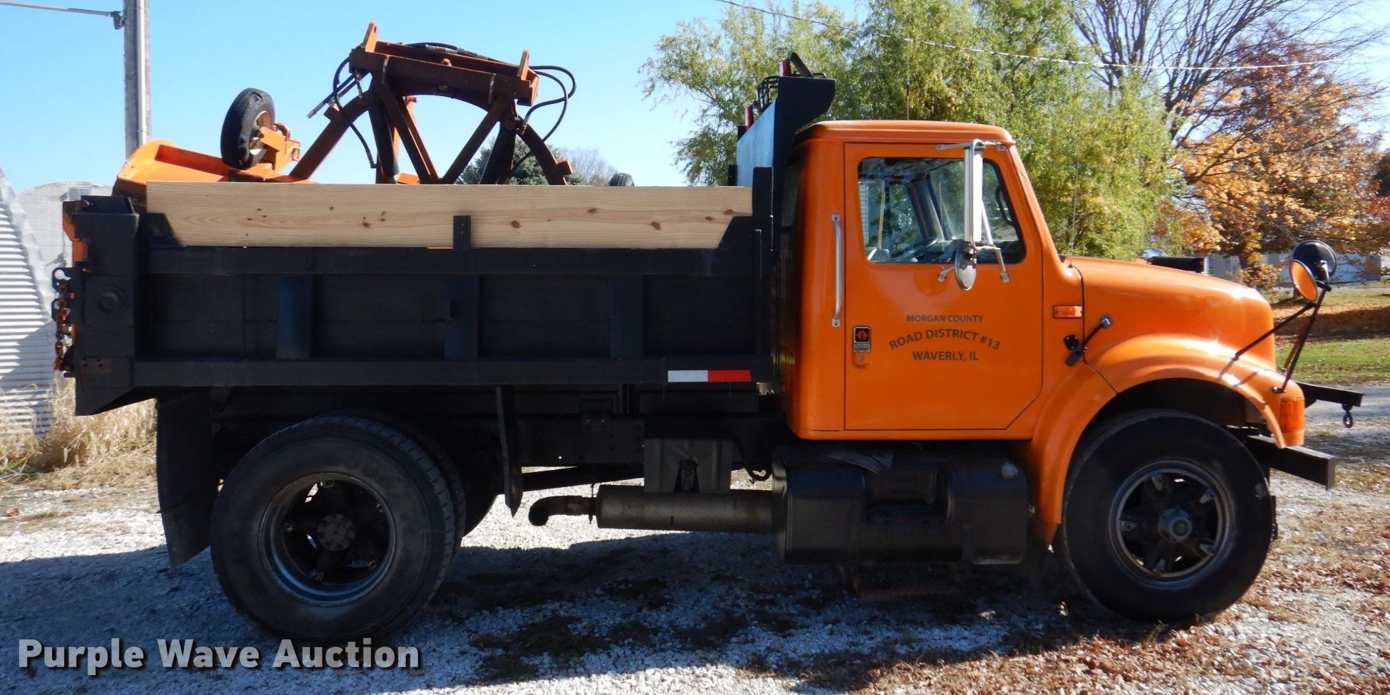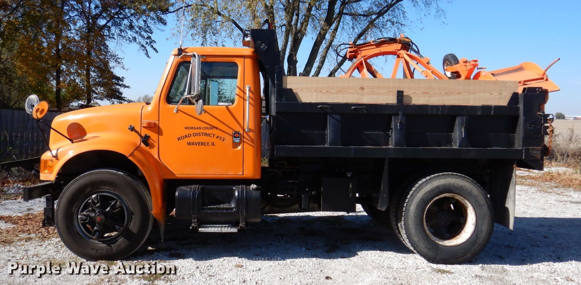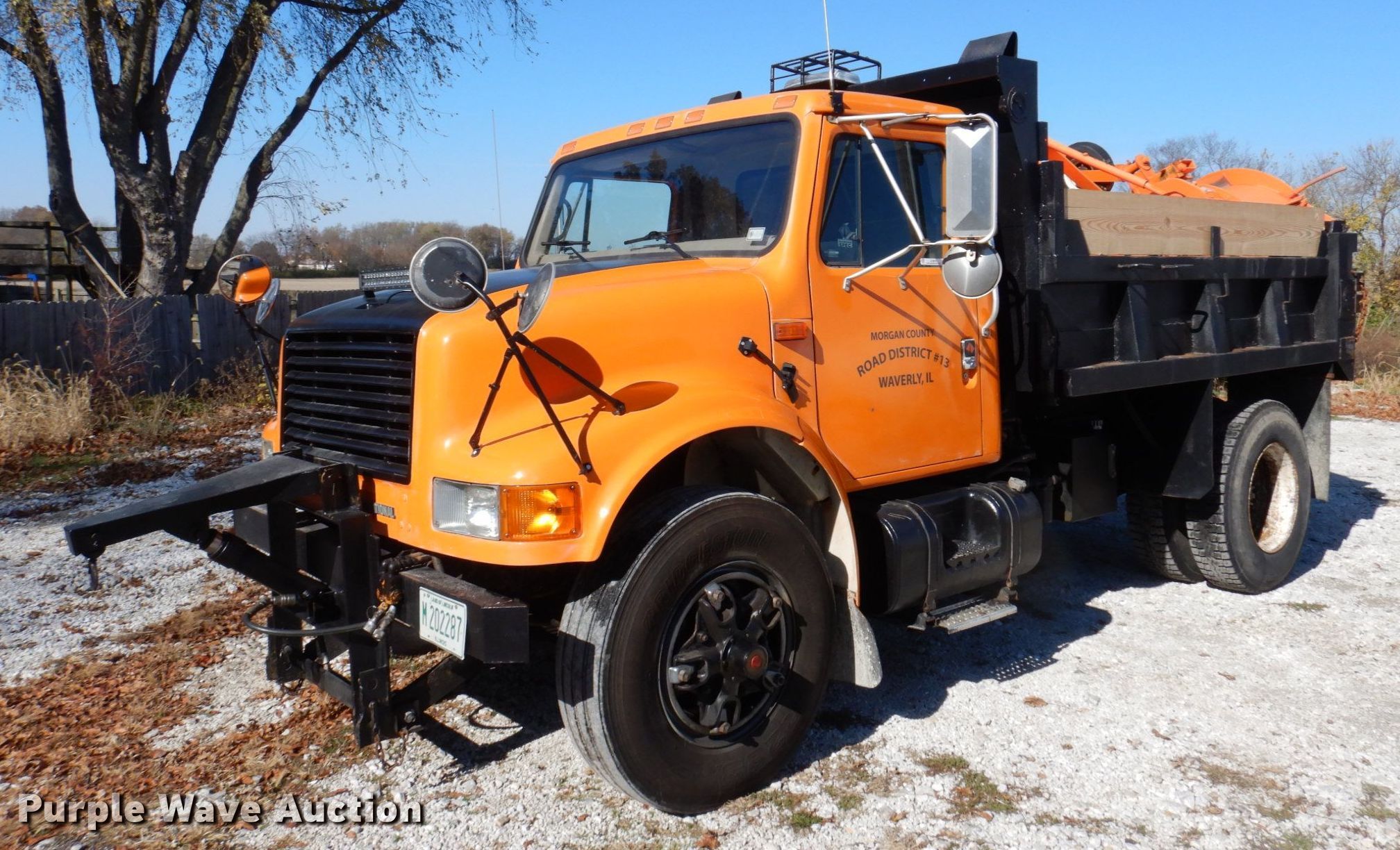 1988 International S1954 dump truck. Miles: 158,311 on odometer Actual mileage unknown, Hours: 5,881 on meter, VIN: 1HTLDZZP6JH610187. Engine International DT466, Cylinders: 6, Fuel type: Diesel. Transmission Automatic. Chassis Double frame, Axles: Single, Suspension: Spring, Brakes: Hydraulic, PTO. Interior Heat, Cruise control. Features Dump bed 10' L x 95" W, Side height: 24", Side board height: 11", Bed type: Steel, Ram: Single , End gate: Manual, Plow Henke 41R11, Width: 132". Tires Size: 11R22.5. Notes Cab replaced with 2001 International 4700, Non-operational speedometer, Non-operational hour meter. Illinois title. Morgan County Road District 13. 400 North Prospect st. Waverly, IL 62692