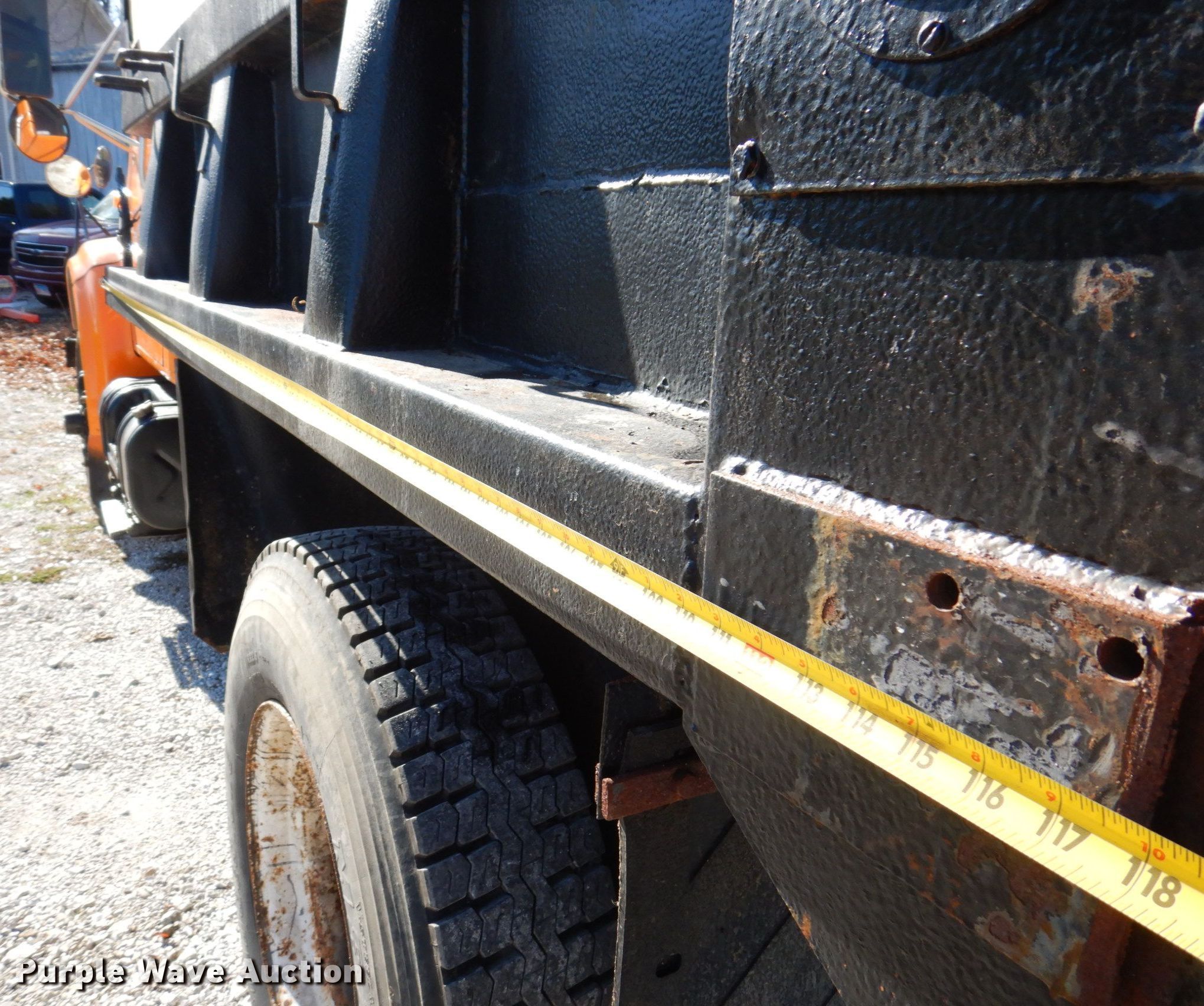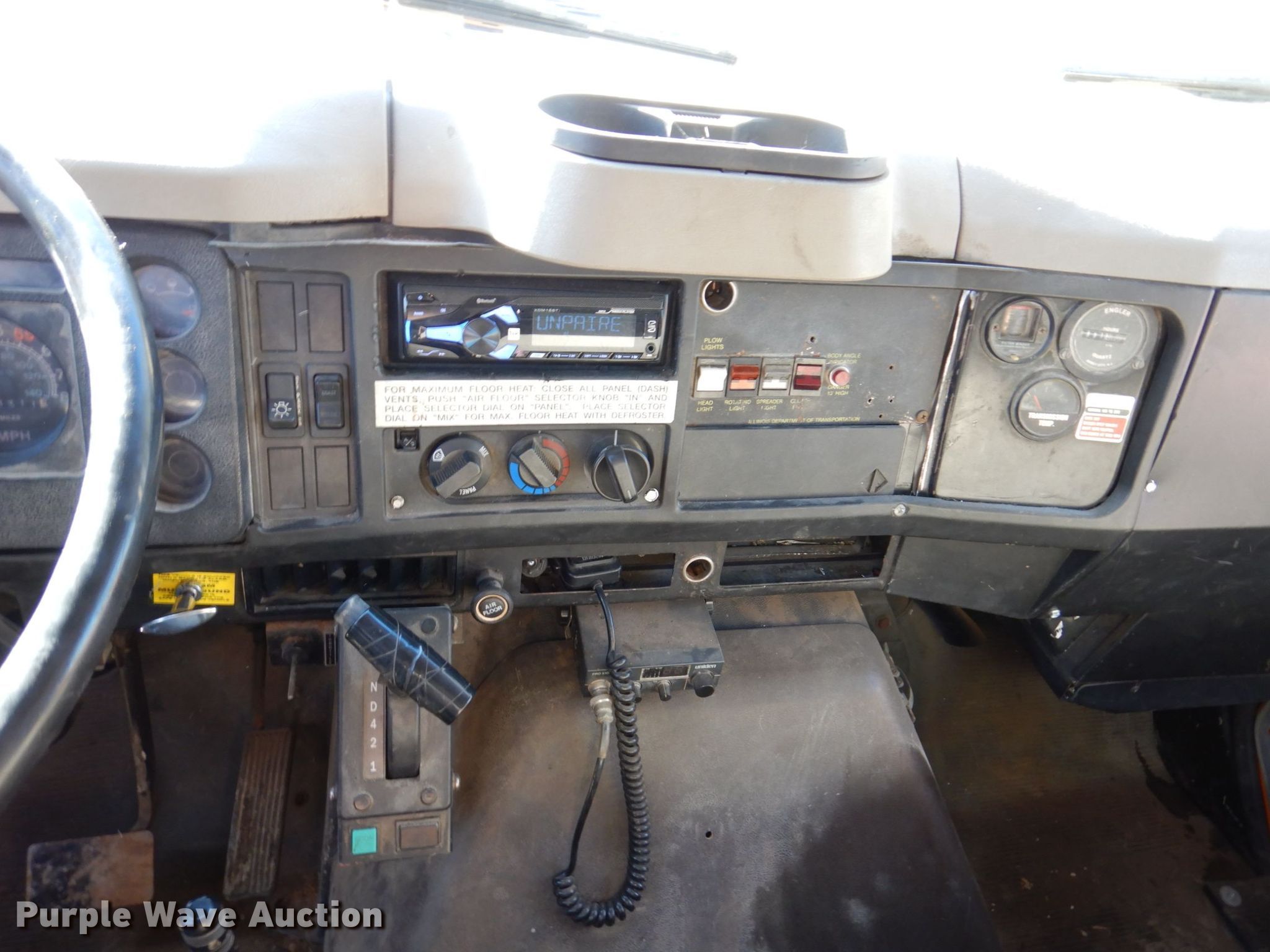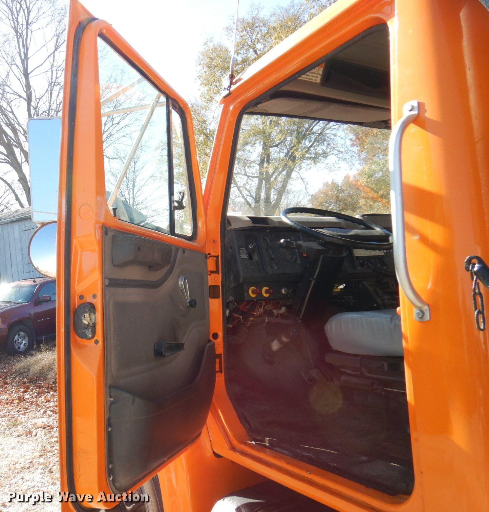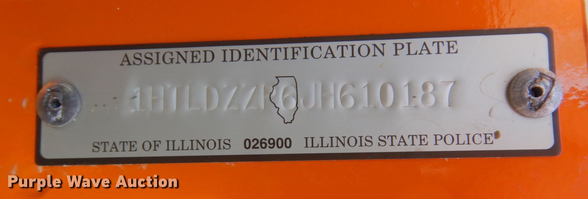 1988 International S1954 dump truck. Miles: 158,311 on odometer Actual mileage unknown, Hours: 5,881 on meter, VIN: 1HTLDZZP6JH610187. Engine International DT466, Cylinders: 6, Fuel type: Diesel. Transmission Automatic. Chassis Double frame, Axles: Single, Suspension: Spring, Brakes: Hydraulic, PTO. Interior Heat, Cruise control. Features Dump bed 10' L x 95" W, Side height: 24", Side board height: 11", Bed type: Steel, Ram: Single , End gate: Manual, Plow Henke 41R11, Width: 132". Tires Size: 11R22.5. Notes Cab replaced with 2001 International 4700, Non-operational speedometer, Non-operational hour meter. Illinois title. Morgan County Road District 13. 400 North Prospect st. Waverly, IL 62692