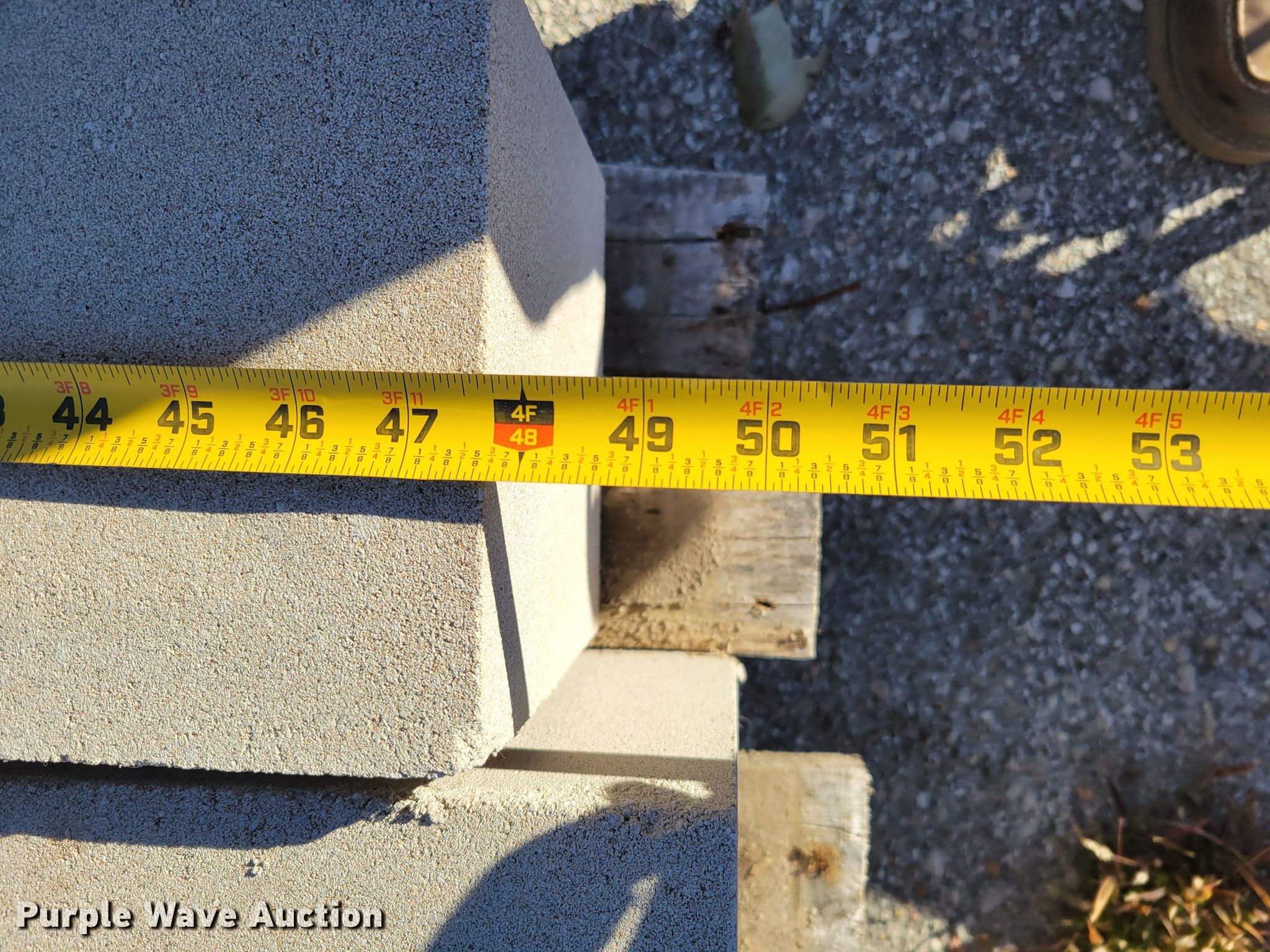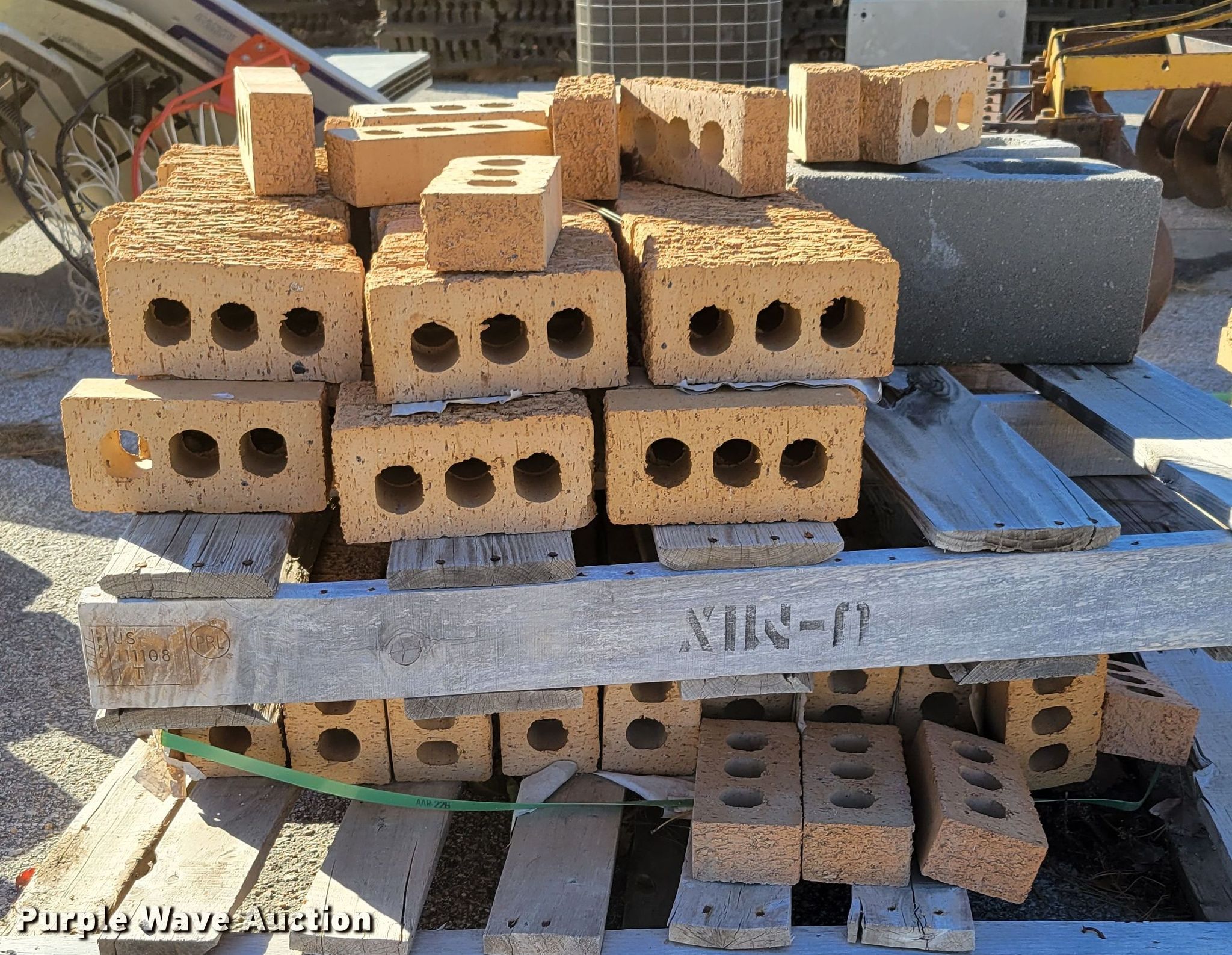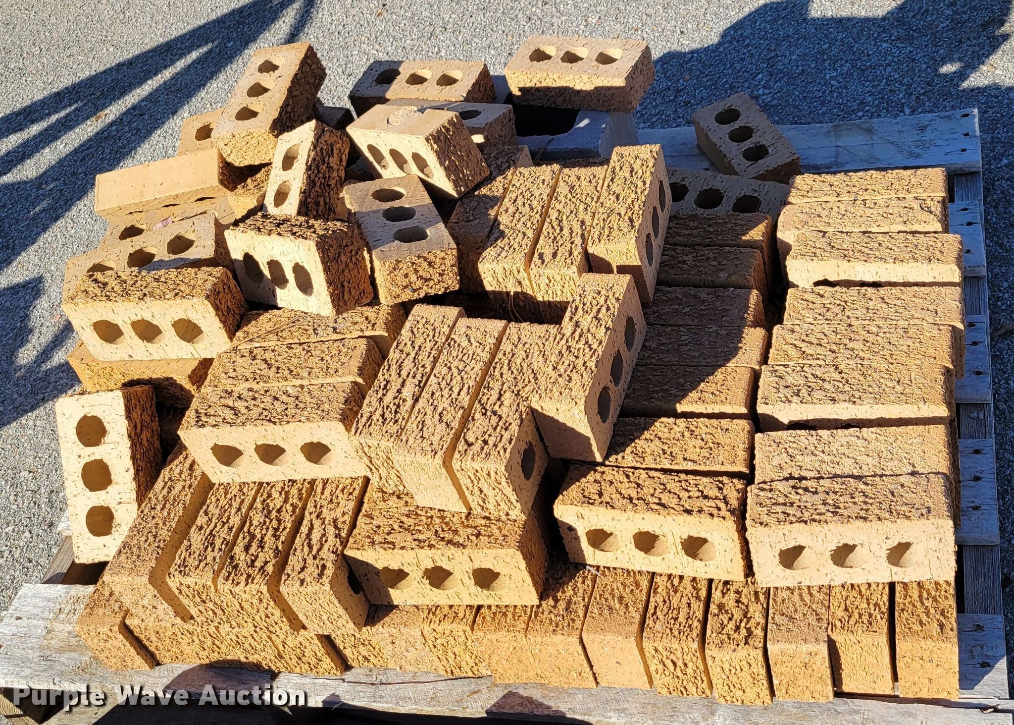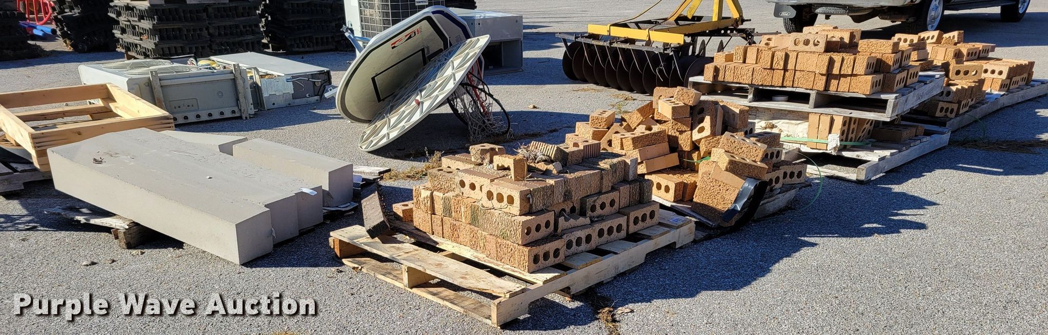 Purple Wave is selling a used Building Materials in Iowa. This item is a Building materials with the following: (3) 48"L x 7" W x 7" H concrete blocks, (6) pallets of bricks
