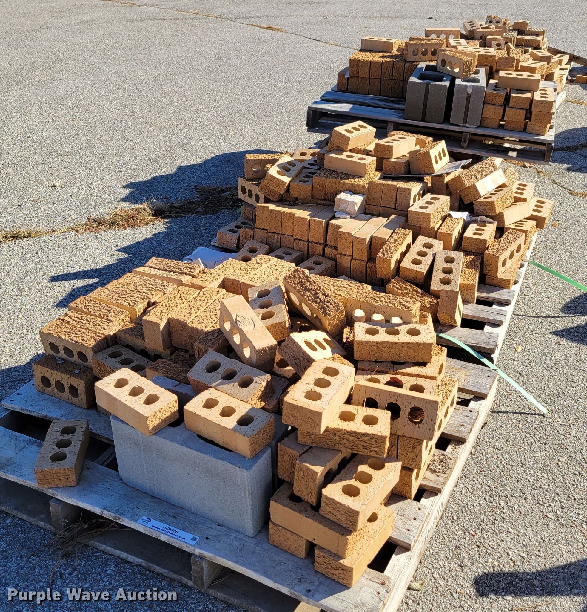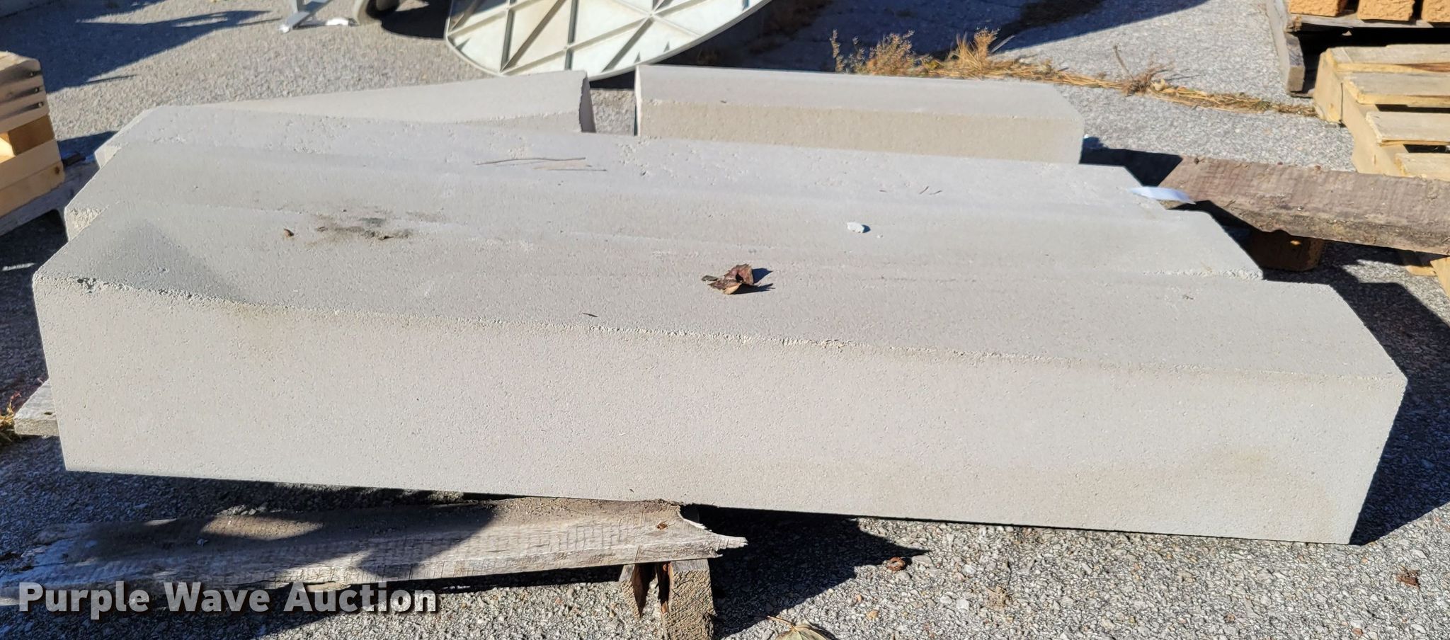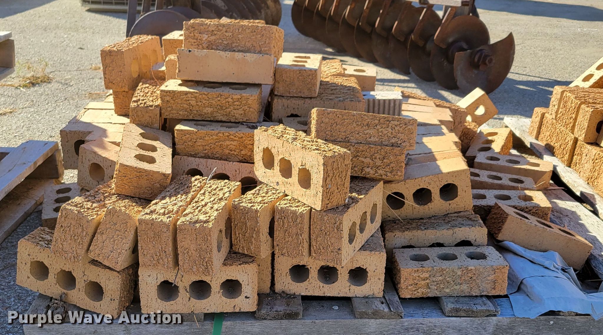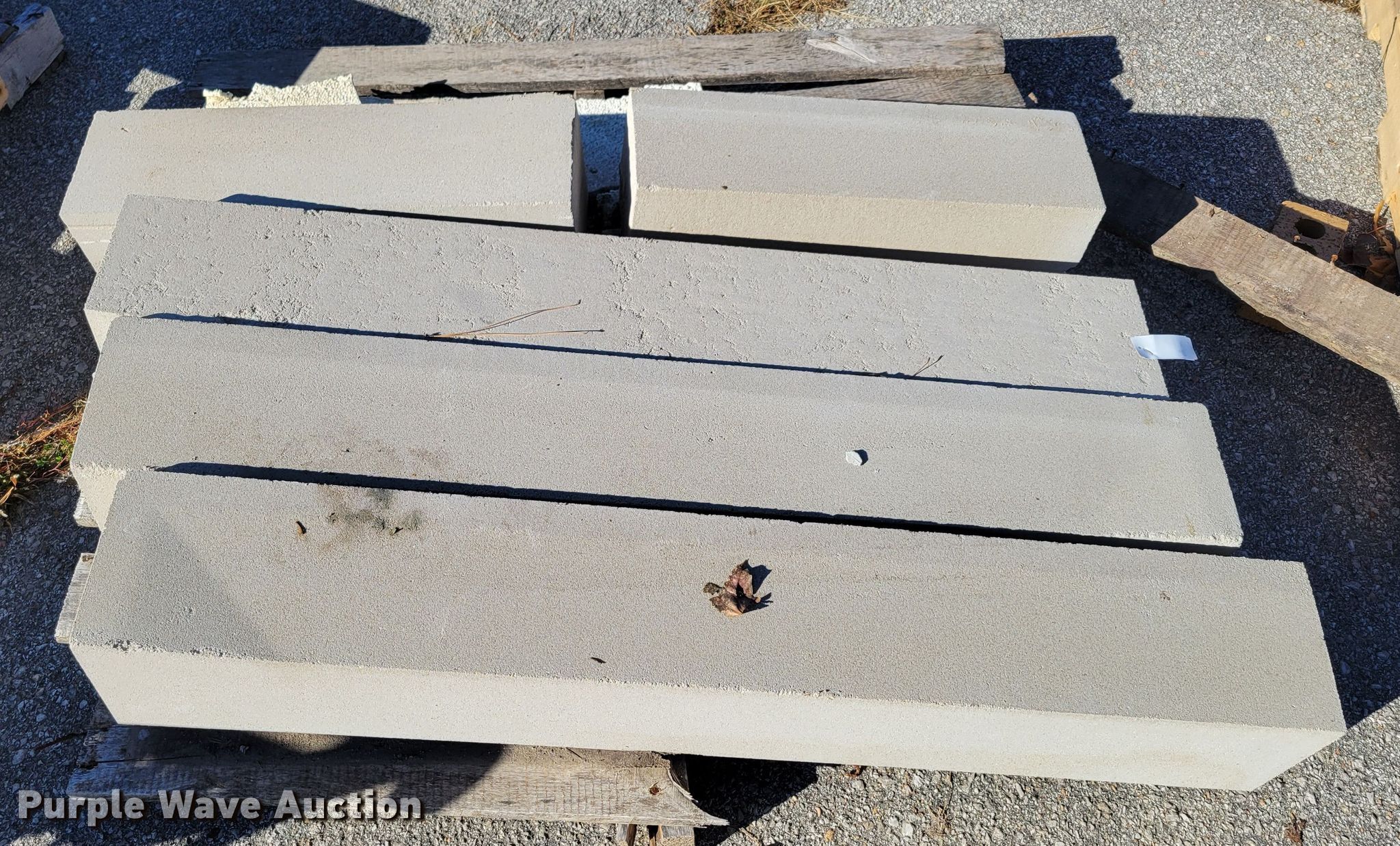 Purple Wave is selling a used Building Materials in Iowa. This item is a Building materials with the following: (3) 48"L x 7" W x 7" H concrete blocks, (6) pallets of bricks