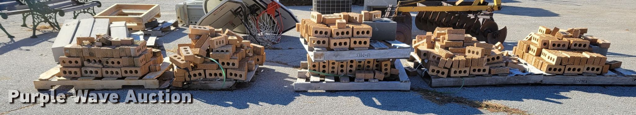 Building materials. (3) 48"L x 7" W x 7" H concrete blocks, (6) pallets of bricks. Missouri Valley Community School District. 418 N 7th Street. Missouri Valley, IA 51555