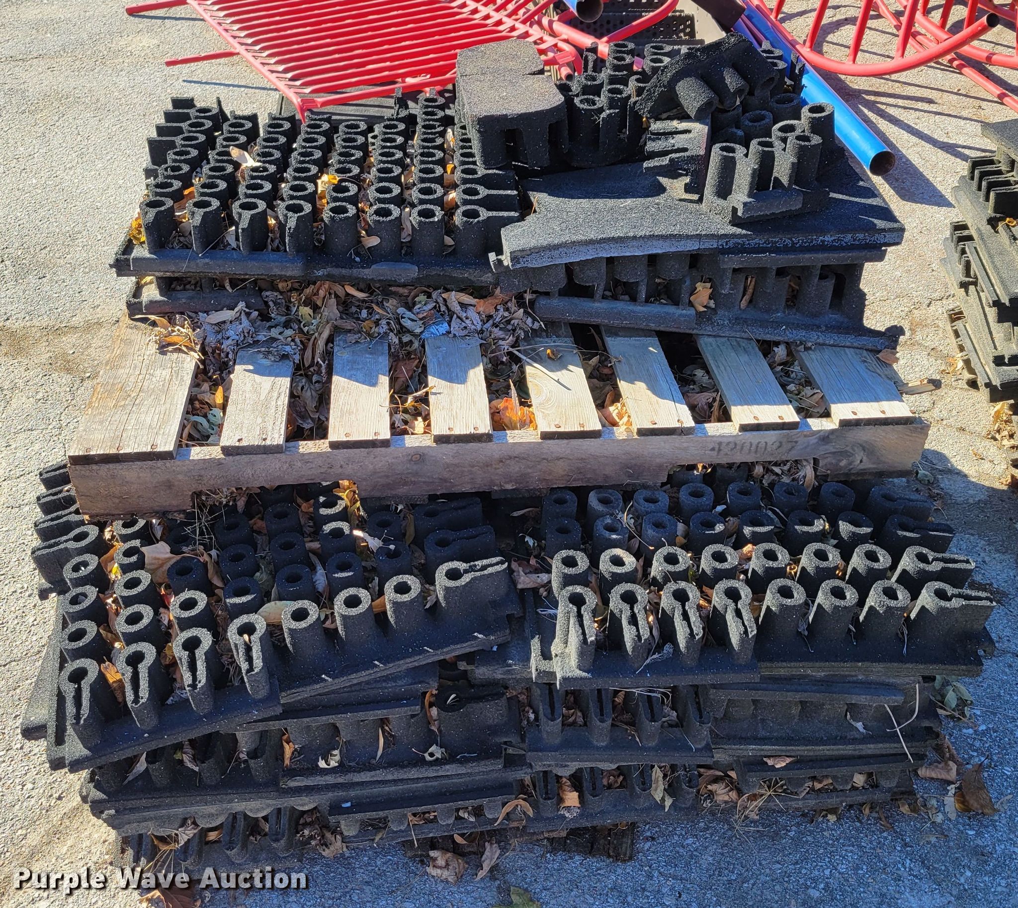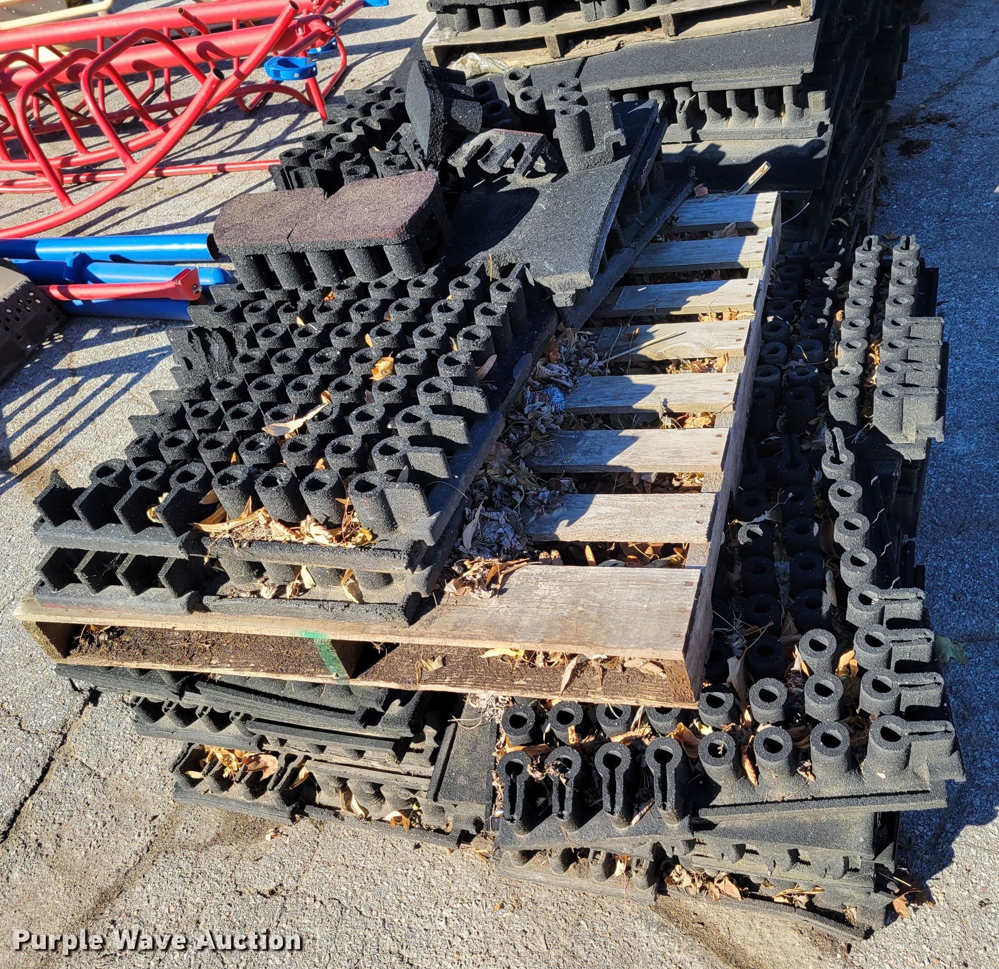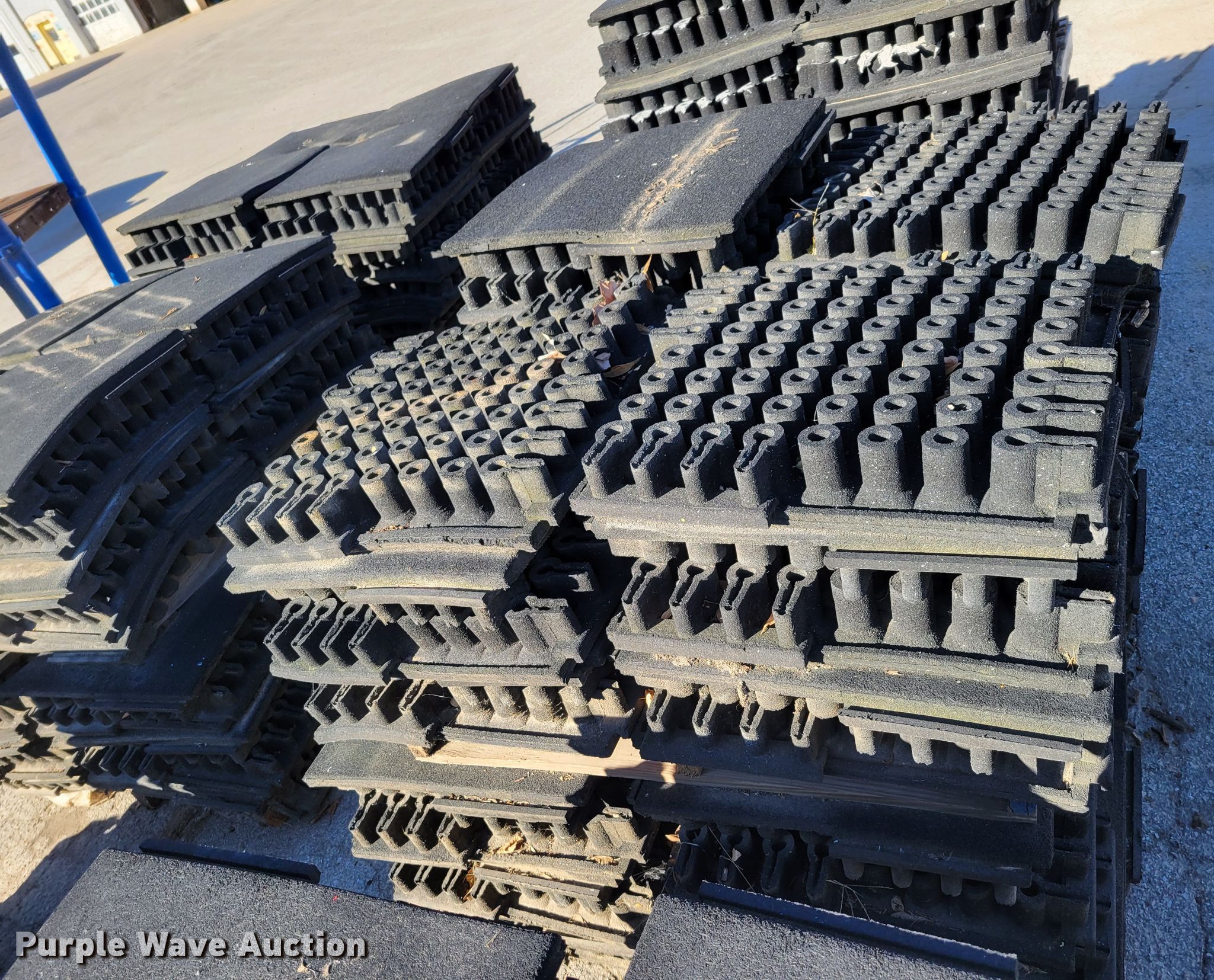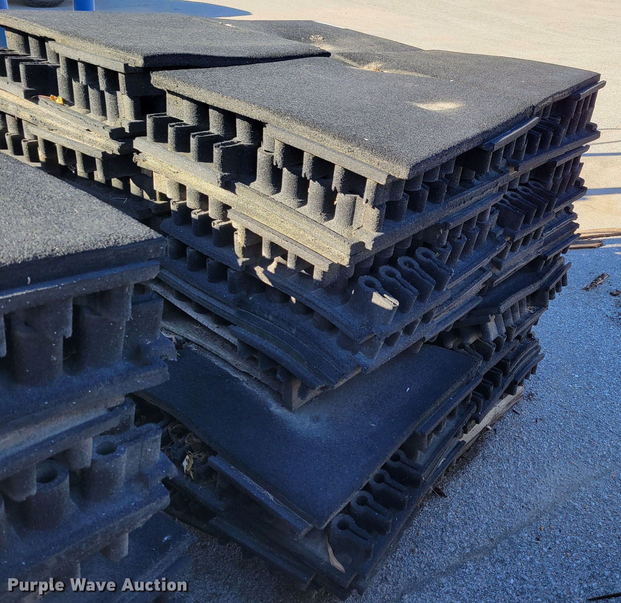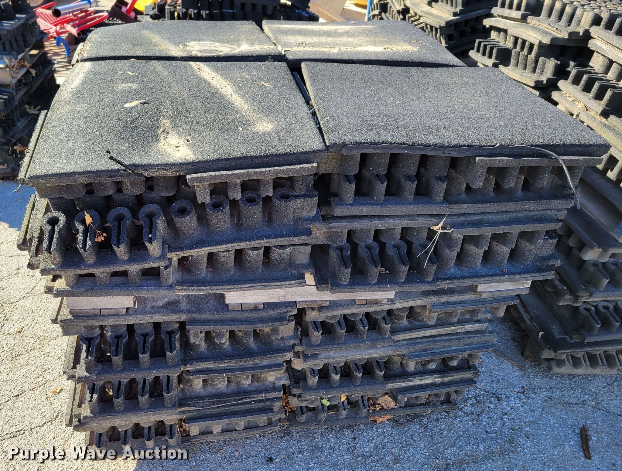 Purple Wave is selling a used Building Materials in Iowa. This item is a Approximately 264 pieces of artificial playground turf with the following: 48" x 48", (7) pallets