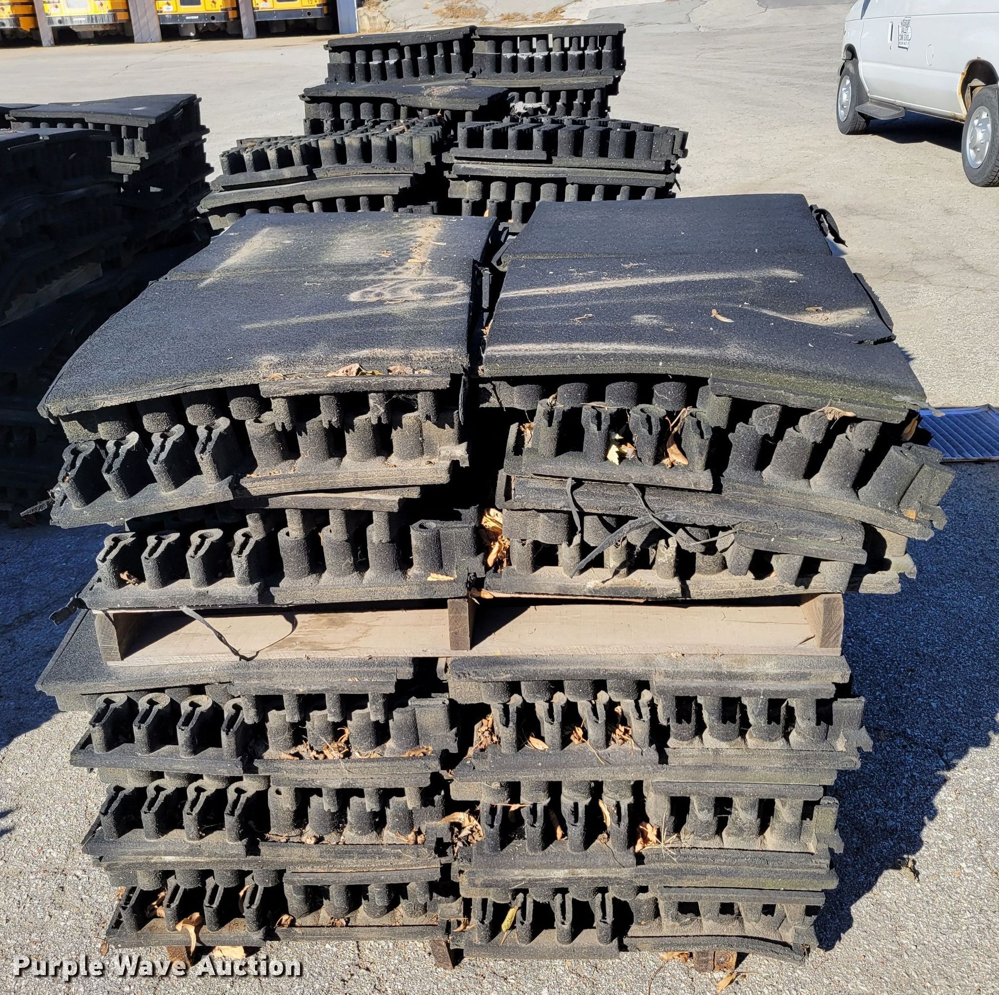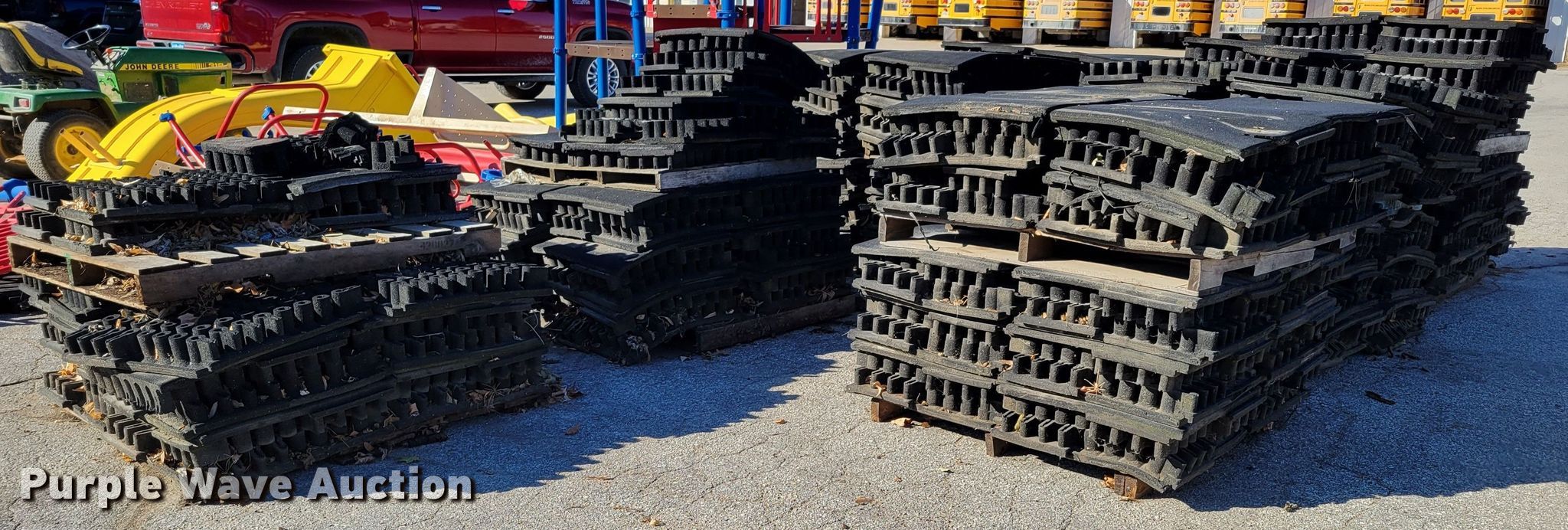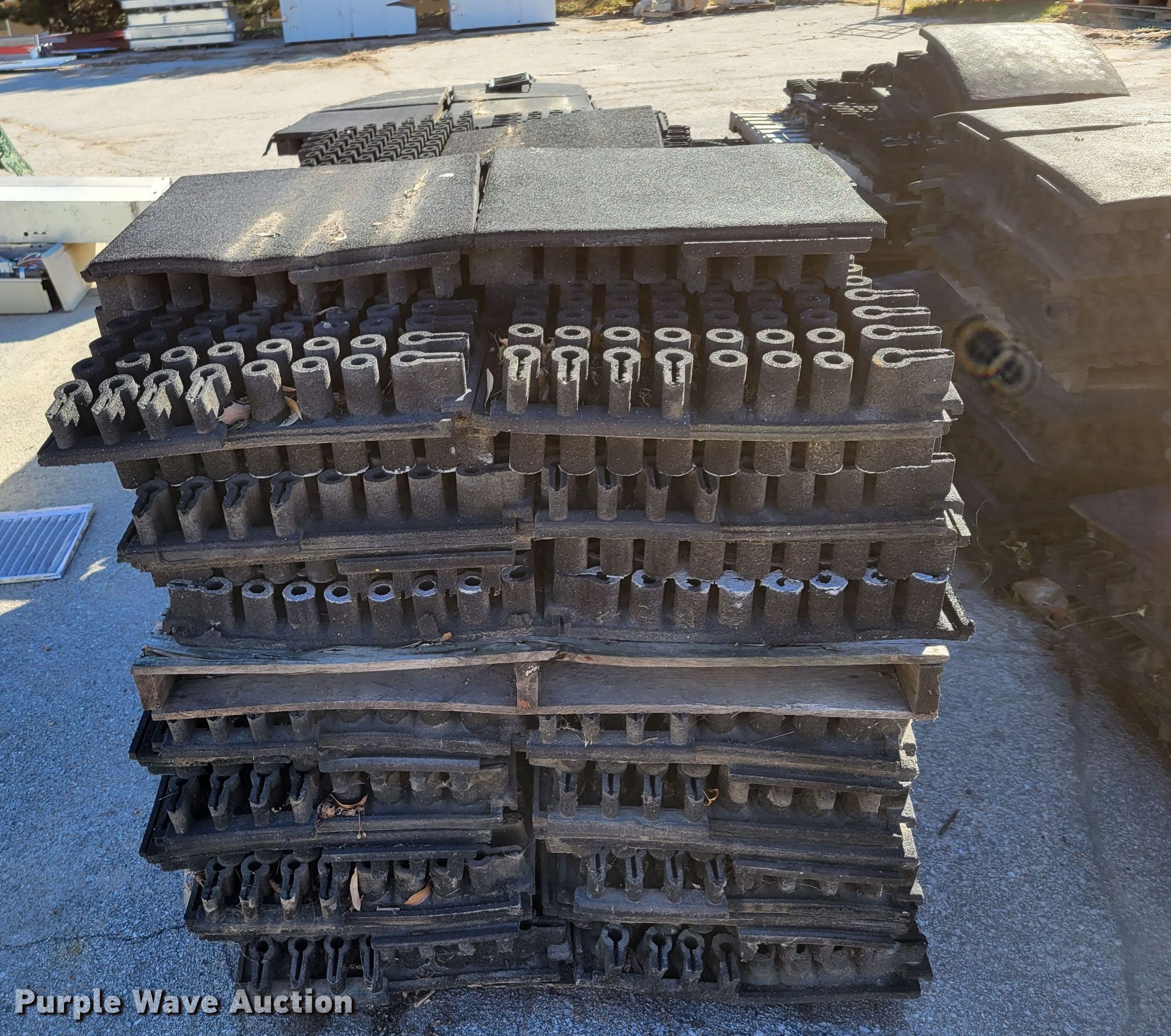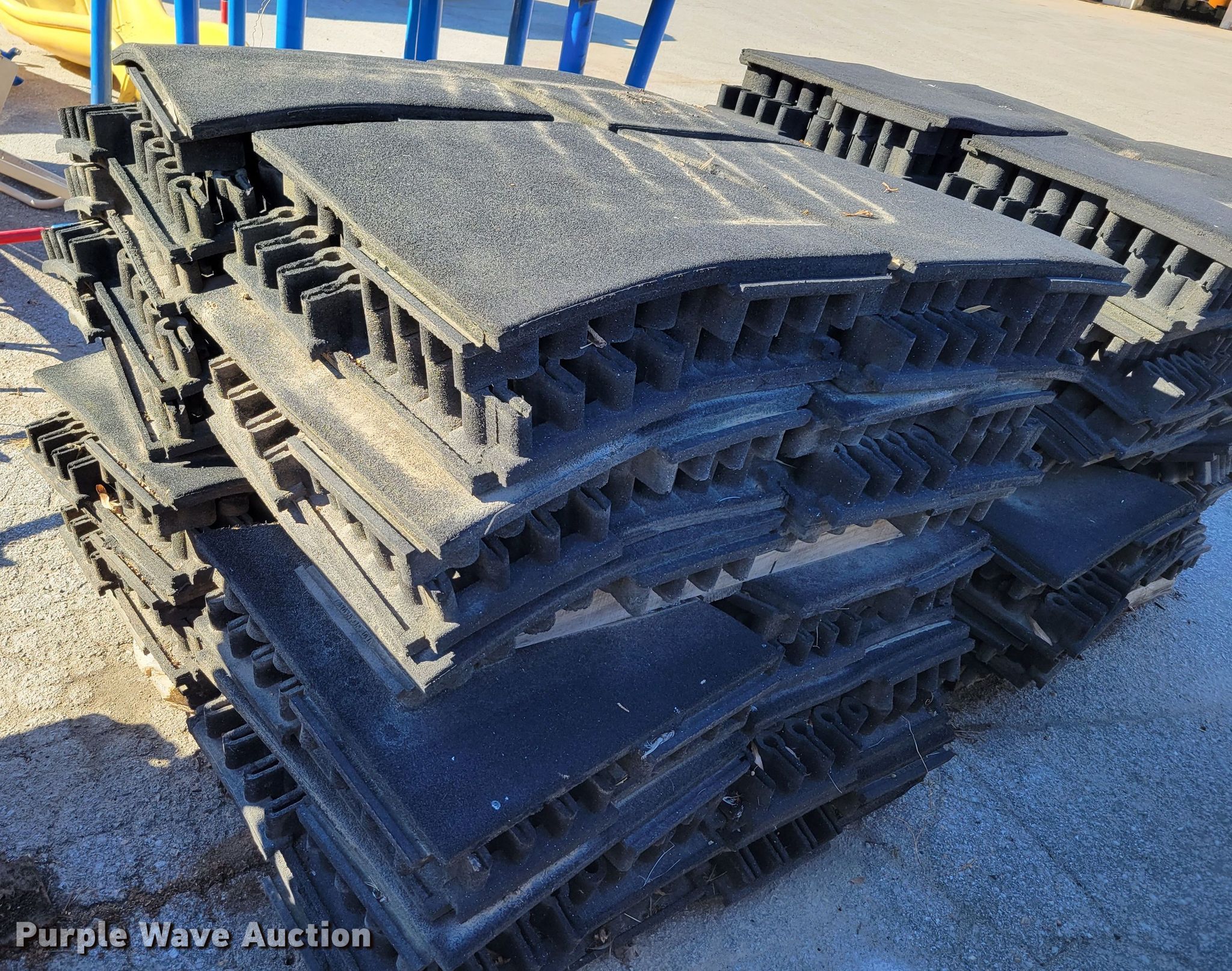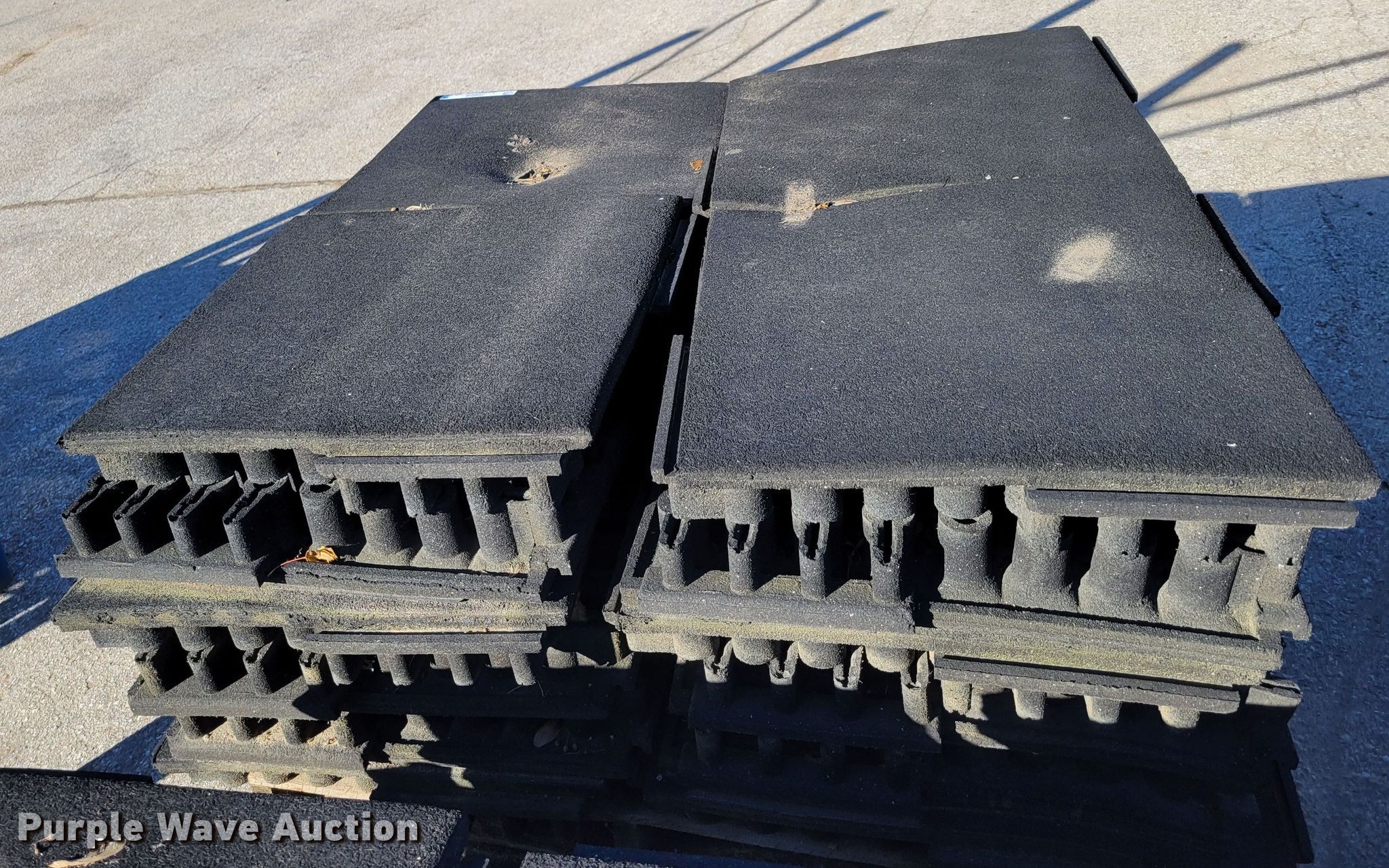 Purple Wave is selling a used Building Materials in Iowa. This item is a Approximately 264 pieces of artificial playground turf with the following: 48" x 48", (7) pallets