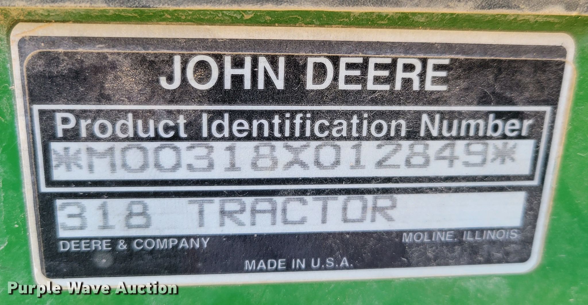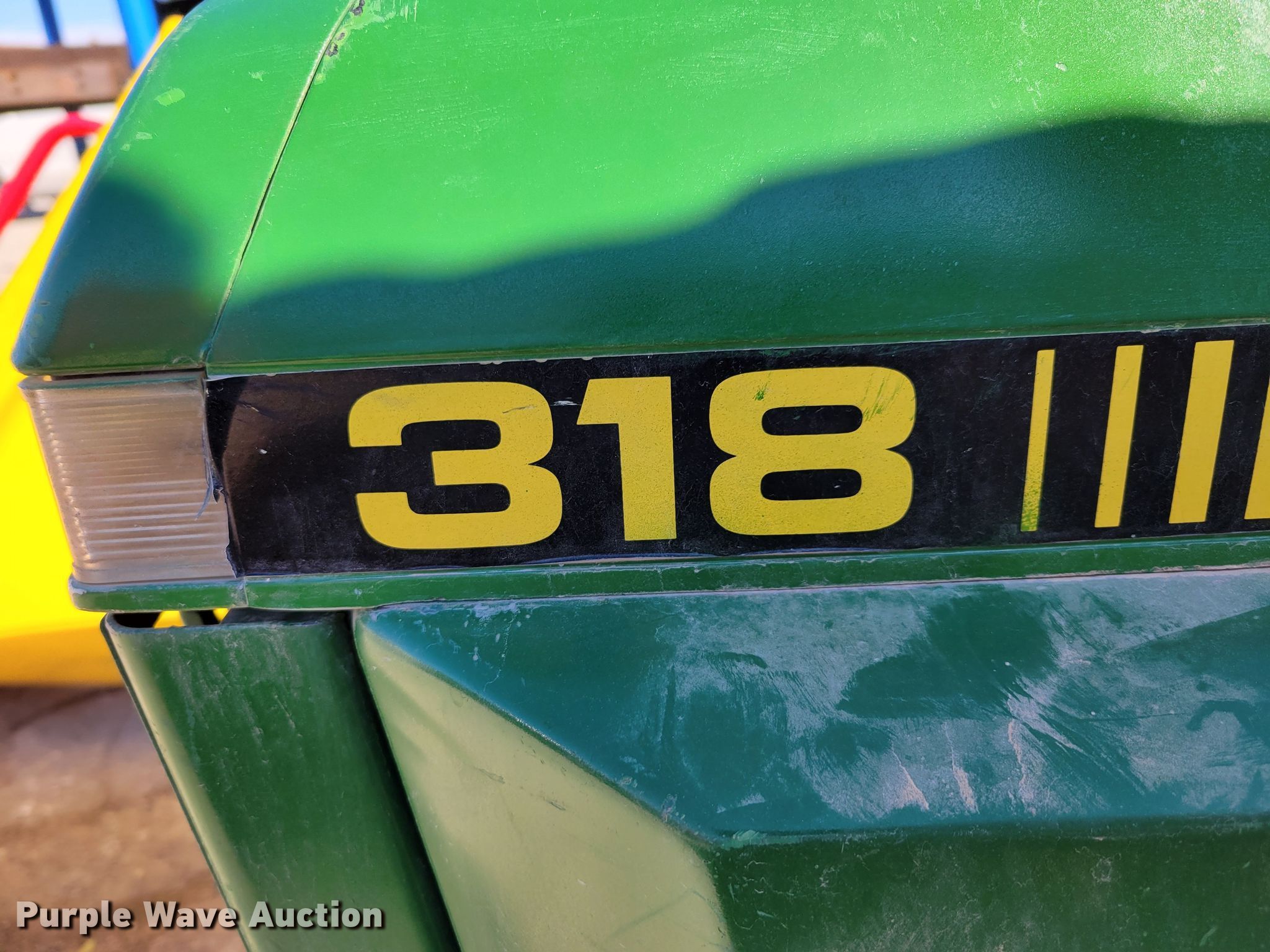 Purple Wave is selling a used Lawn Mower in Iowa. This item is a John Deere 318 lawn mower with the following: Serial: M00318X012849