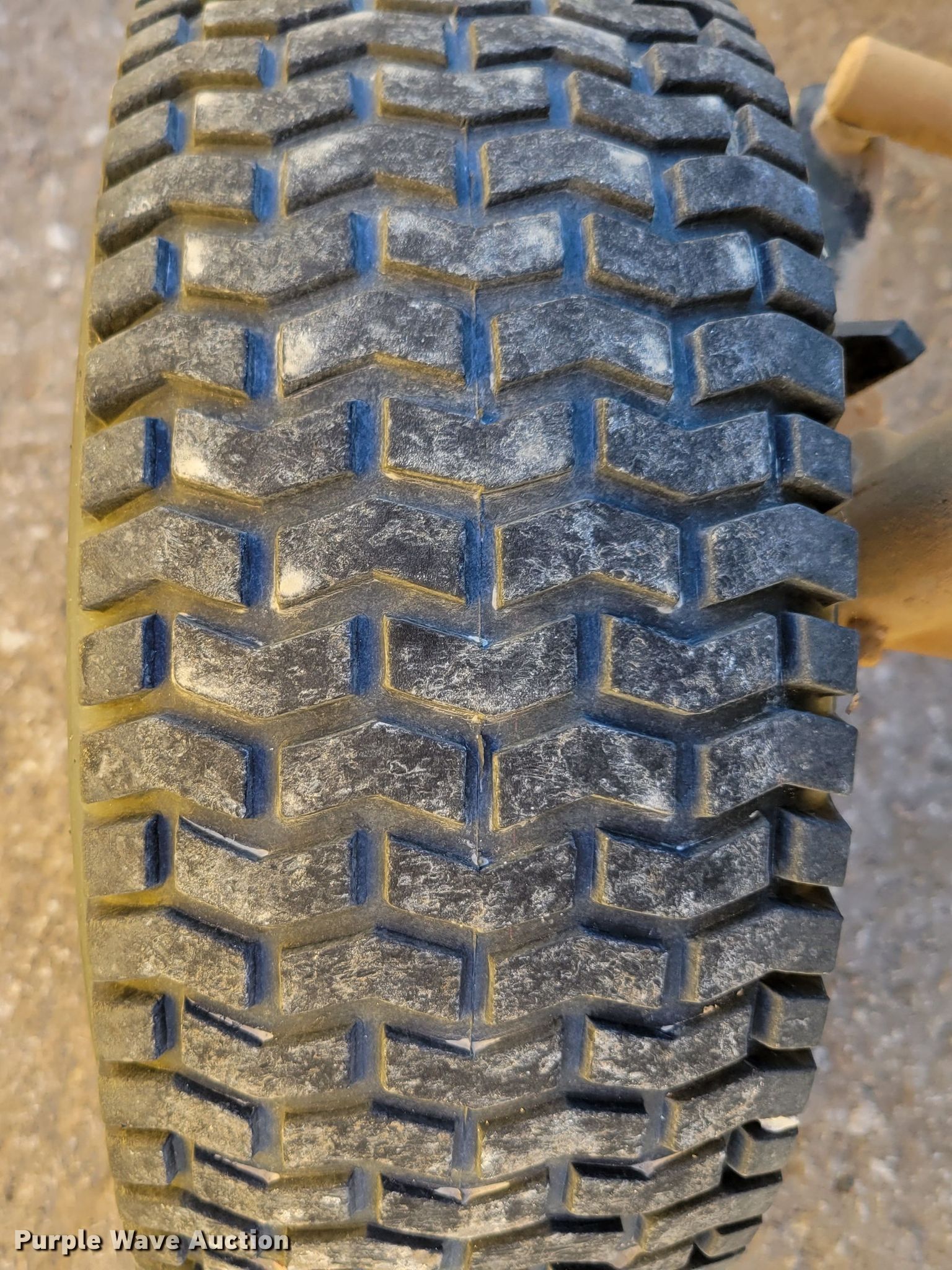 John Deere 318 lawn mower. Serial: M00318X012849. Engine Cylinders: 2, Fuel type: Gas. Transmission Hydrostatic. Tires Front: 16x6.50-8, Rear: 23x10.50-12. Notes No mower deck, Unknown operating condition. Missouri Valley Community School District. 418 N 7th Street. Missouri Valley, IA 51555