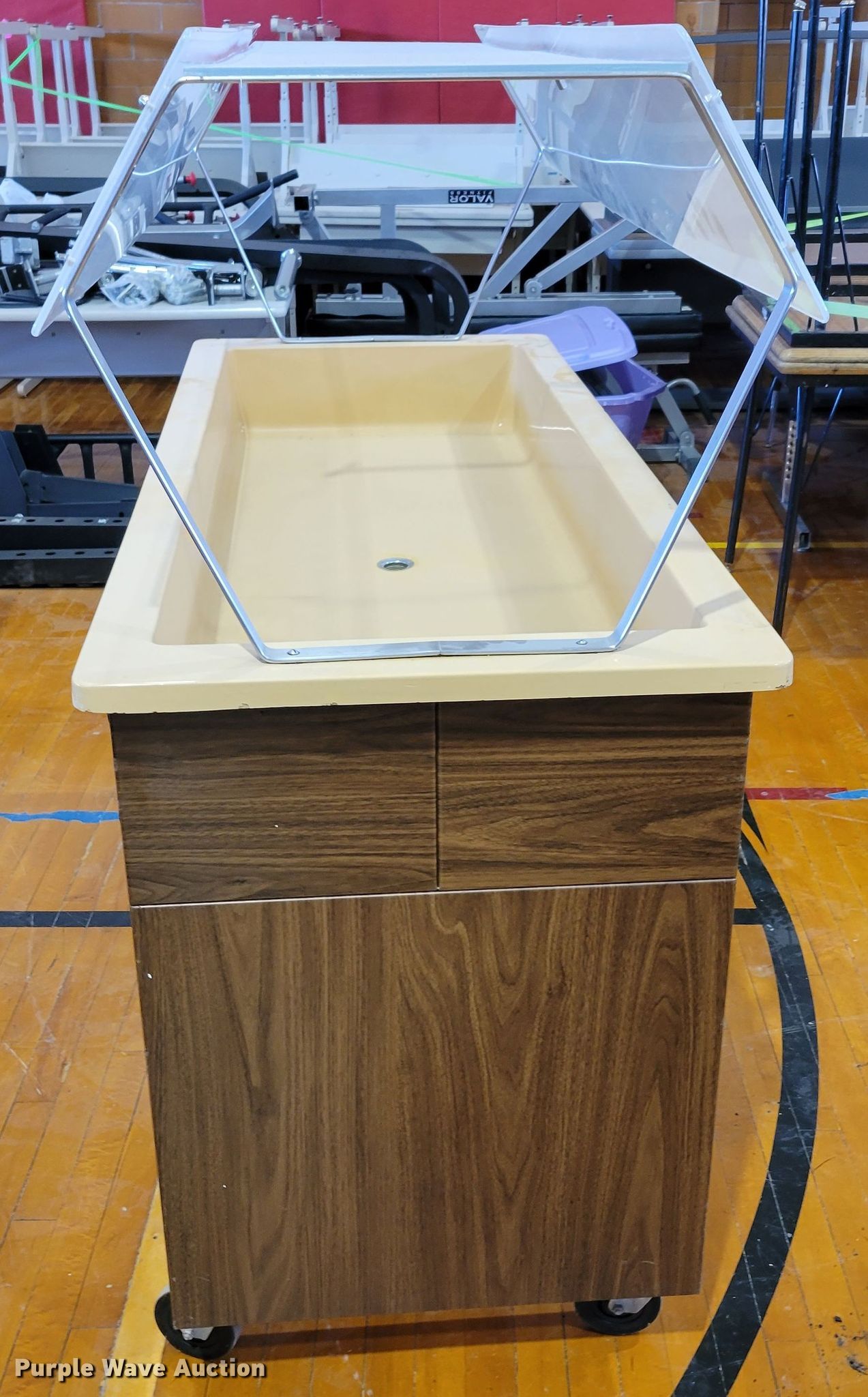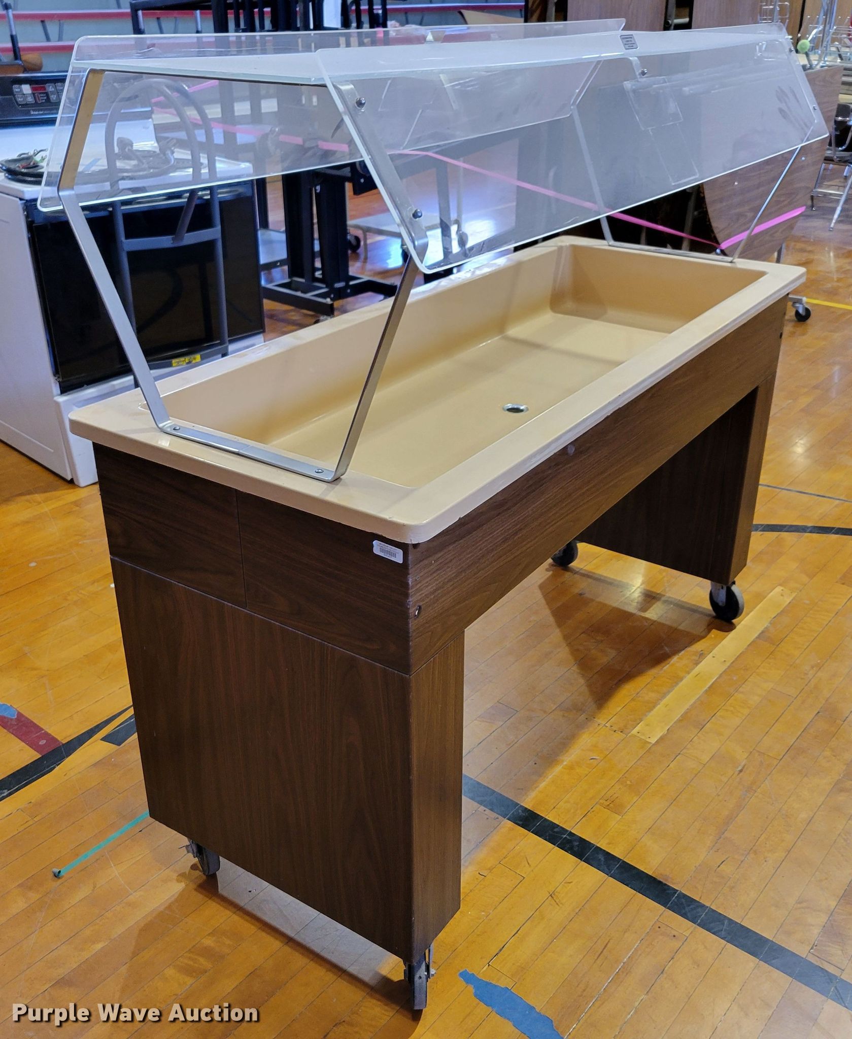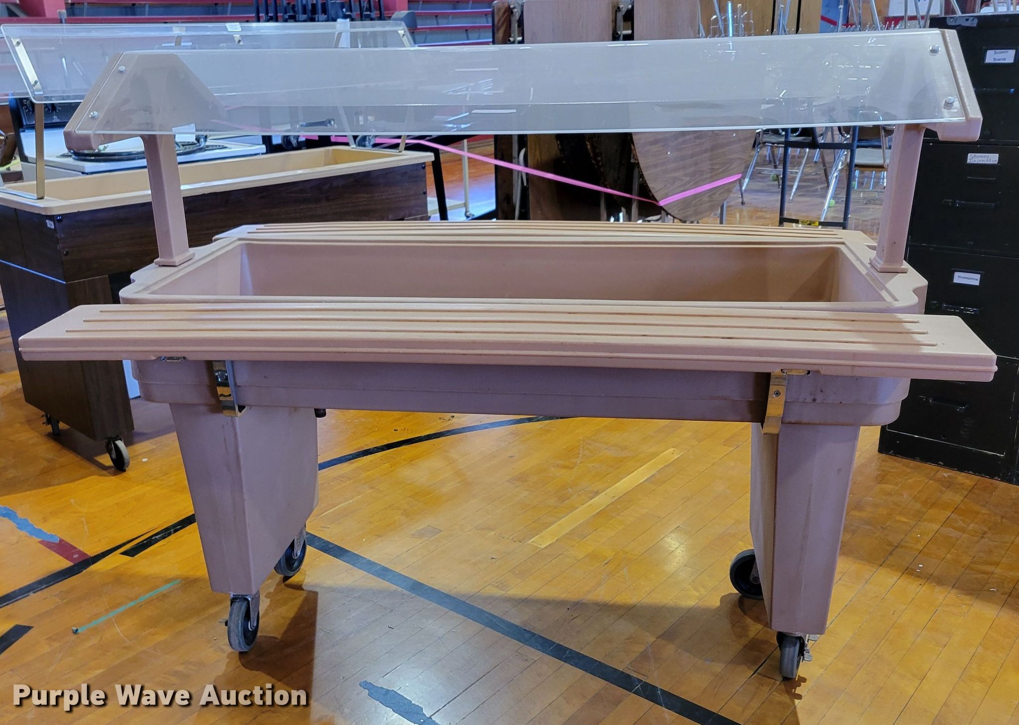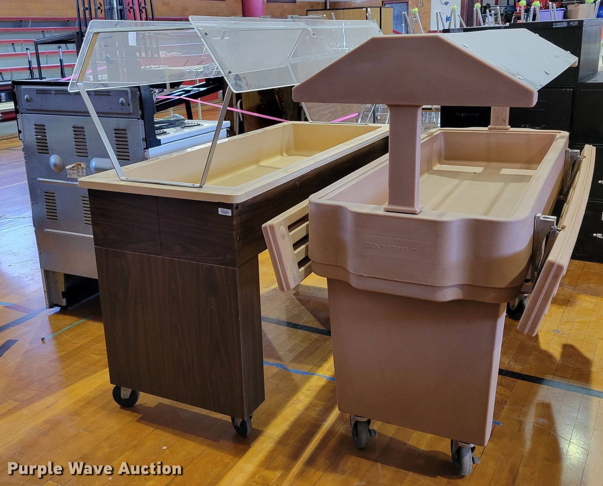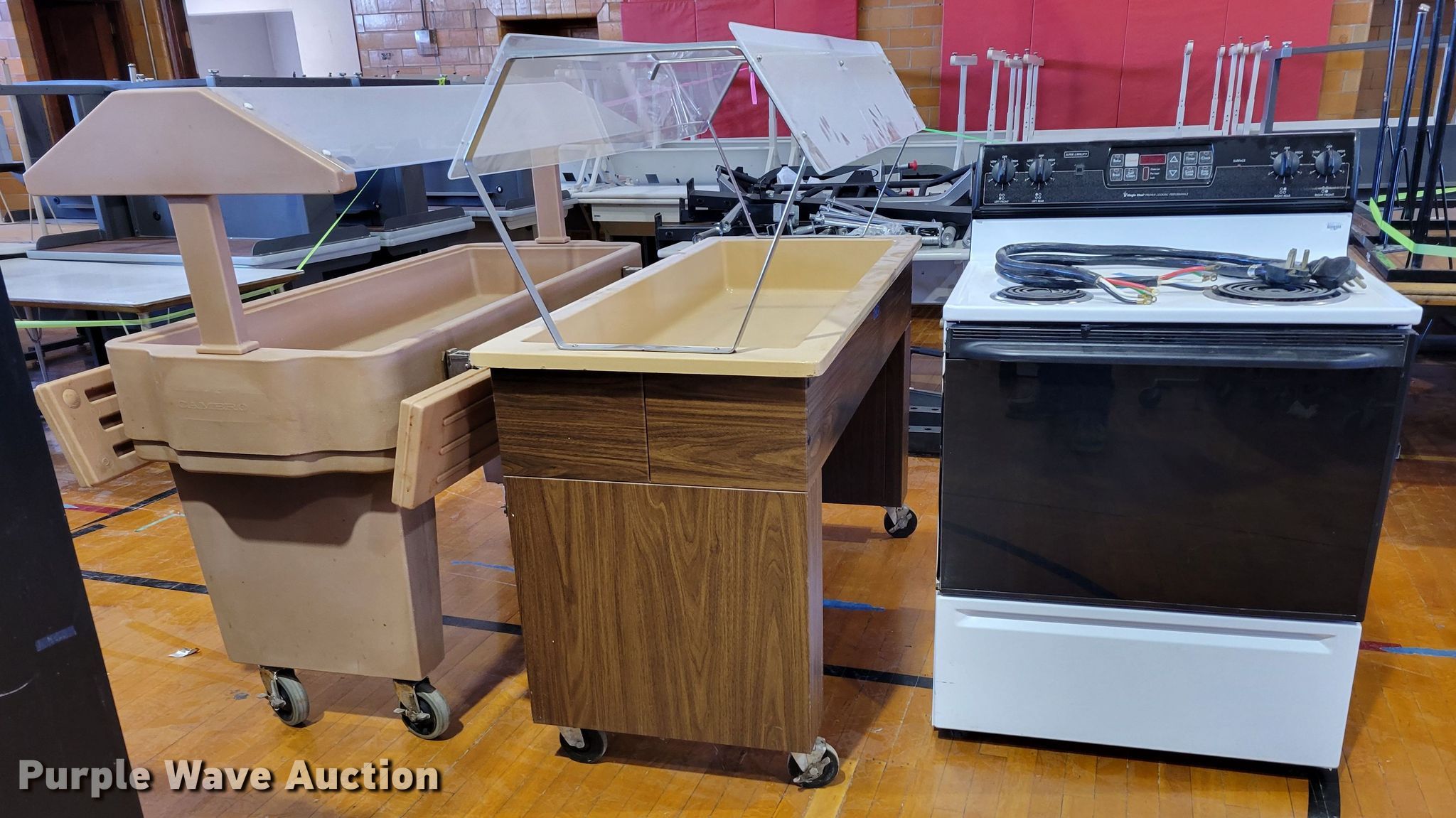 Purple Wave is selling a used Restaurant Equip. in Iowa. This item is a Restaurant equipment with the following: Cambro salad bar, 63"L x 40"W x 52"H, Sneeze guard, Salad bar, 61"L x 25"W x 53"H, Sneeze guard, Magic Chef range, (2) 220V cords