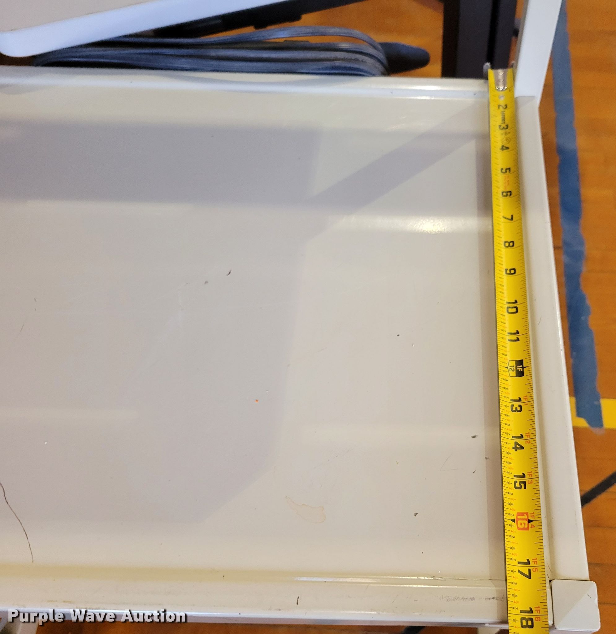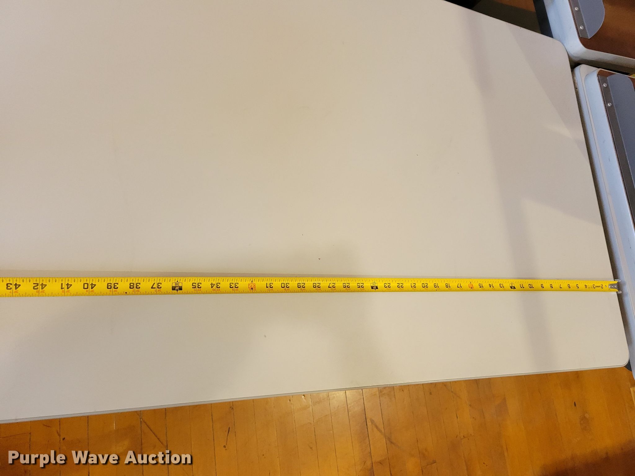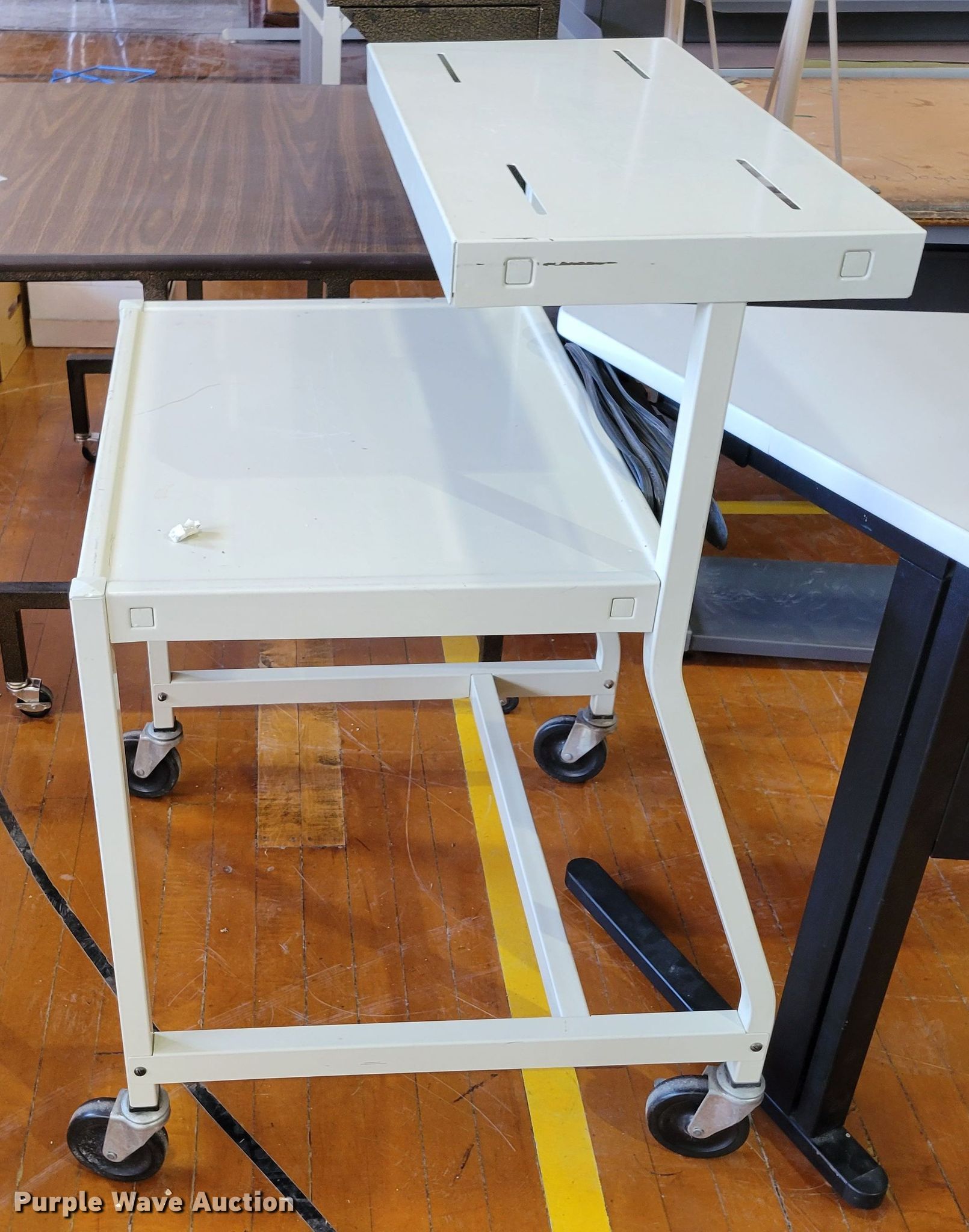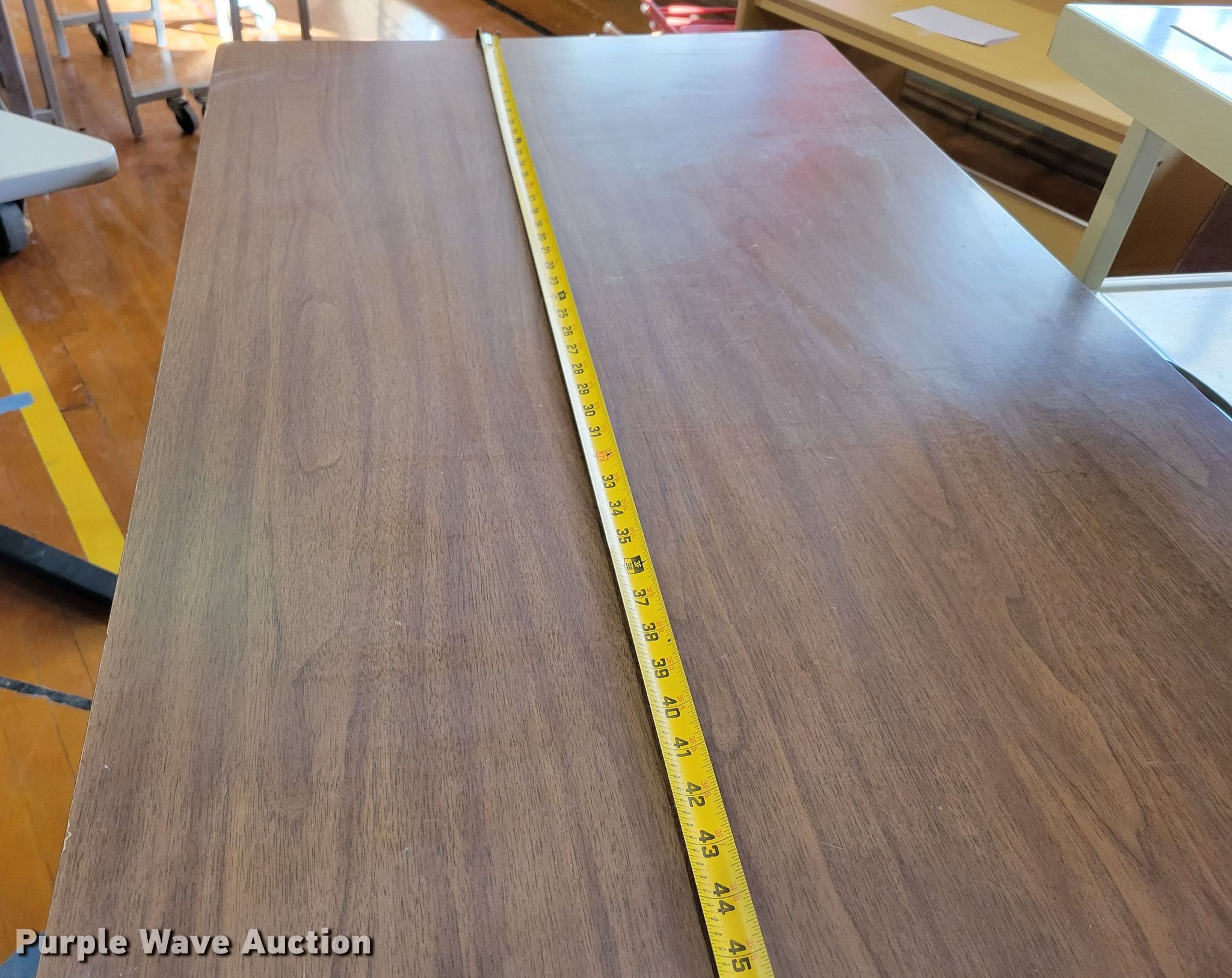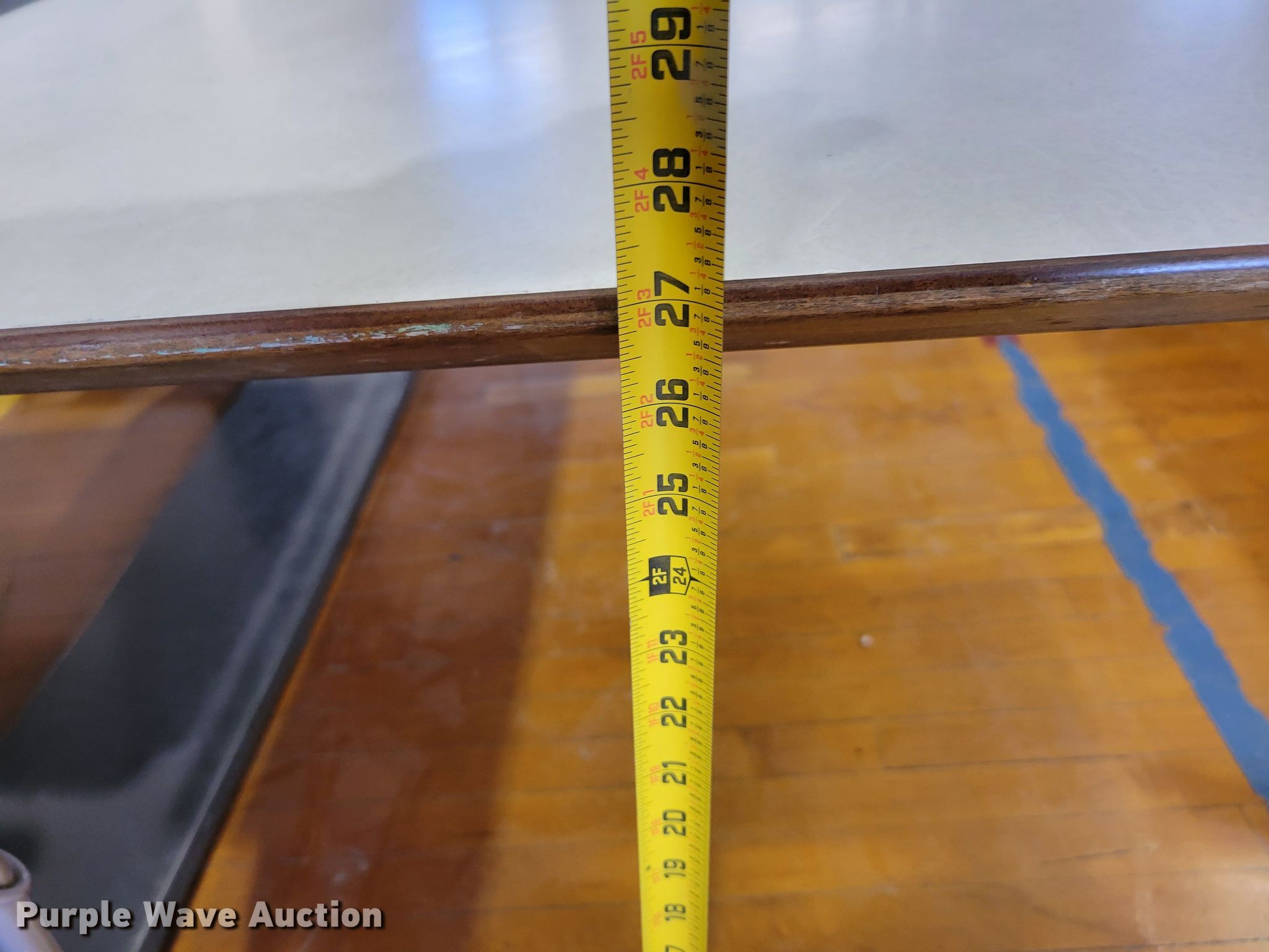 Purple Wave is selling a used Furniture in Iowa. This item is a (14) tables with the following: 57"L x 23"W x 29"H, 48"L x 29.5"W x 30"H, 60"L x 30"W x 27"H, (2) 55"L x 24"W x 36"H, (7) 48"L x 30"W x 27"H, (2) folding tables, 48"L x 30"W x 30"H, (2) carts, 31"L x 36"W x 40"H, 22"L x 24"W x 38"H