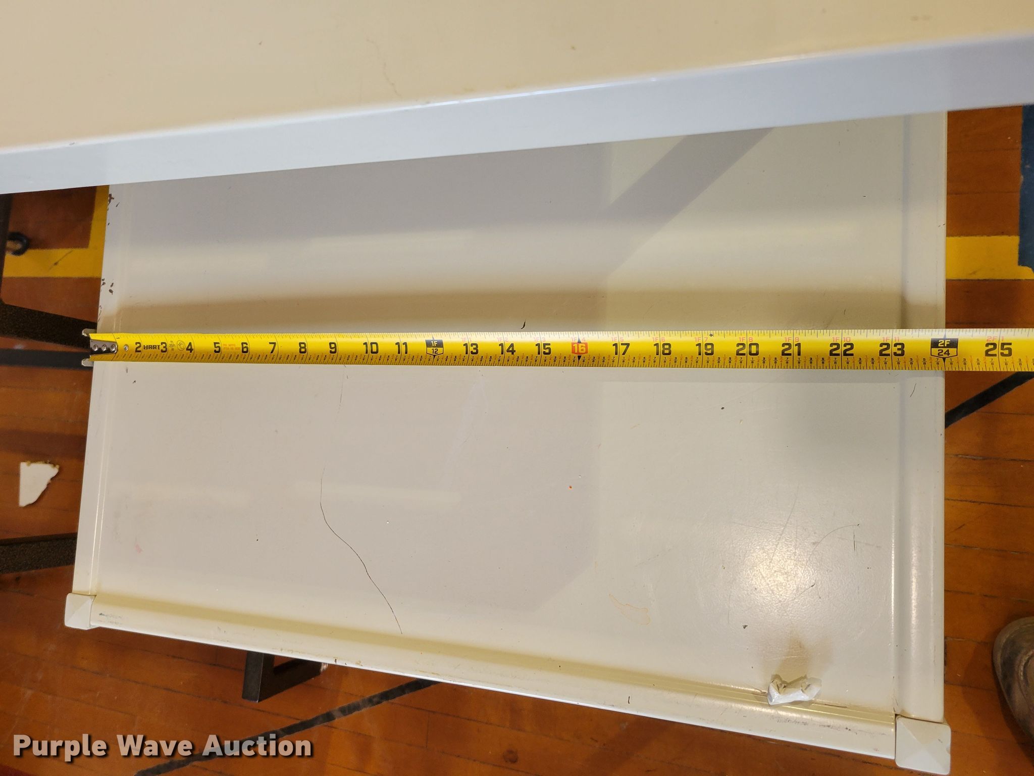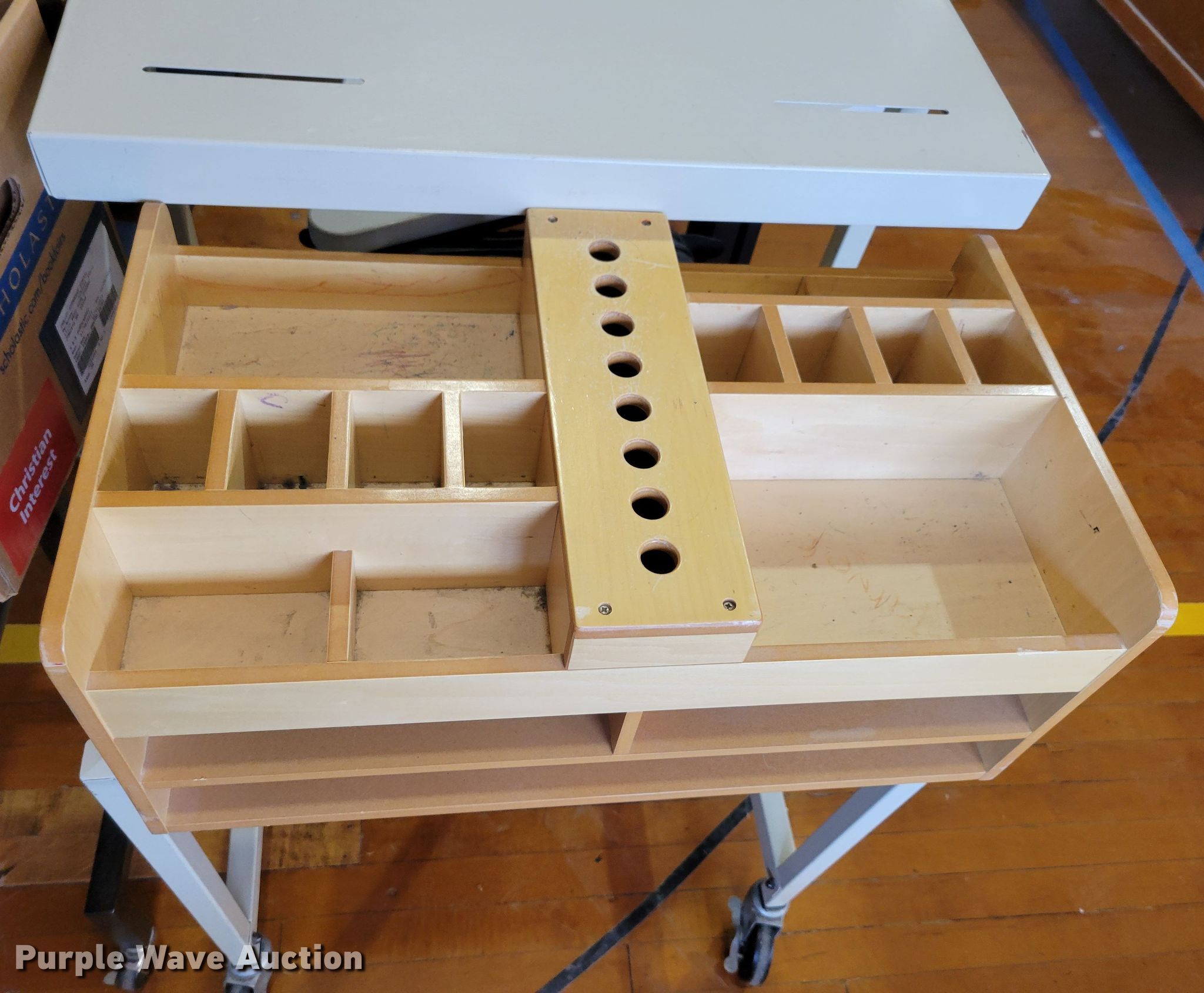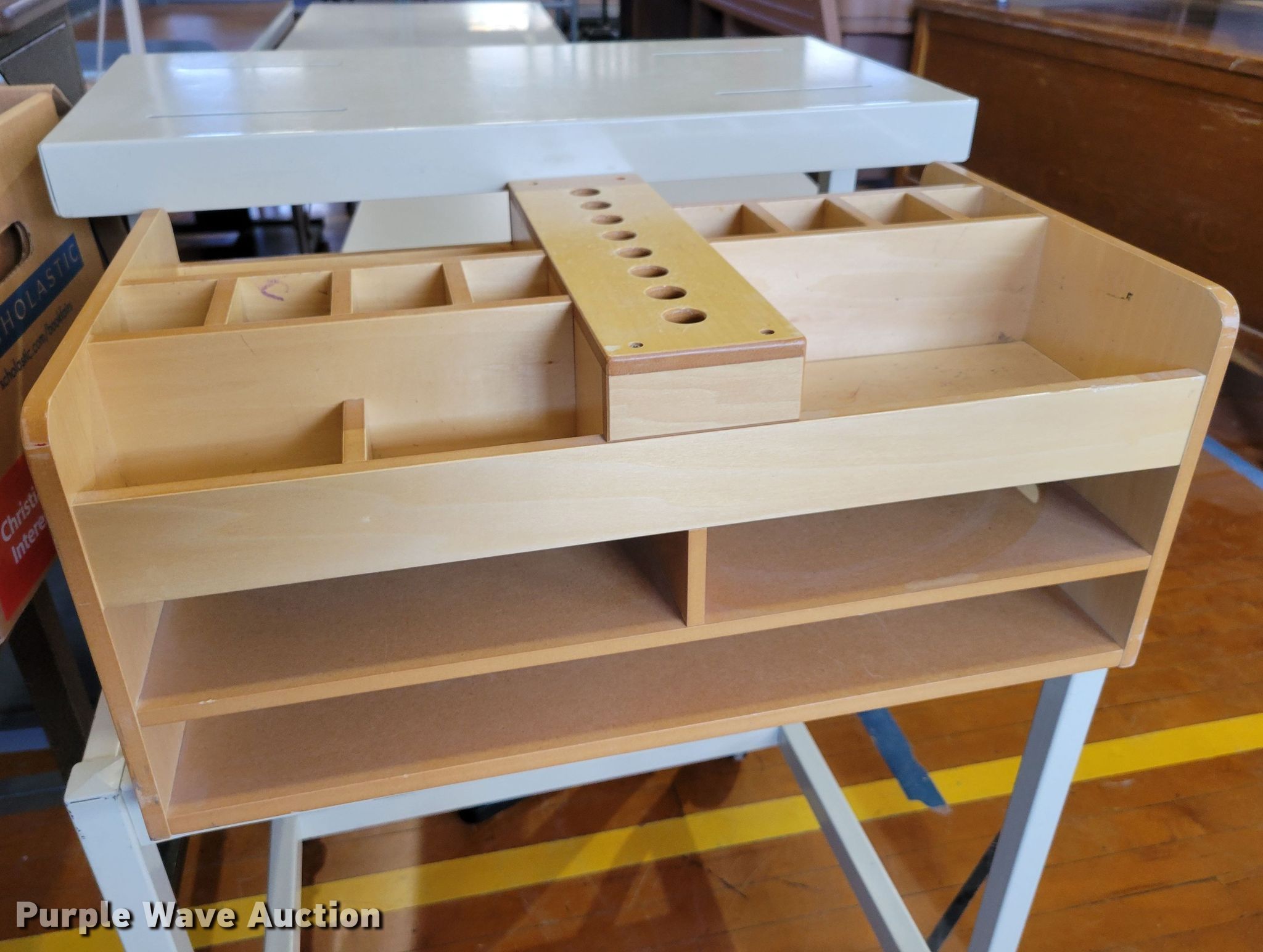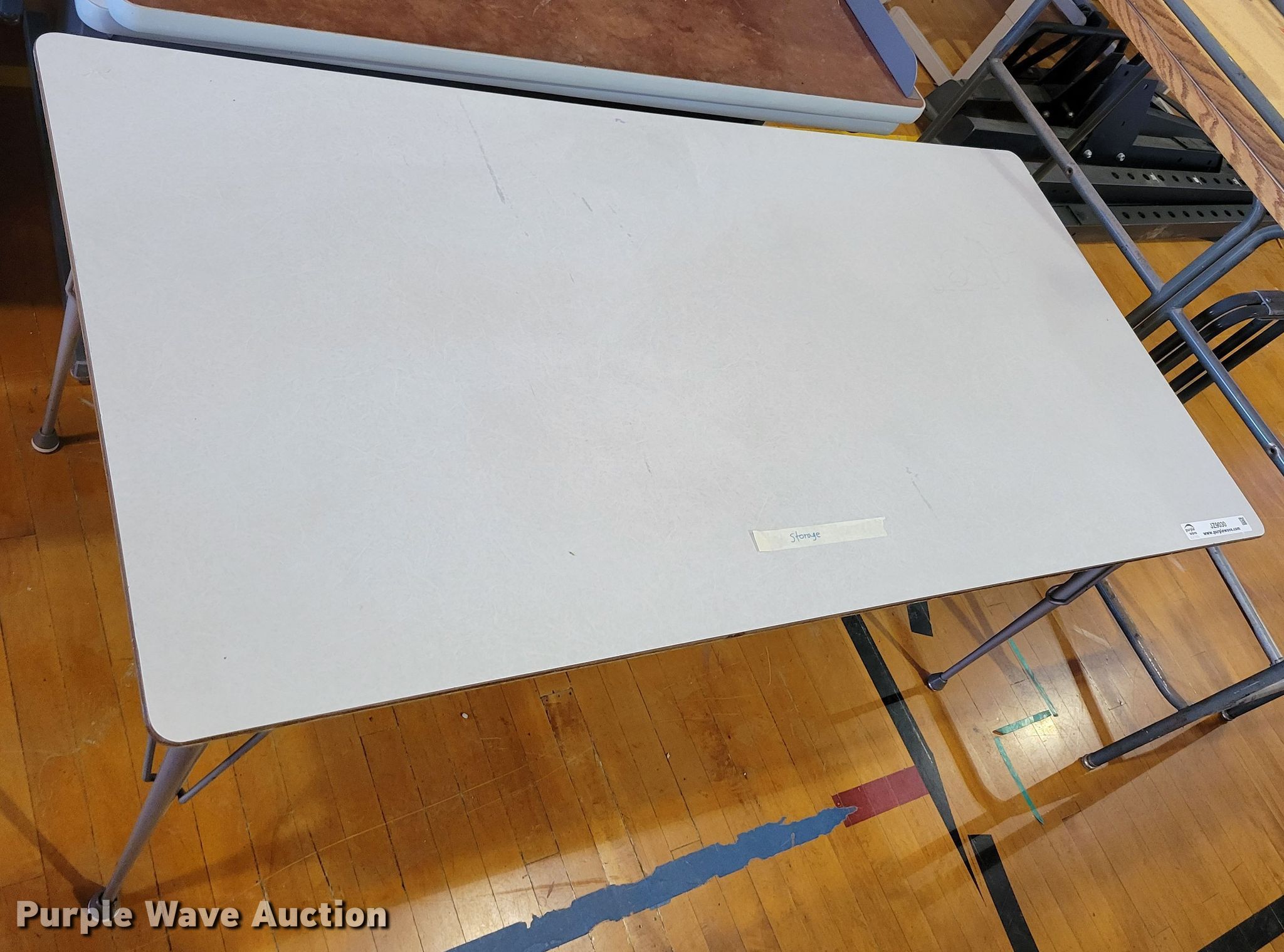 Purple Wave is selling a used Furniture in Iowa. This item is a (14) tables with the following: 57"L x 23"W x 29"H, 48"L x 29.5"W x 30"H, 60"L x 30"W x 27"H, (2) 55"L x 24"W x 36"H, (7) 48"L x 30"W x 27"H, (2) folding tables, 48"L x 30"W x 30"H, (2) carts, 31"L x 36"W x 40"H, 22"L x 24"W x 38"H