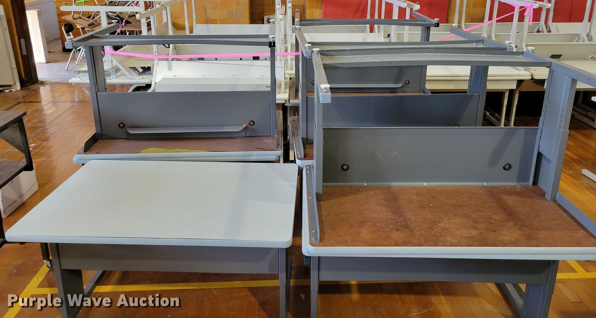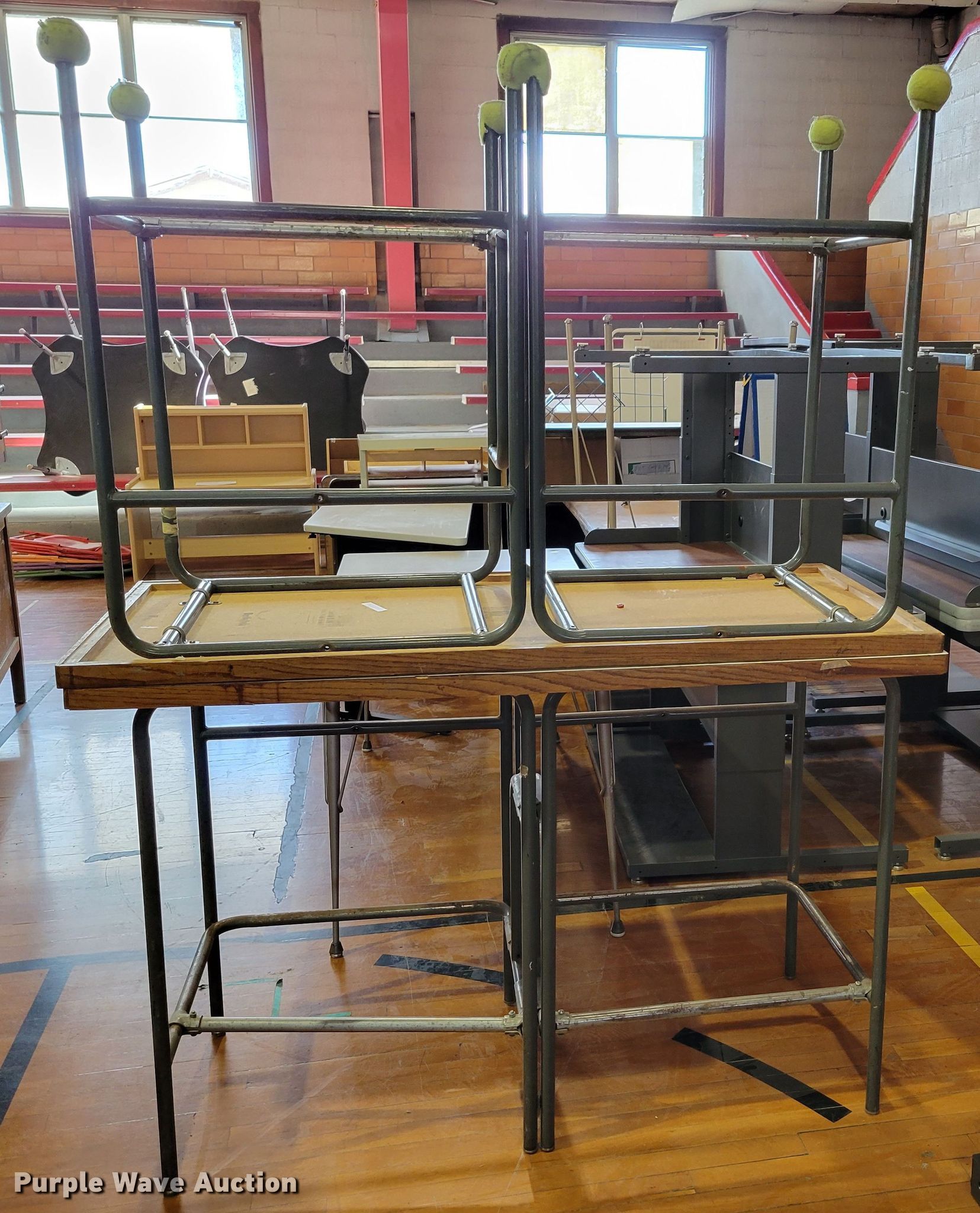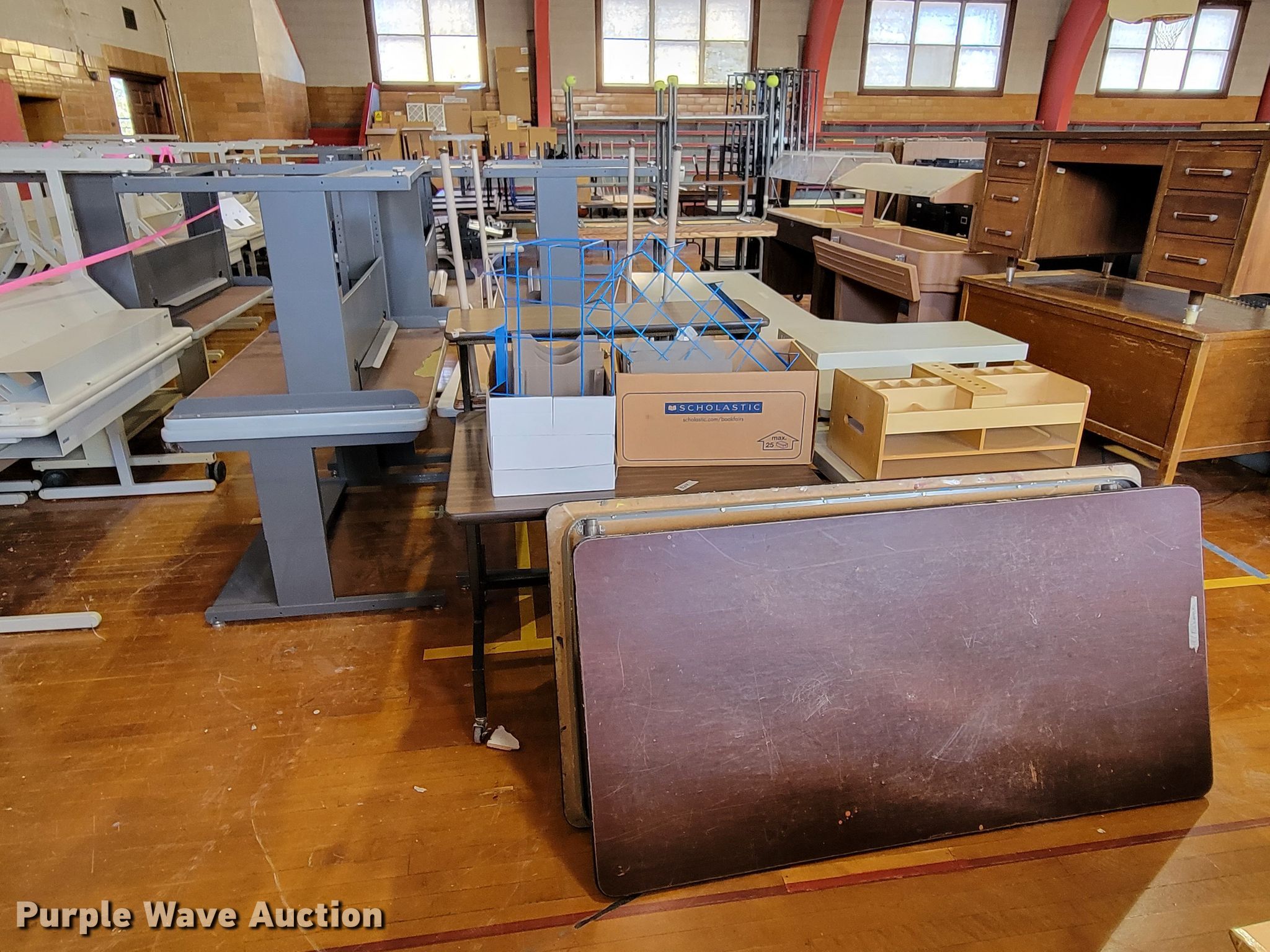 (14) tables. 57"L x 23"W x 29"H, 48"L x 29.5"W x 30"H, 60"L x 30"W x 27"H, (2) 55"L x 24"W x 36"H, (7) 48"L x 30"W x 27"H, (2) folding tables 48"L x 30"W x 30"H, (2) carts 31"L x 36"W x 40"H, 22"L x 24"W x 38"H. Missouri Valley Community School District. 418 N 7th Street. Missouri Valley, IA 51555