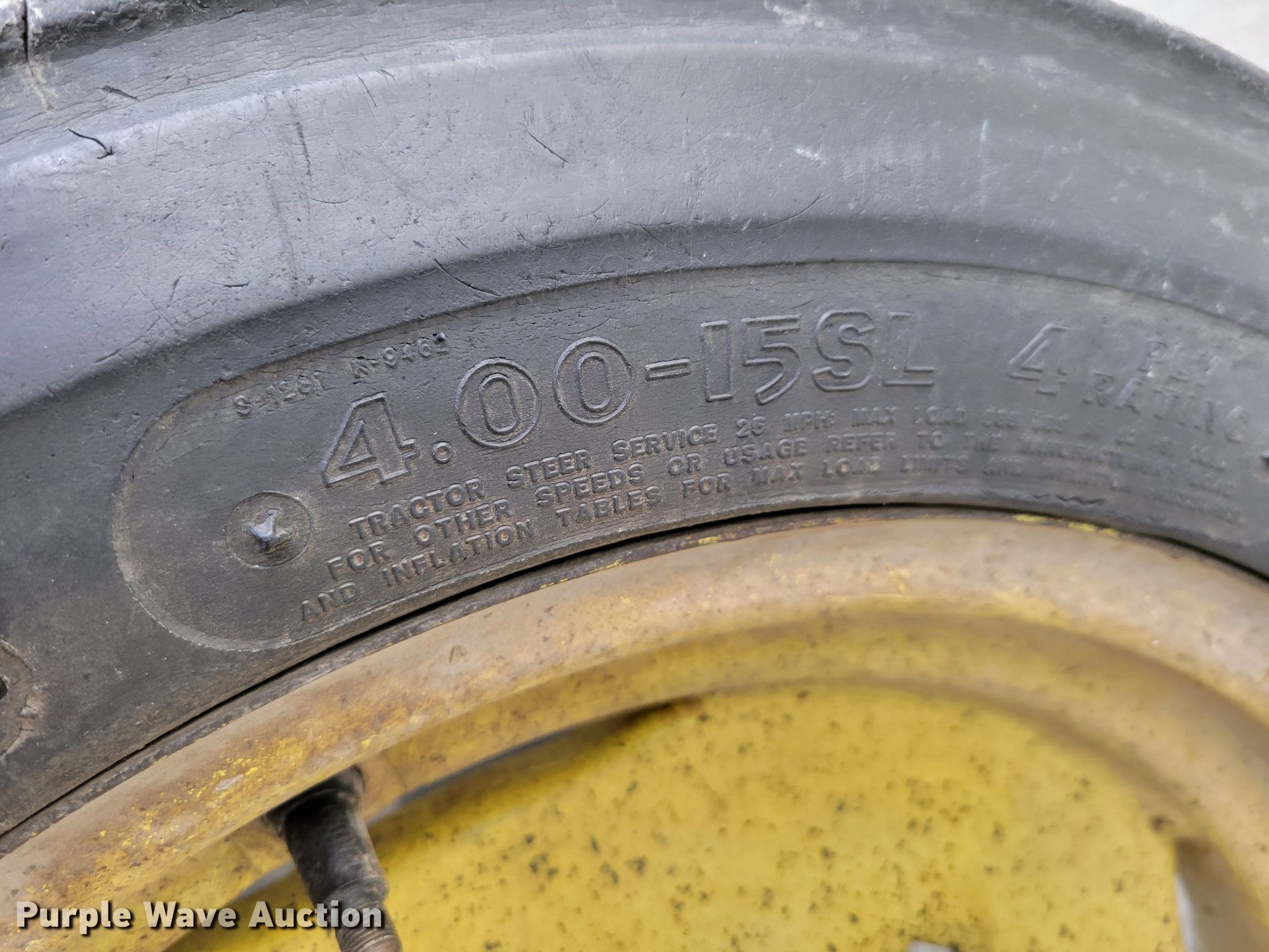 1986 John Deere 855 tractor. Hours: 2,285 on meter, Serial: M00855A360221. Engine John Deere 3TN75RJ, Serial: CH3033D009830, Cylinders: 3, Fuel type: Diesel. Transmission Hydrostatic, Differential lock. Features PTO: 540, Three point. Tires Front: 4.00-15SL, Rear: 9.5-16, Wheelbase: 65". Notes Dead battery, Ignition switch issues, no keys. City of Wymore. 302 S 6th Street. Wymore, NE 68466