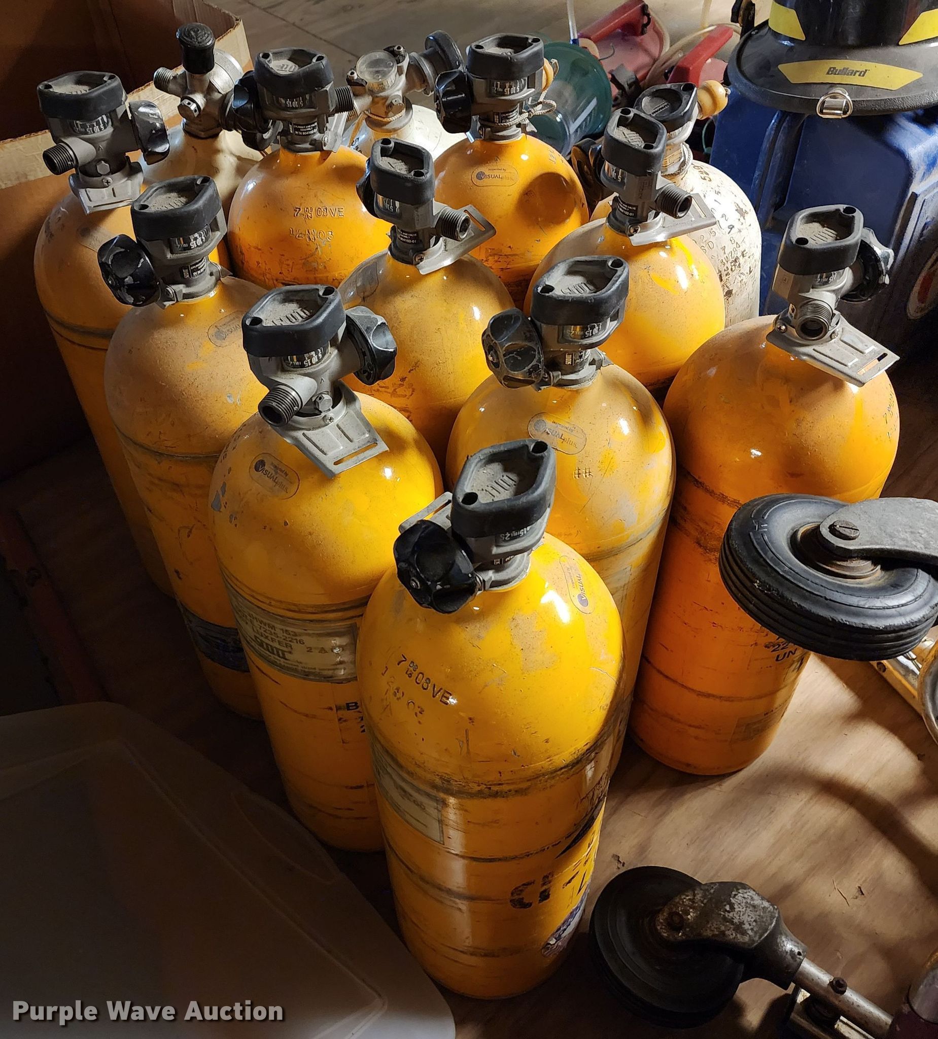 Purple Wave is selling a used Tools in Missouri. This item is a Fire fighting equipment with the following: (5) stair chairs, (15) Survivar air tanks, (3) cases, (2) packs, (4) Cairns 1044 helmets, (7) Bullard LTD Series helmets, Boots, Fire fighting gear, (2) Stryker Power Pro XT ambulance cots