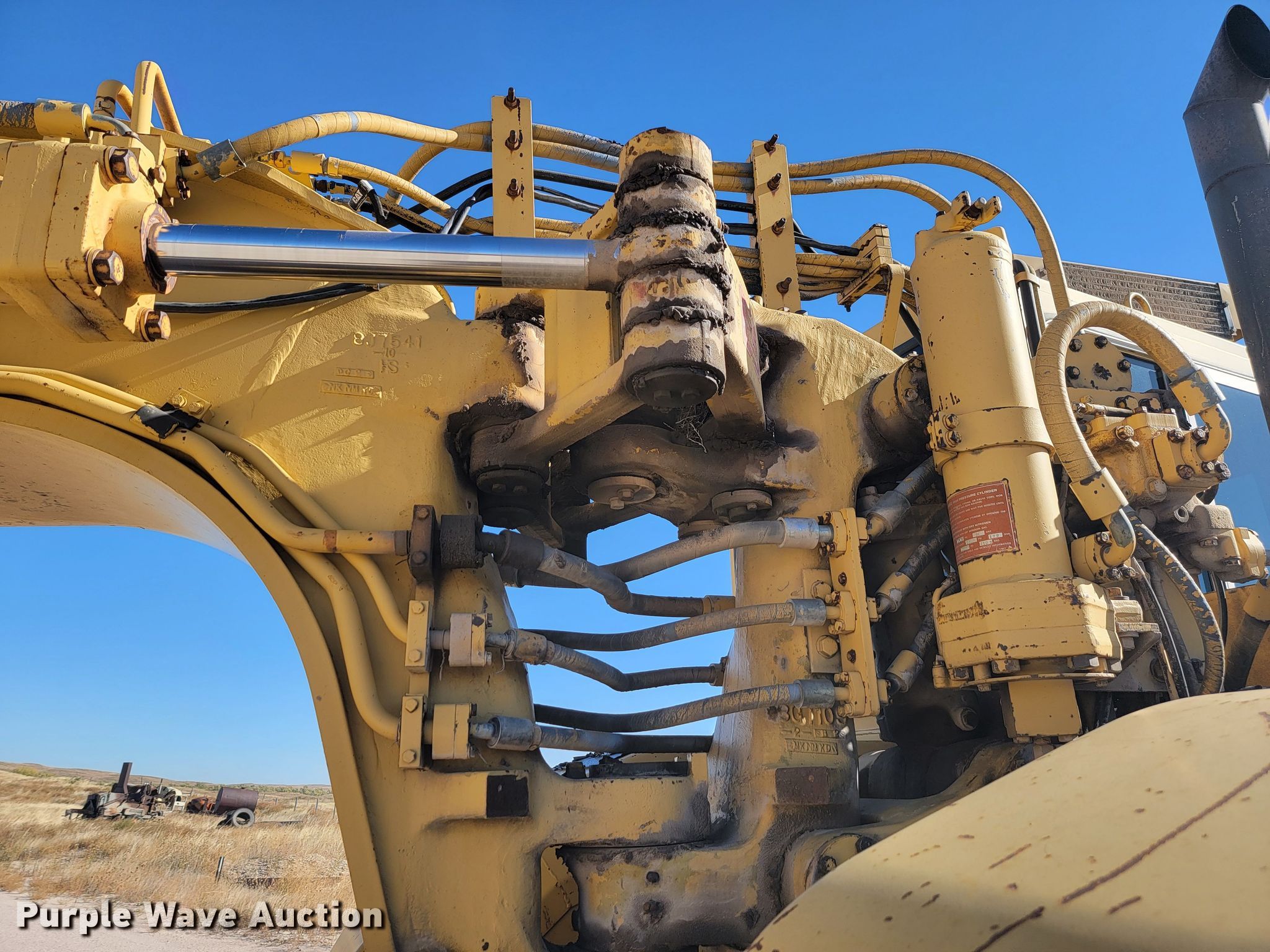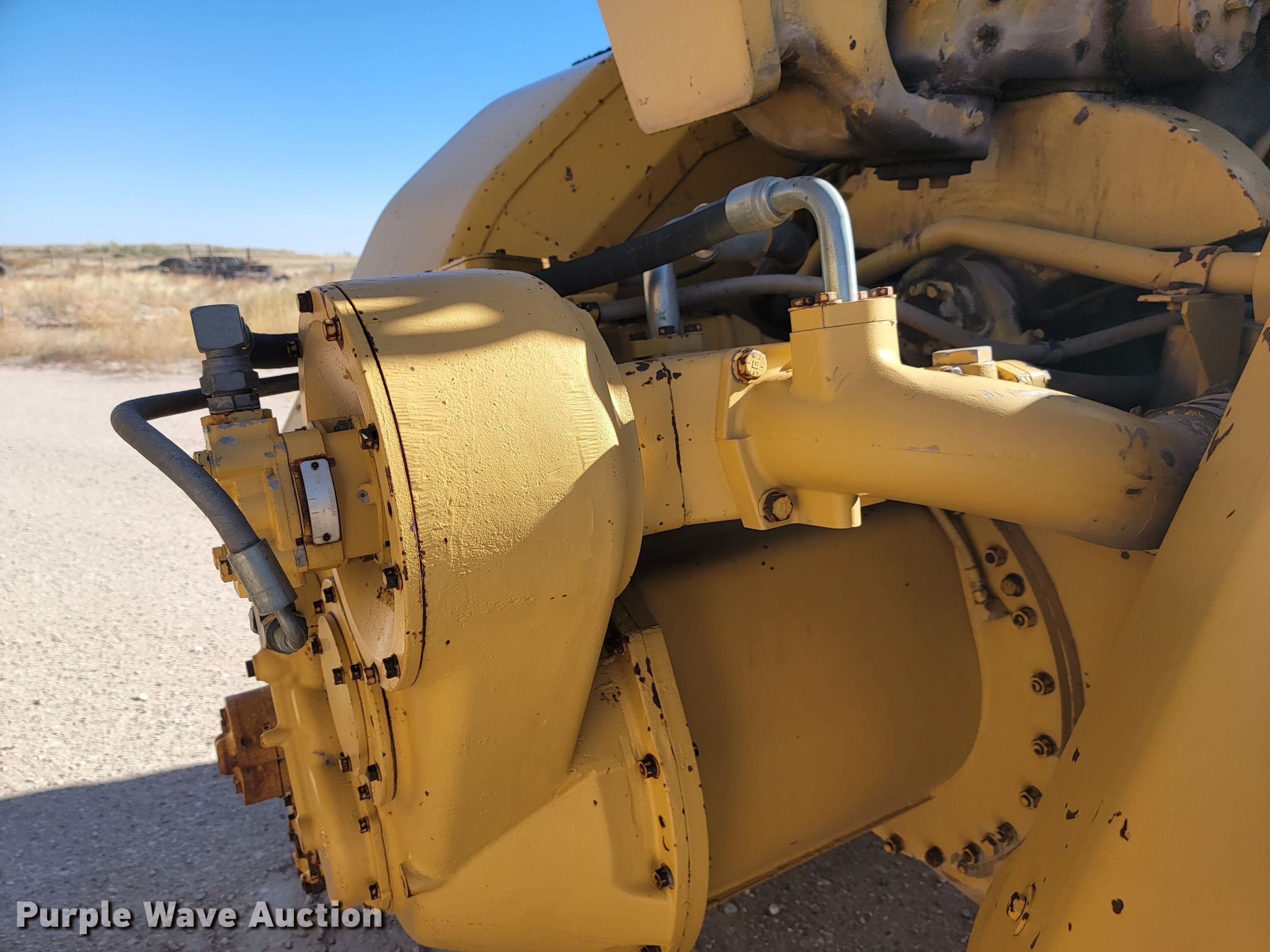 1979 Caterpillar 627B conventional scraper. Hours: 2,735 on meter, Serial: 15S1268. Engine Caterpillar, Cylinders: 6, Fuel type: Diesel. Second engine Caterpillar, Cylinders: 6, Fuel type: Diesel. Transmission Powershift, 8F - 1R. Chassis Brakes: Air. Operators station Enclosed cab, AC, Heat. Operational Reversible cutting edge, Hydraulic lift, Scraper controls: Lever controls No. of controls: 3. Tires Size: 33.25-29. Cherry County Roads Dept. Merriman, NE 69218