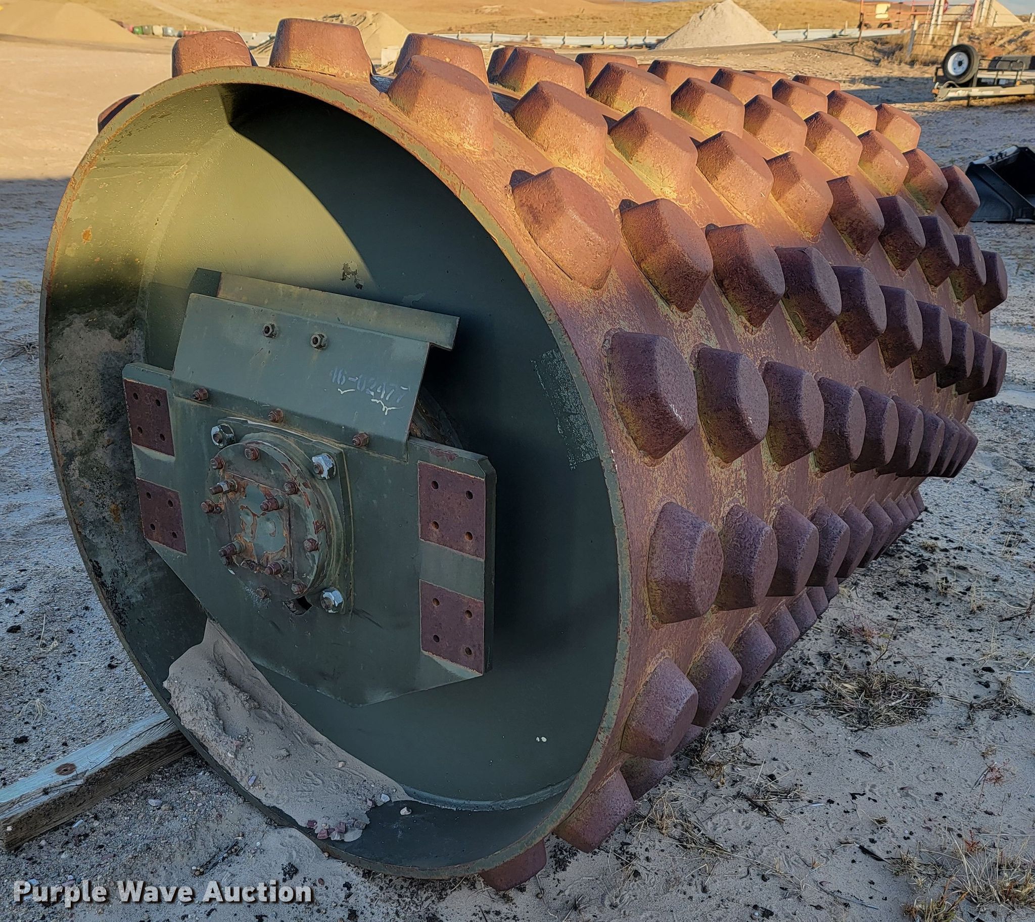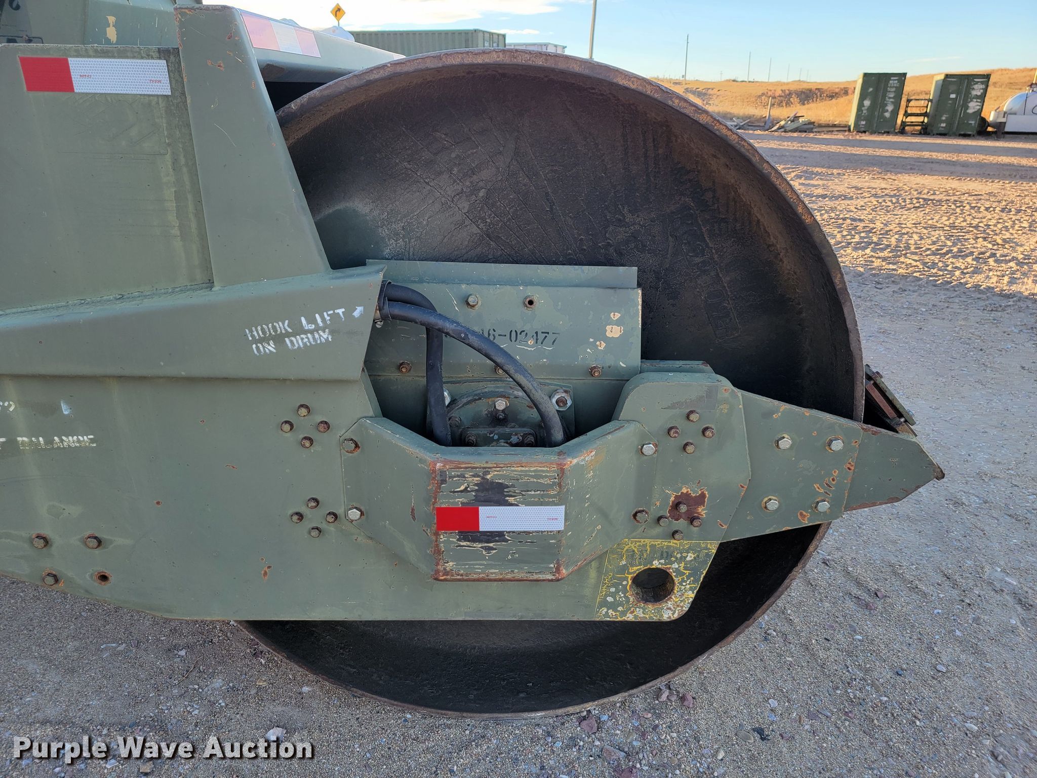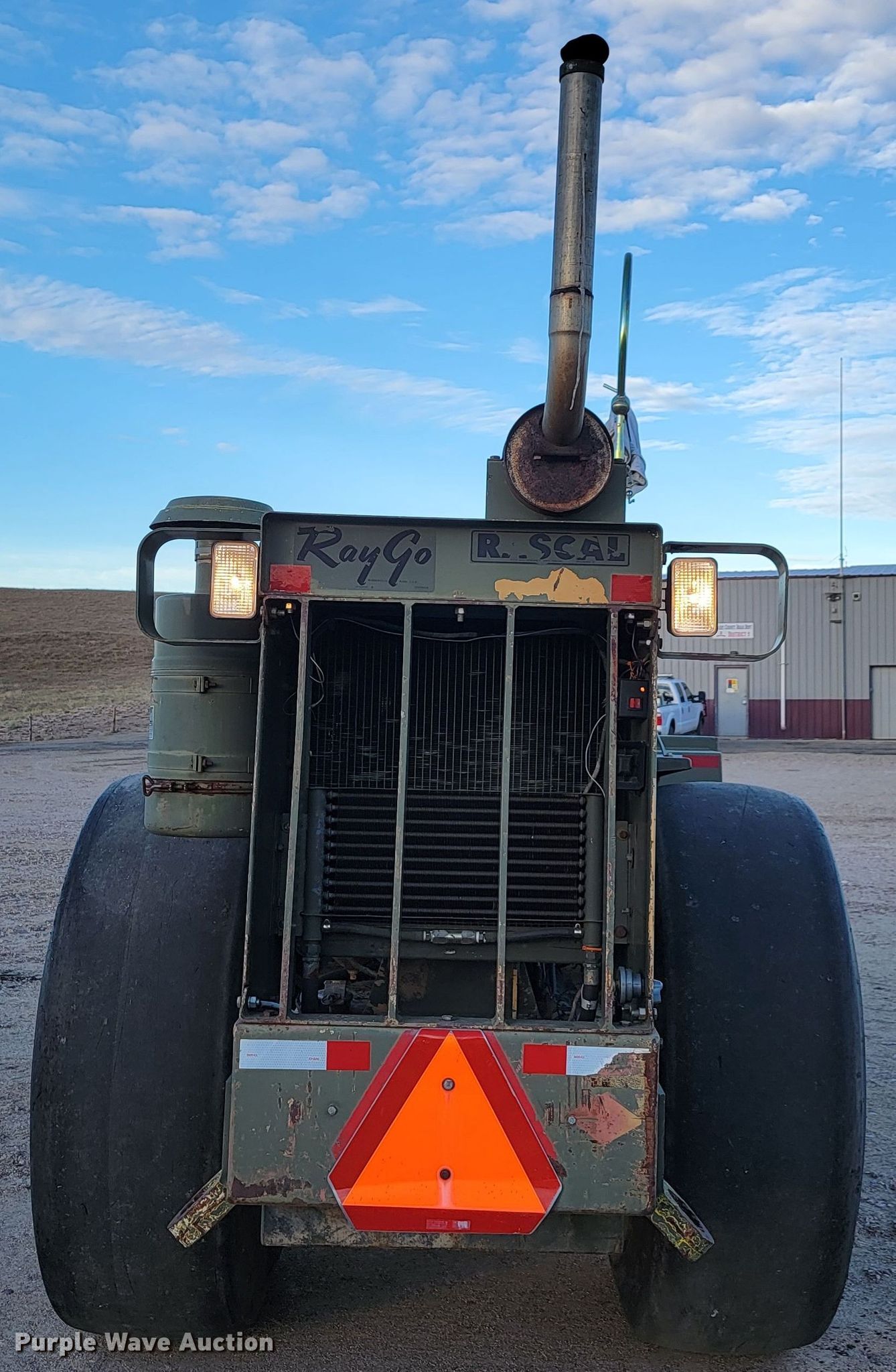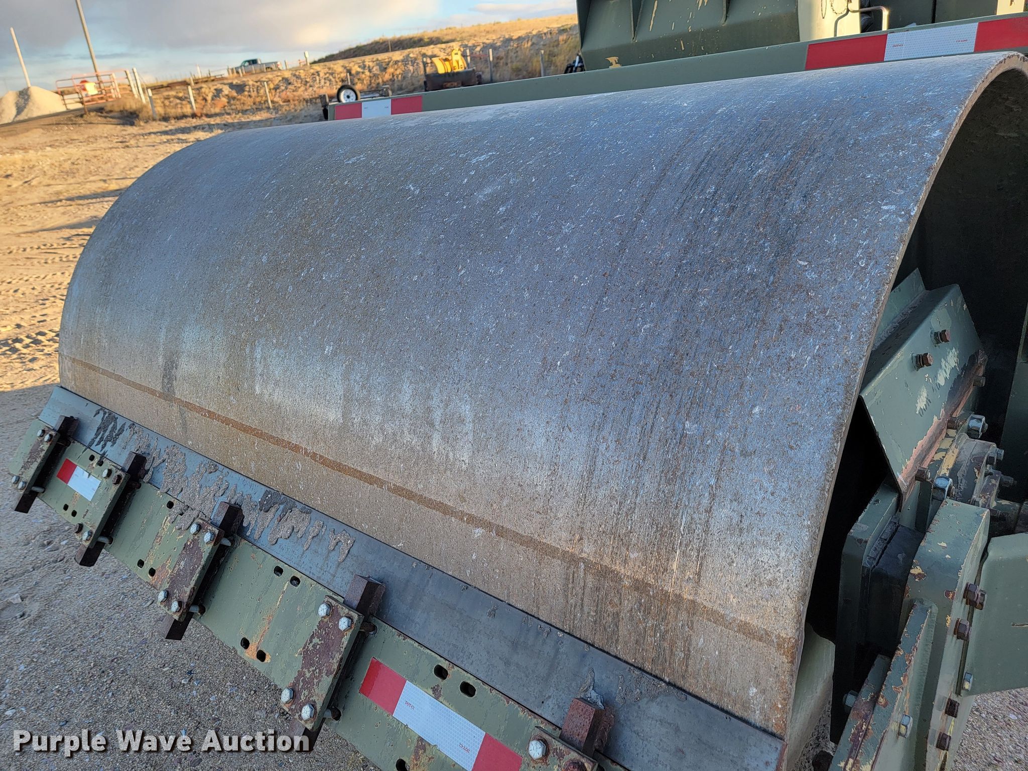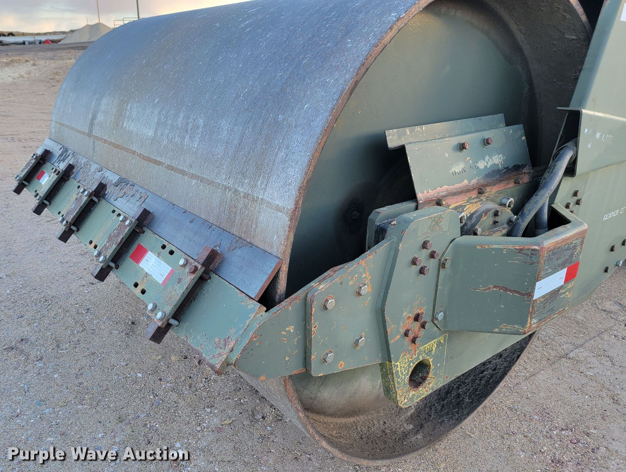 Raygo Rascal single drum roller. Hours: 18 on meter, Serial: 18B0178. Engine Detroit Diesel, Cylinders: 4, Fuel type: Diesel. Transmission Hydrostatic. Features Drum: Smooth, Vibratory system: Single, Front drum Width: 80", Diameter: 59", Drum scrapers: Front. Tires Size: 20.5-25. Notes Additional padfoot drum. Cherry County Road Department. Mullen, NE 69152