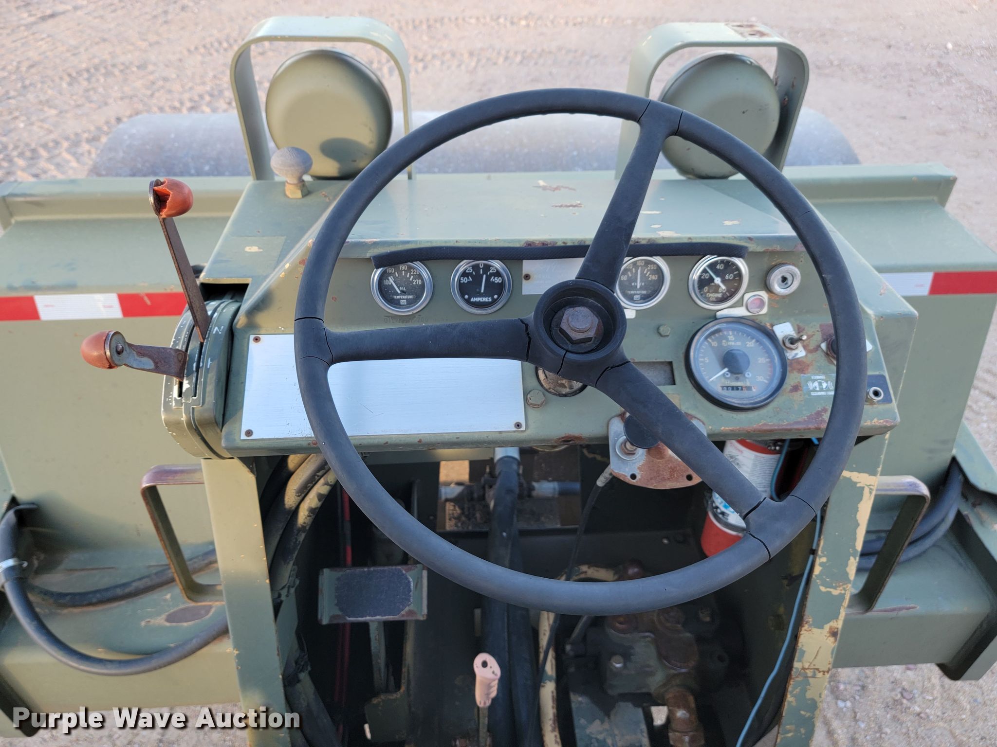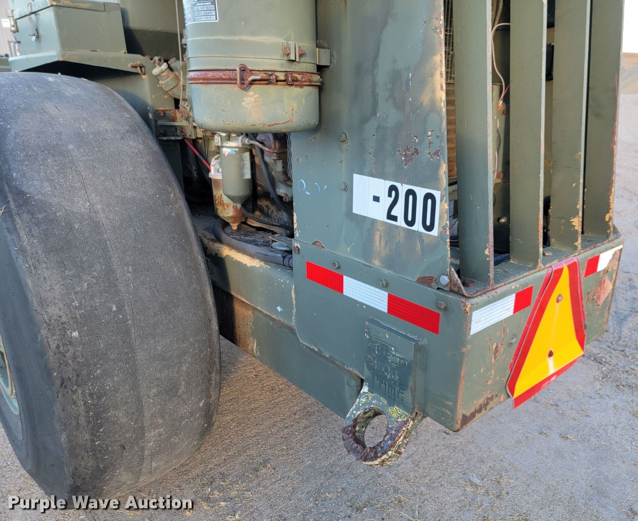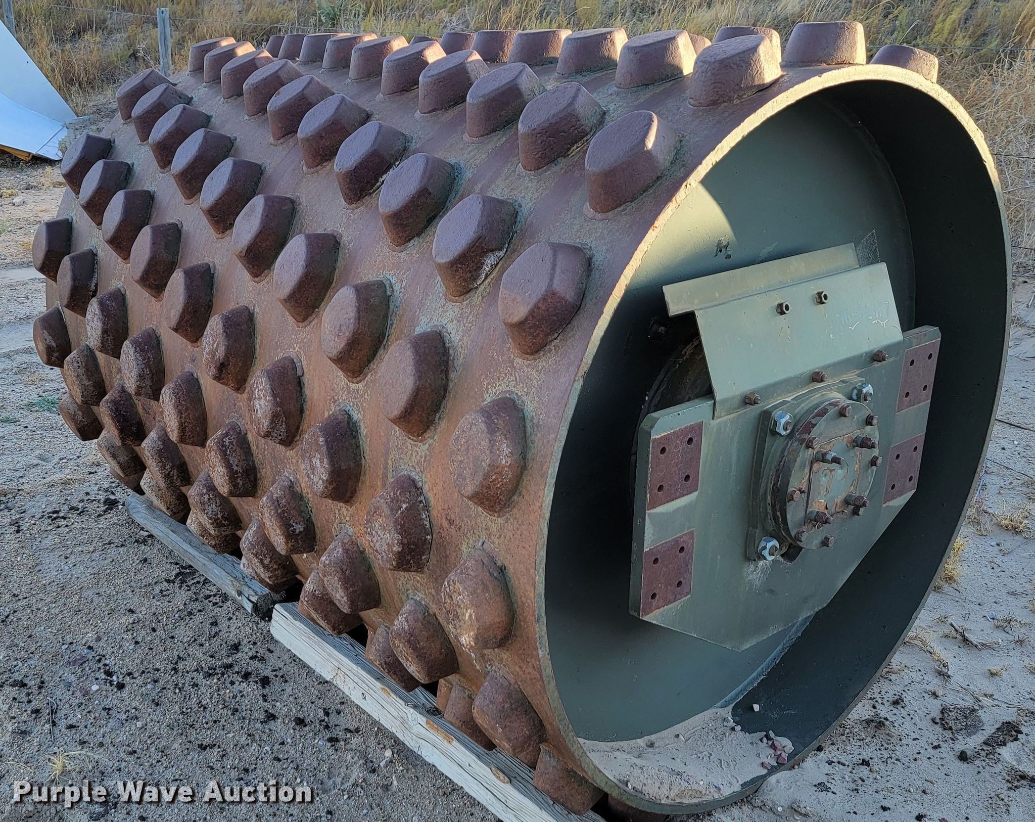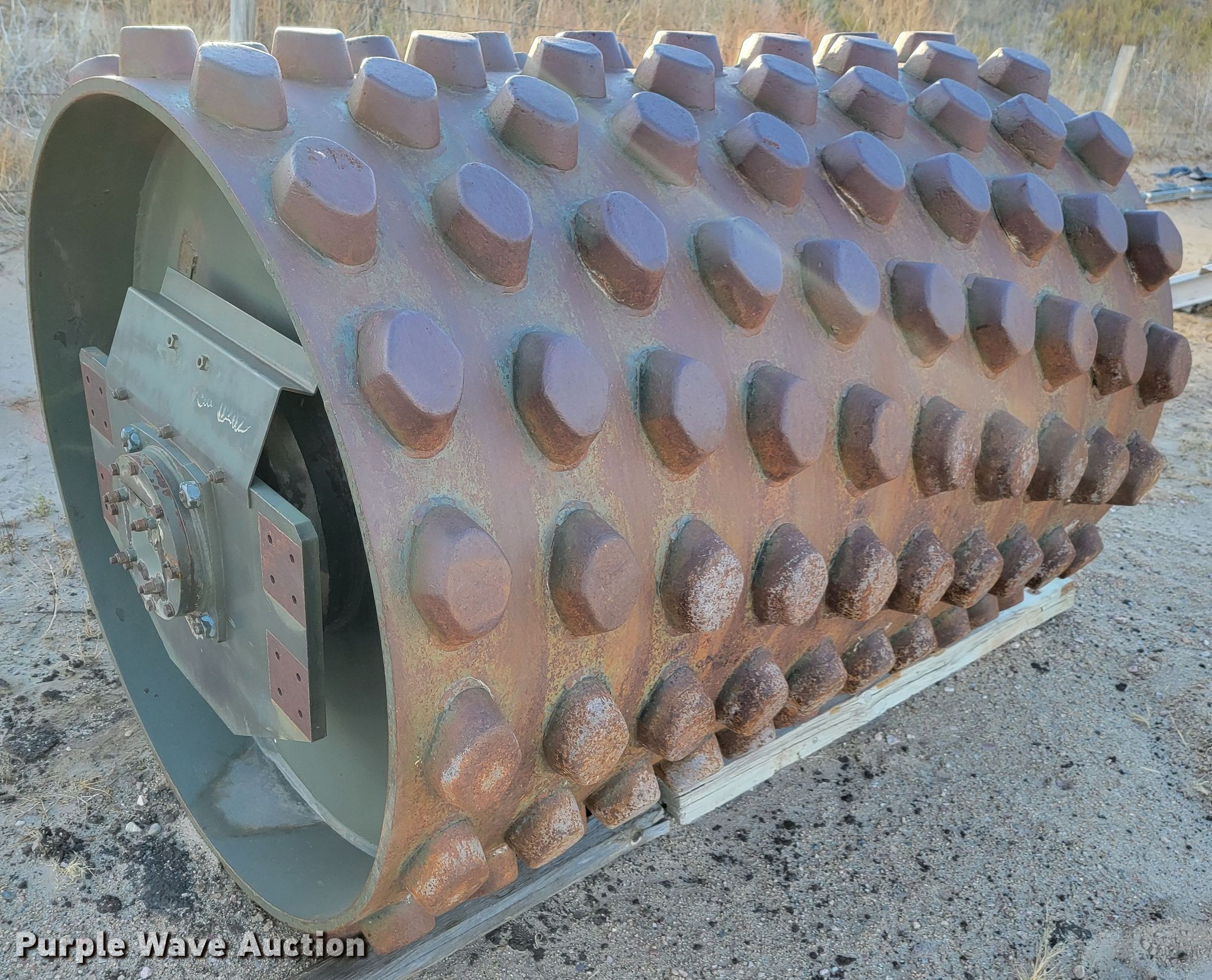Raygo Rascal single drum roller. Hours: 18 on meter, Serial: 18B0178. Engine Detroit Diesel, Cylinders: 4, Fuel type: Diesel. Transmission Hydrostatic. Features Drum: Smooth, Vibratory system: Single, Front drum Width: 80", Diameter: 59", Drum scrapers: Front. Tires Size: 20.5-25. Notes Additional padfoot drum. Cherry County Road Department. Mullen, NE 69152