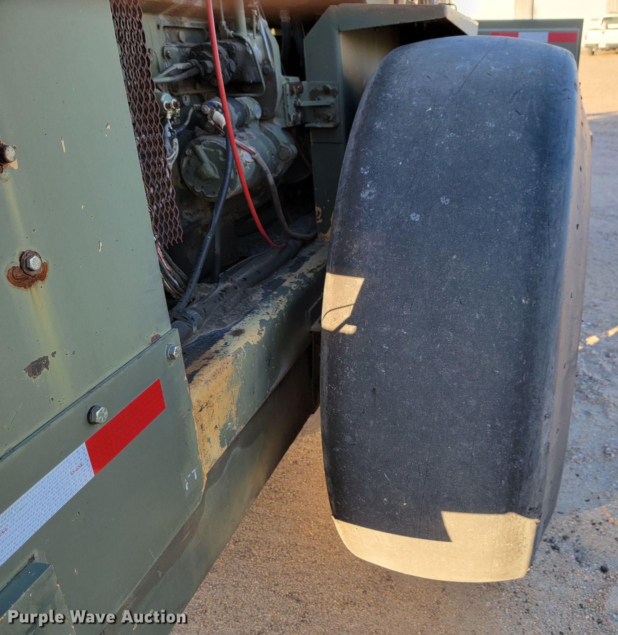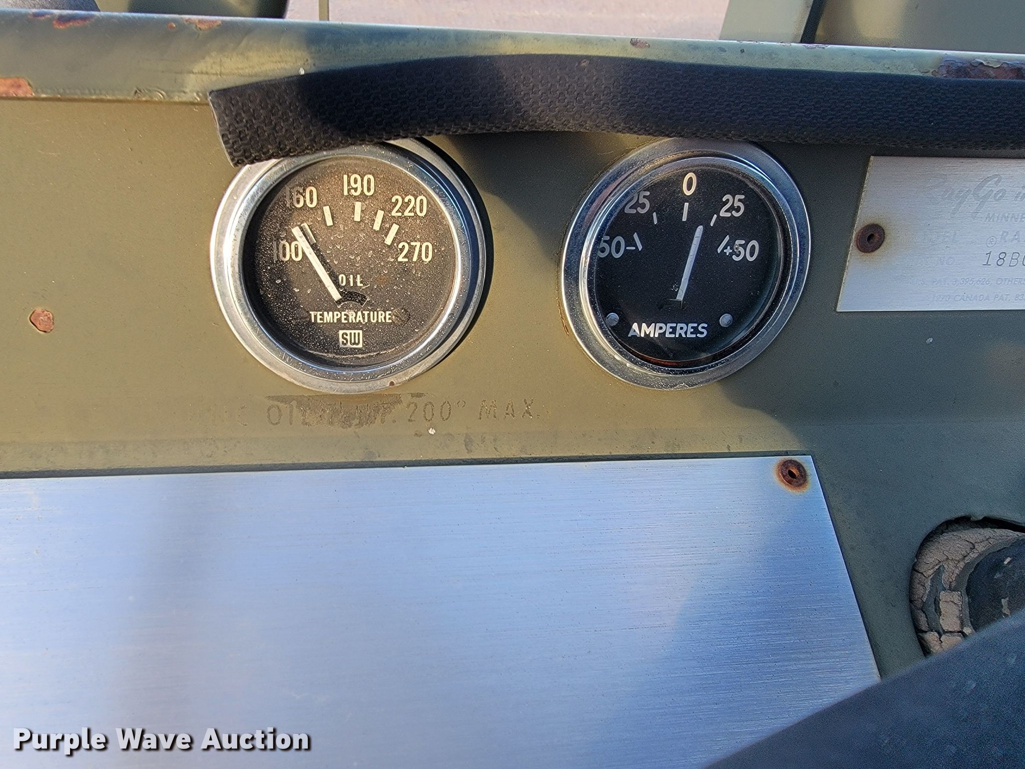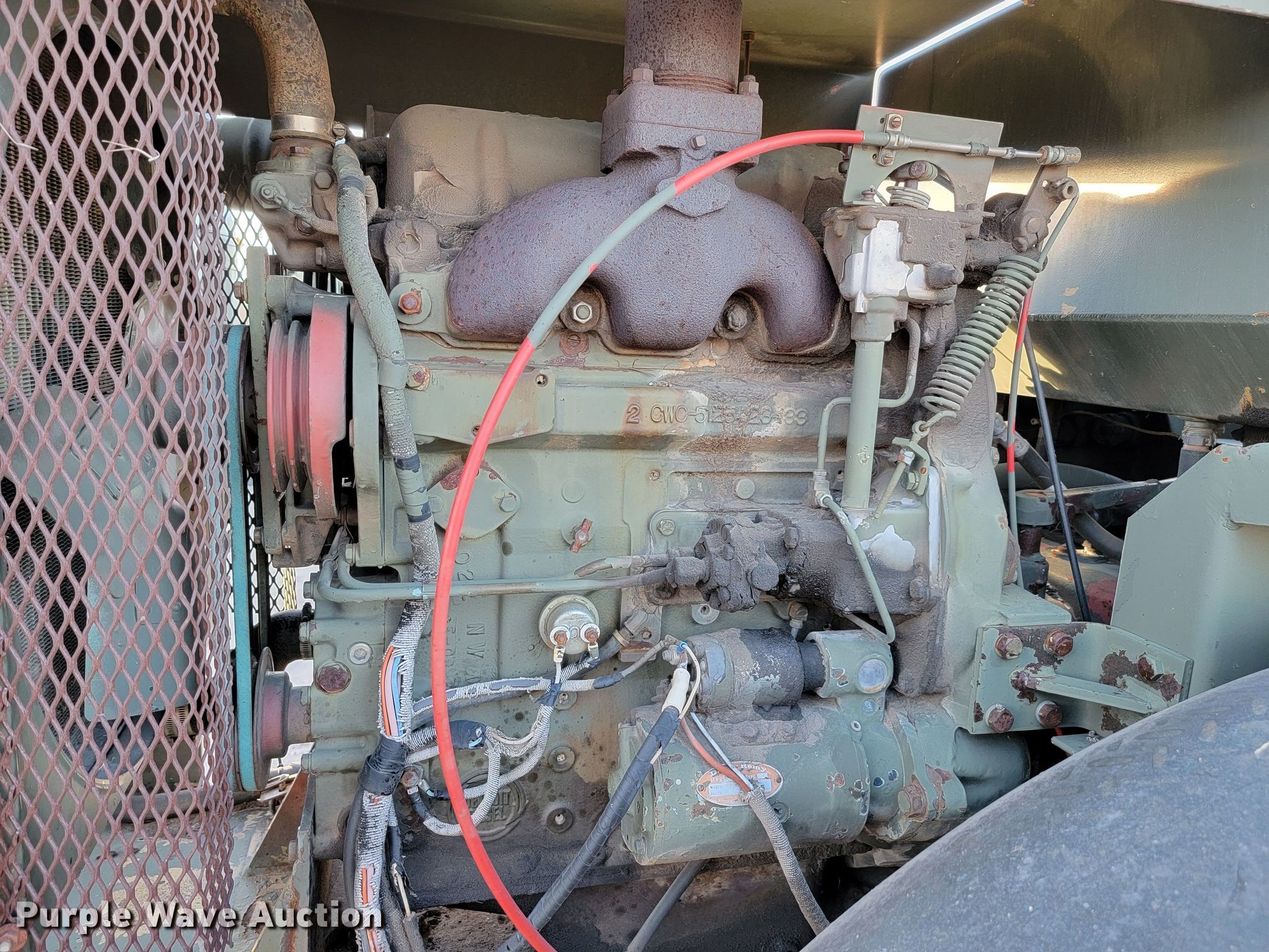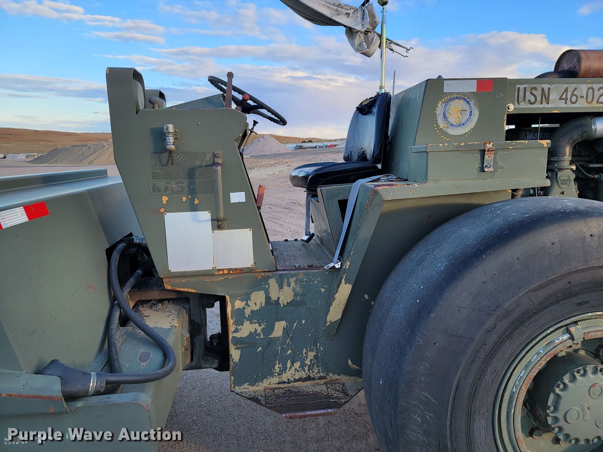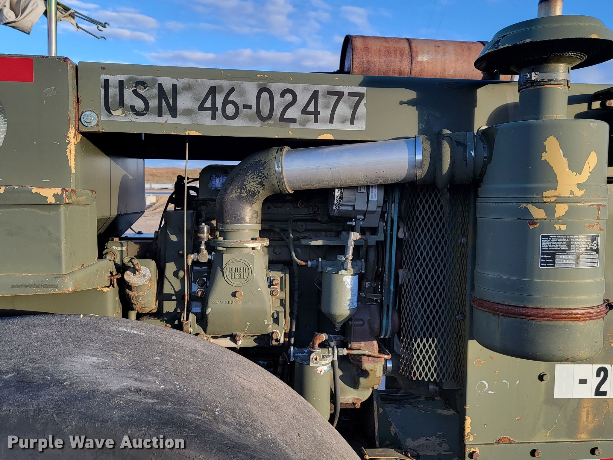 Raygo Rascal single drum roller. Hours: 18 on meter, Serial: 18B0178. Engine Detroit Diesel, Cylinders: 4, Fuel type: Diesel. Transmission Hydrostatic. Features Drum: Smooth, Vibratory system: Single, Front drum Width: 80", Diameter: 59", Drum scrapers: Front. Tires Size: 20.5-25. Notes Additional padfoot drum. Cherry County Road Department. Mullen, NE 69152