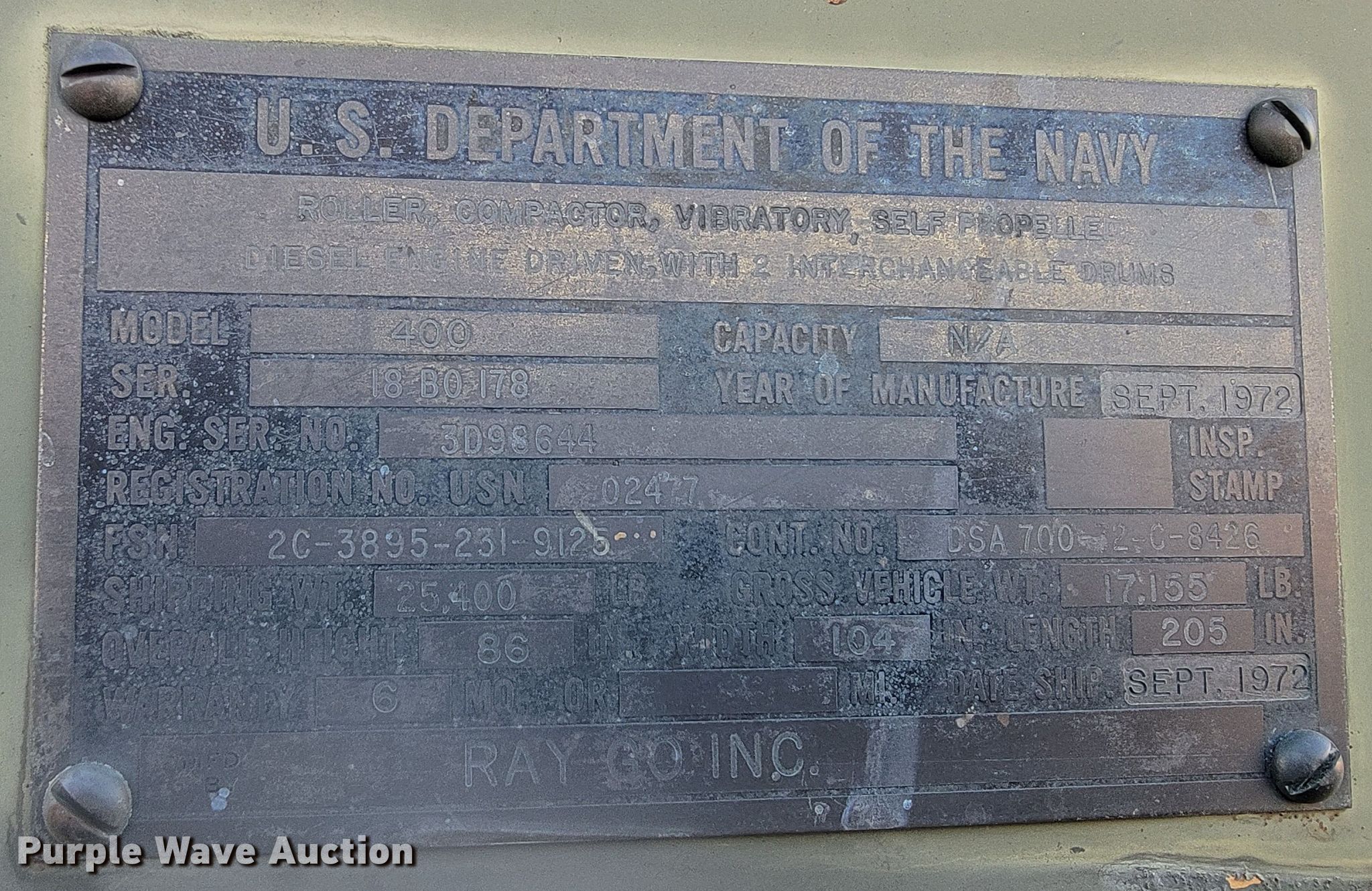 Purple Wave is selling a used Single Drum Roller Compactor in Nebraska. This item is a Raygo Rascal single drum roller with the following: Hours: 18 on meter, Serial: 18B0178