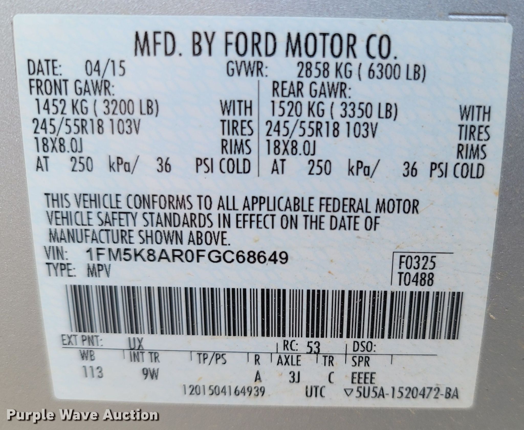 Purple Wave is selling a used Passenger Vehicle in Missouri. This item is a 2015 Ford Explorer Police Interceptor SUV with the following: Miles: 122,482 on odometer, VIN: 1FM5K8AR0FGC68649, Unit #: 2715