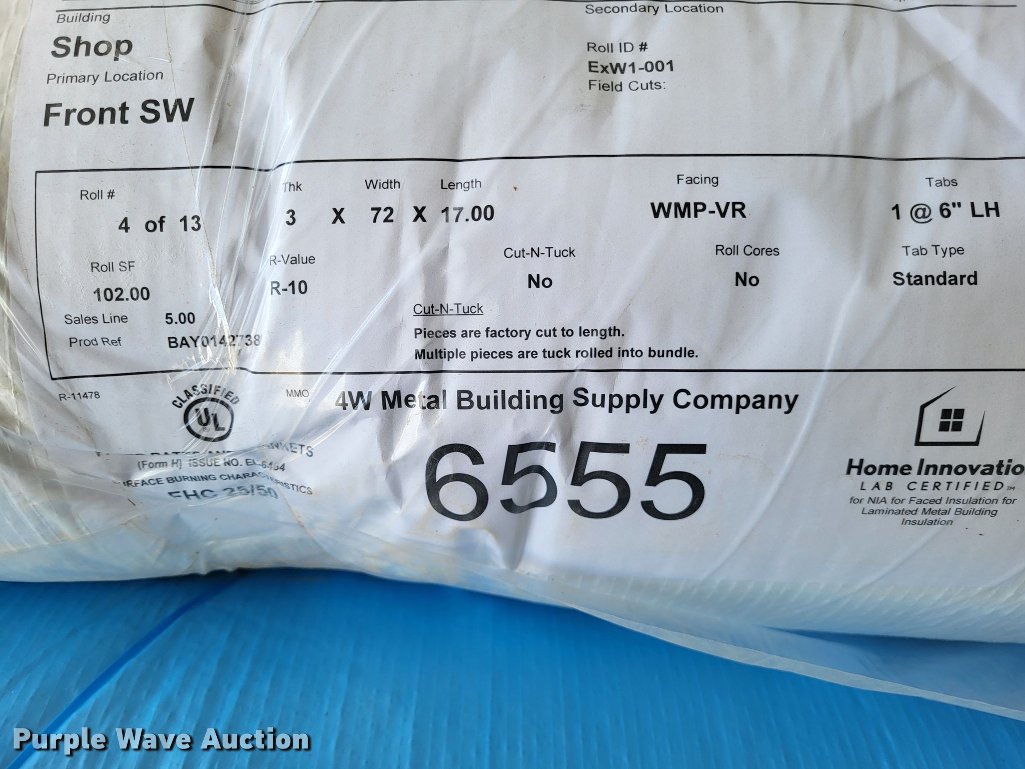 Purple Wave is selling a used Building Materials in Missouri. This item is a Approximately 25 rolls of insulation with the following: 72' W