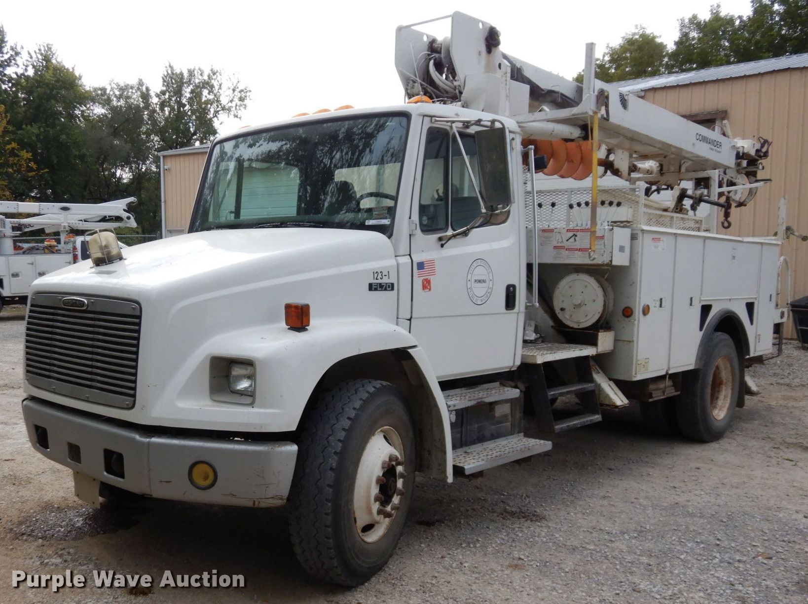 Purple Wave is selling a used Digger Derrick Truck in Kansas. This item is a 2001 Freightliner FL70 digger derrick truck with the following: Miles: 74,683 on odometer, Hours: 622 on meter, VIN: 1FVABTAK41HJ07124