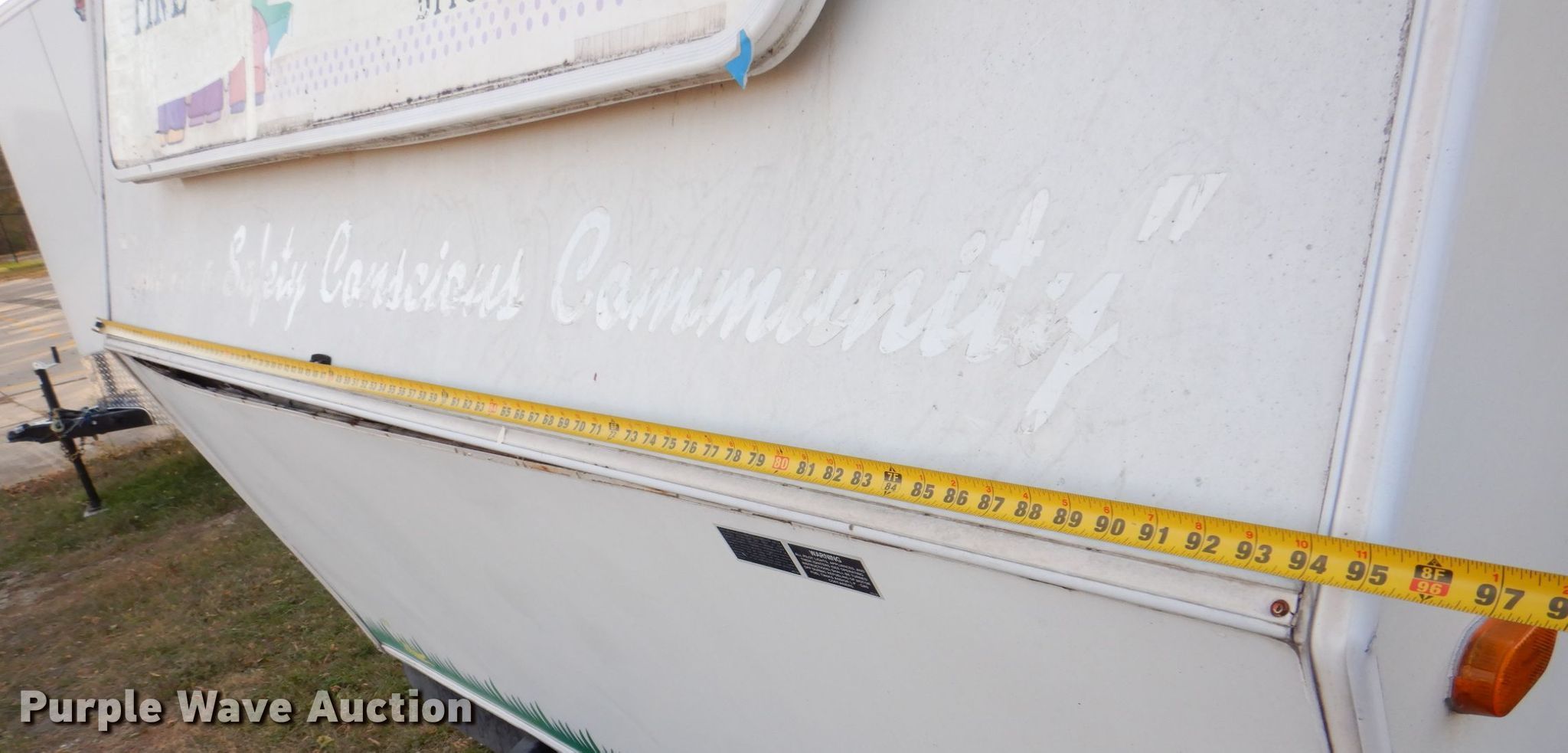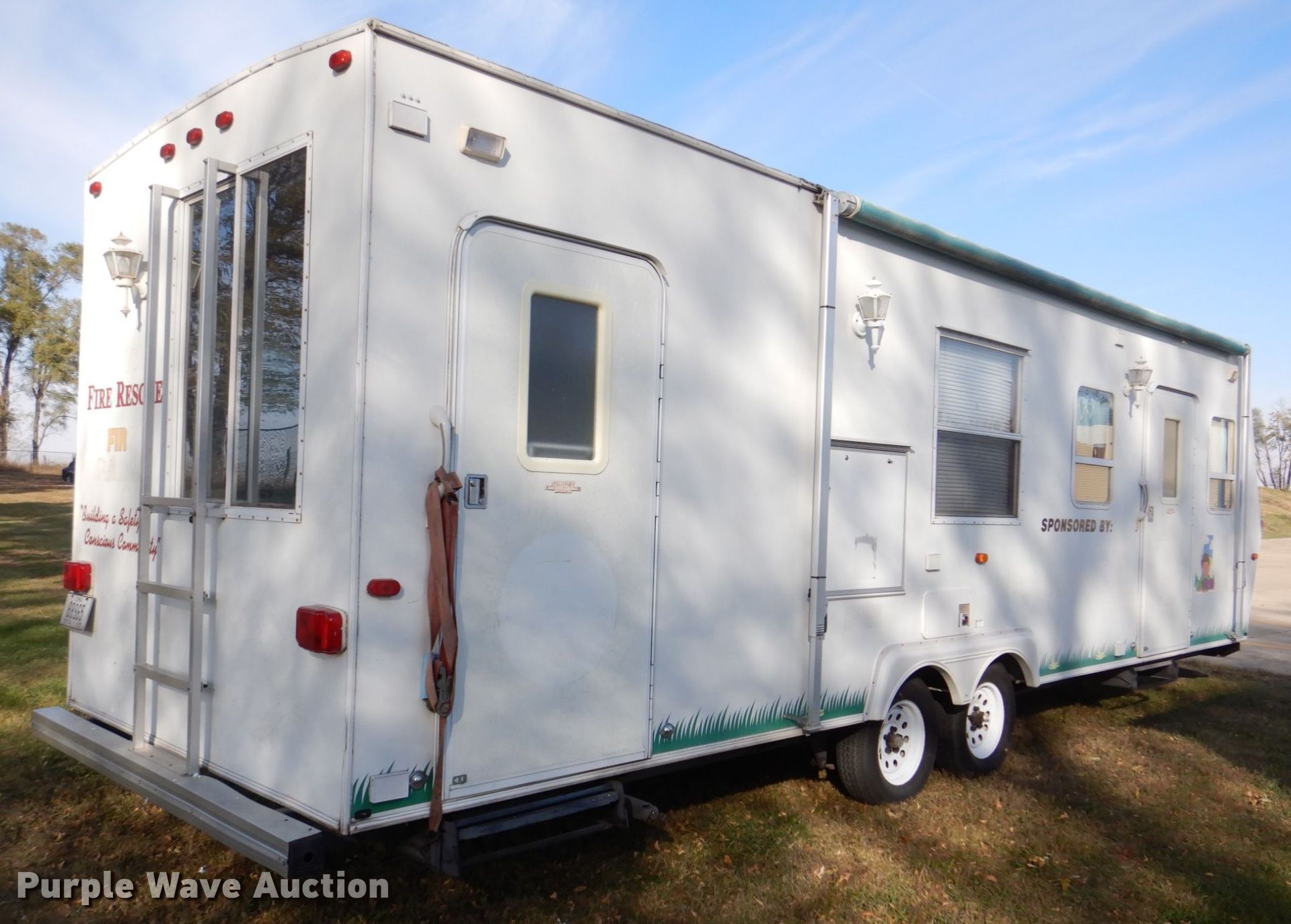 1999 Sury 30LTD1 fire safety camper. Camper length: 30' 8", VIN: 0316LTD19X9300269. Chassis Axles: Tandem, Suspension: Spring, Brakes: Electric. Interior Kitchen: Microwave, Stove: Propane, Beds: 1 Bed type: Twin, TVs: 1, Heater, AC units: 1. Features Awnings: 1 Awning type: Manual, Ball hitch: 2 5/16". Tires Size: 215/75R15. Iowa title. Title distribution may be delayed up to 14 days from verification of funds. Waterloo Fire Rescue. 1925 Newell Street. Waterloo, IA 50707