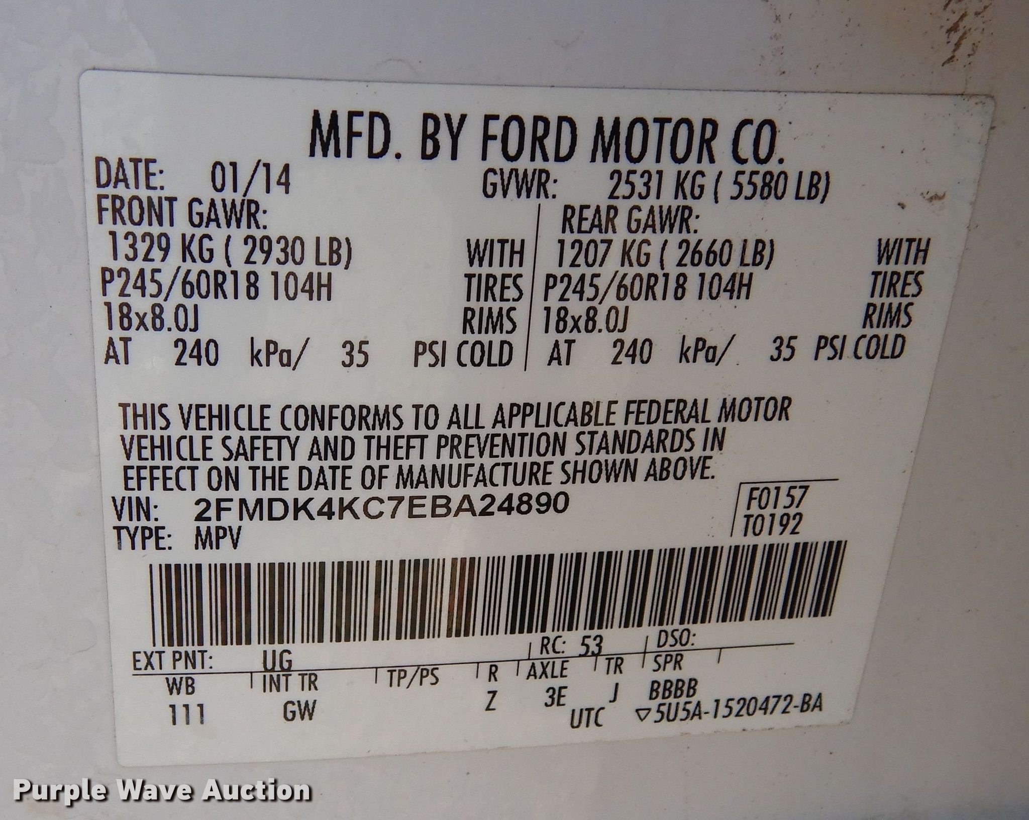 - VIN: 2FMDK4KC7EBA24890