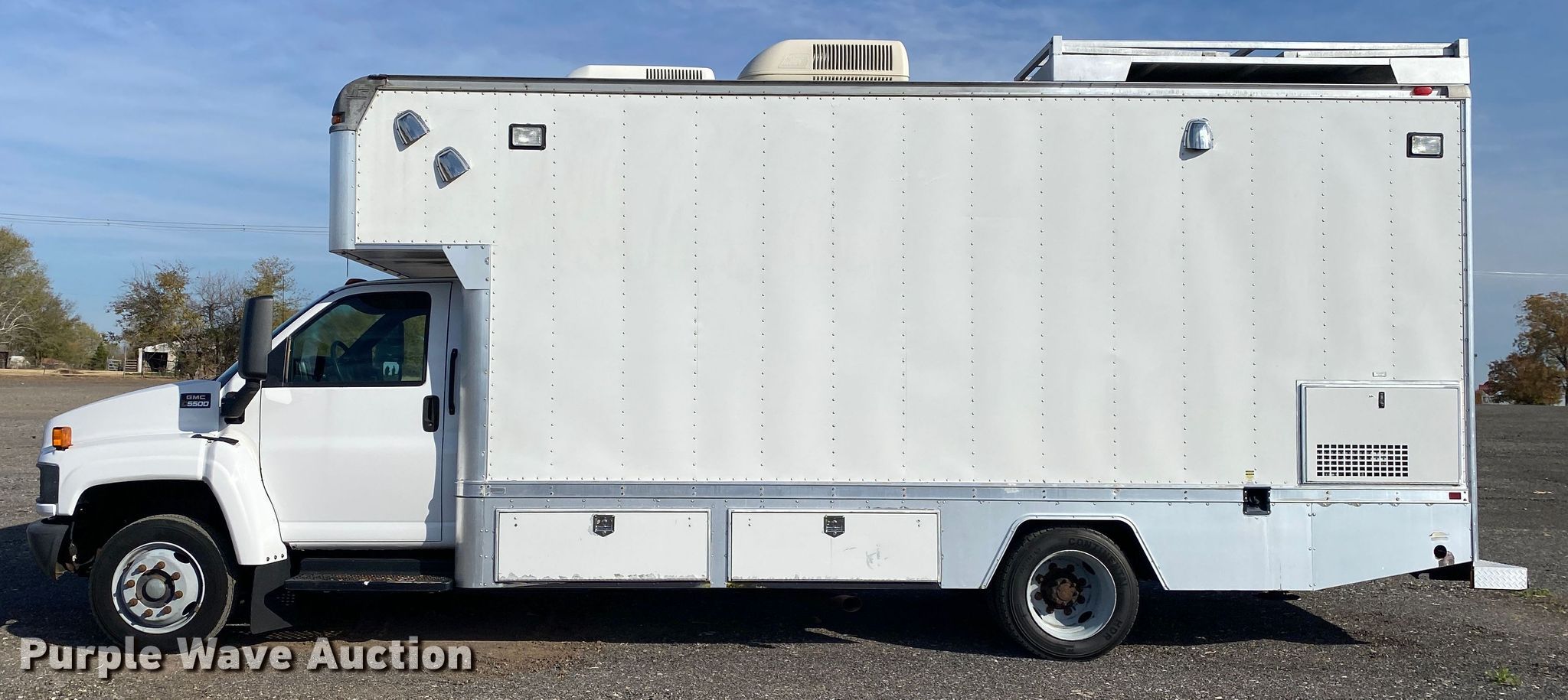 Purple Wave is selling a used Box Truck in Oklahoma. This item is a 2005 GMC C5500 satellite broadcasting truck with the following: Miles: 72,293 on odometer, VIN: 1GDE5C1E65F523655