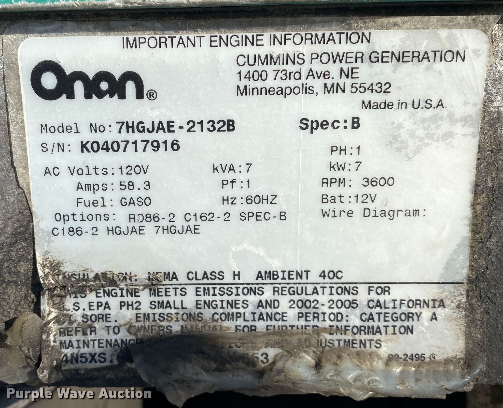 - Onan 7HGJAE-2132B generator