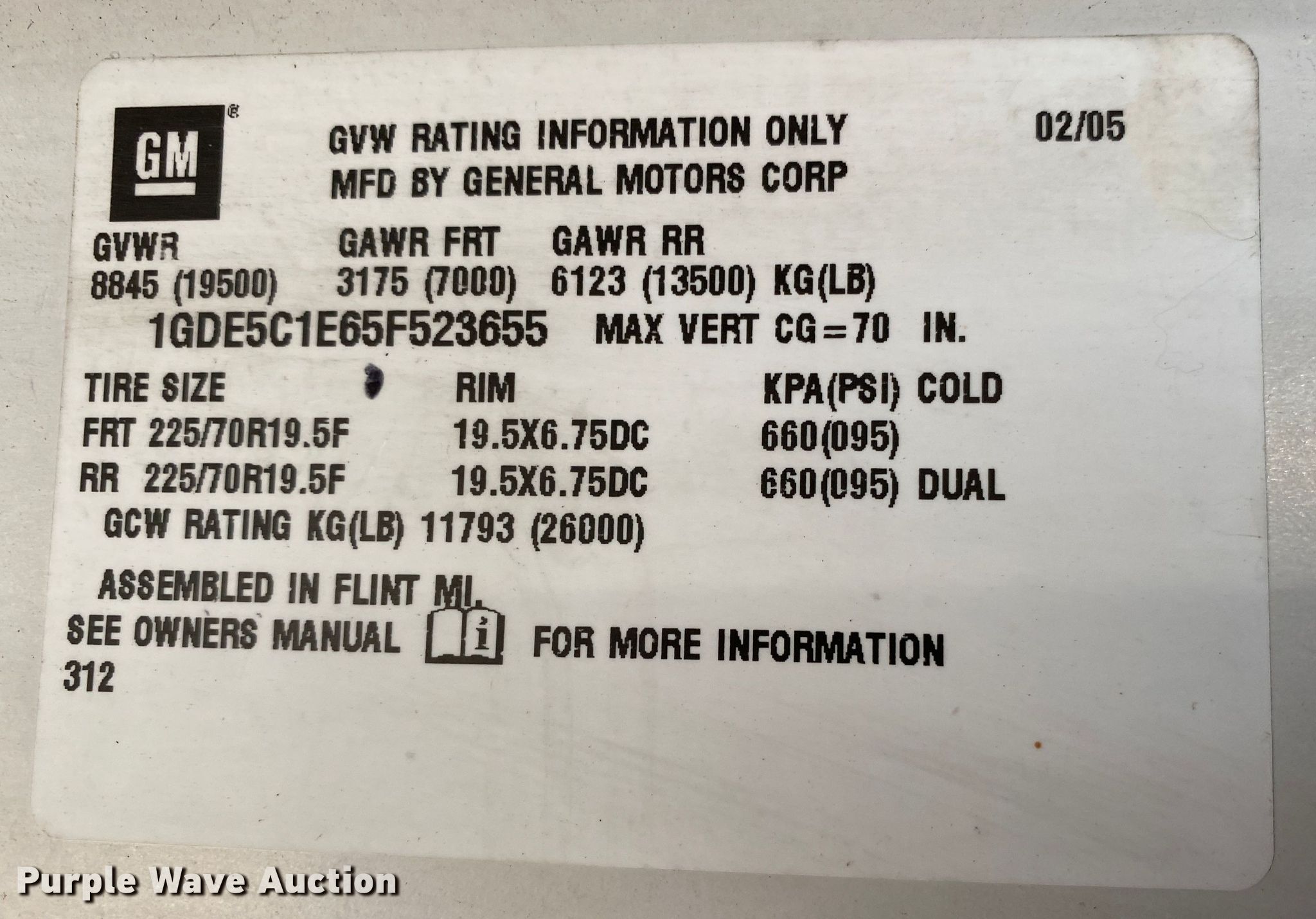 - VIN: 1GDE5C1E65F523655