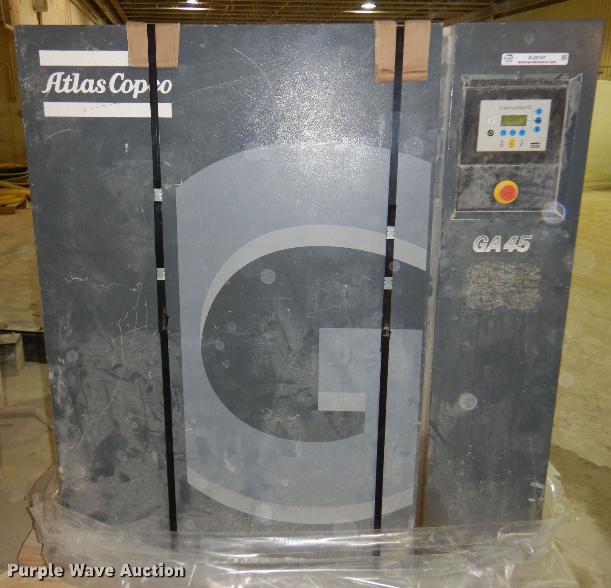 Purple Wave is selling a used Air Compressor in Kansas. This item is a Atlas Copco GA45 air compressor with the following: Serial: API593677