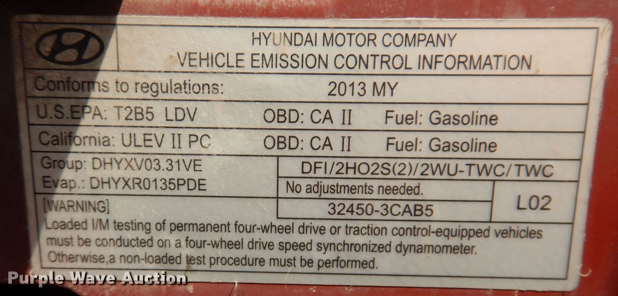 2013 Hyundai Santa Fe Limited SUV. Miles: 189,274 on odometer, VIN: KM8SRDHF2DU013129. Engine Displacement: 3.3L V6 DOHC, Cylinders: 6, Fuel type: Gas. Transmission Automatic, All wheel drive. Interior AC, Heat, Seat: Heated, Power driver, Power passenger, Power windows, Power locks, Cruise control, Backup camera, Powered sunroof. Tires Size: 235/55R19. Notes Windshield chipped or cracked. Iowa title. Title distribution may be delayed up to 14 days from verification of funds. Quality Car Care LLC. 1012 North 10th Street. Winterset, IA 50273