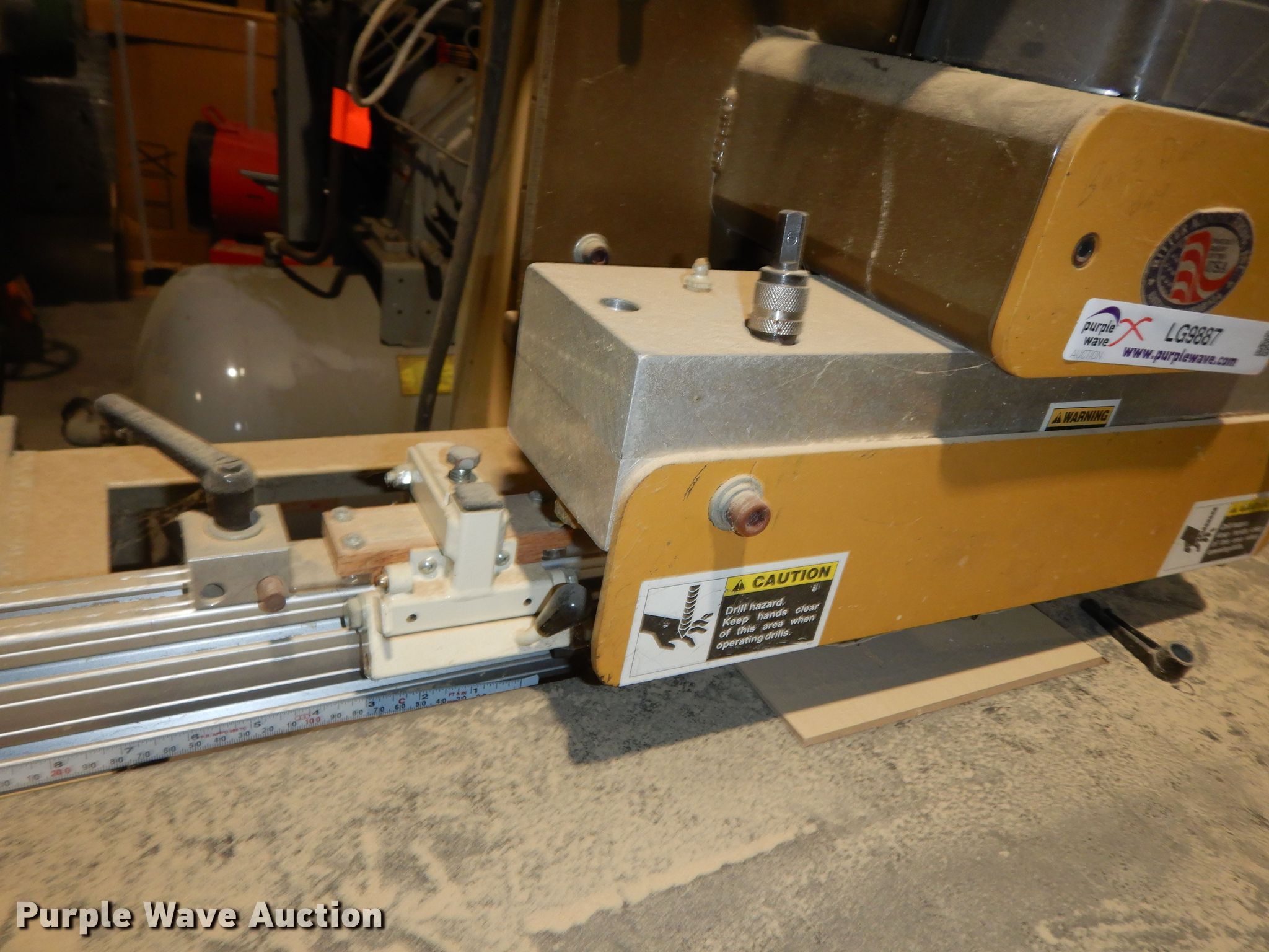 Purple Wave is selling a used Tools in Kansas. This item is a Ritter door pull drill with the following: Baldor electric motor, 208-230/460V, Three phase, 1 HP, Table, 4' x 24", Foot pedal, Unit #: 2