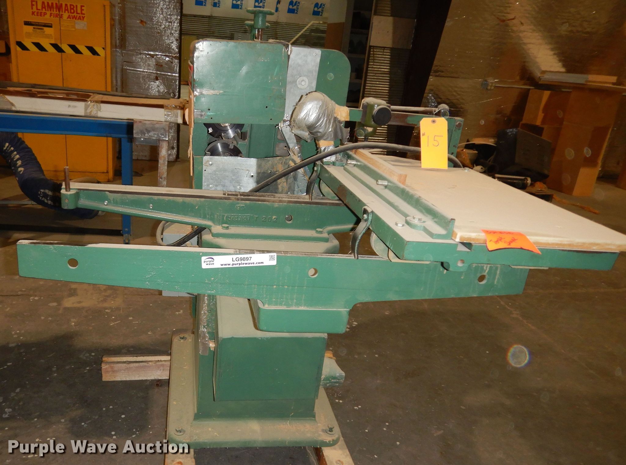 Purple Wave is selling a used Tools in Kansas. This item is a Powermatic 2A tongue shaper with the following: Dual blades, Three phase, Serial: 428005, Unit #: 15
