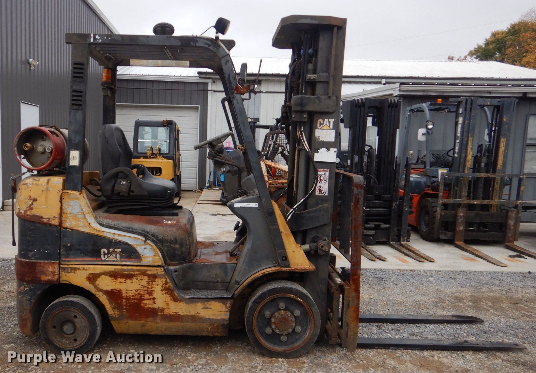 Purple Wave is selling a used Warehouse Forklift in Kentucky. This item is a Caterpillar C5000 forklift with the following: Hours: 27,101 on meter, Serial: AT9003527