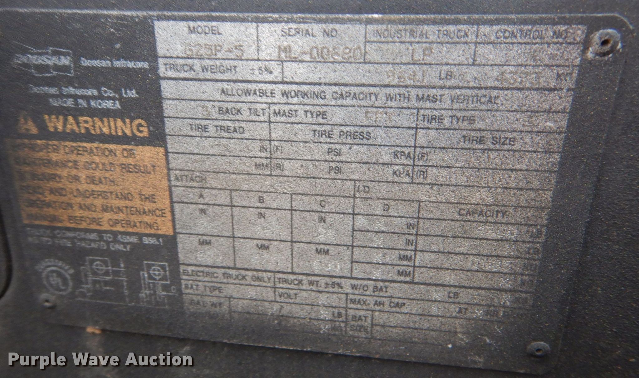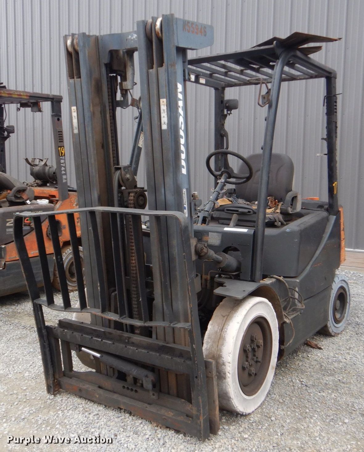Purple Wave is selling a used Warehouse Forklift in Kentucky. This item is a Doosan G25P-5 forklift with the following: Hours: Unknown, Serial: ML-00680