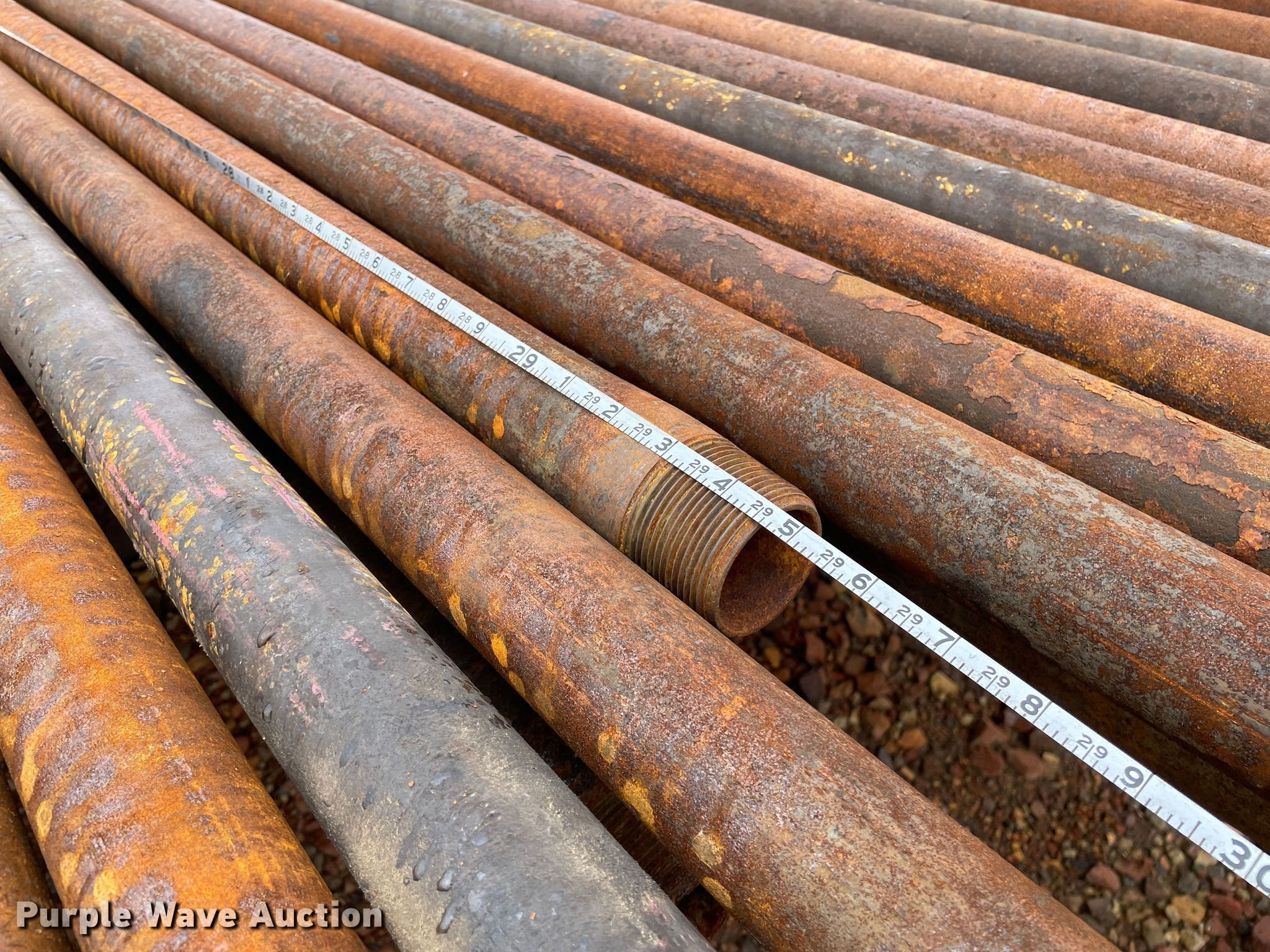 Purple Wave is selling a used Pipe in Kansas. This item is a (25) pipes with the following: 2 3/8" diameter, Length: 29' 4" L to 32' 7" L