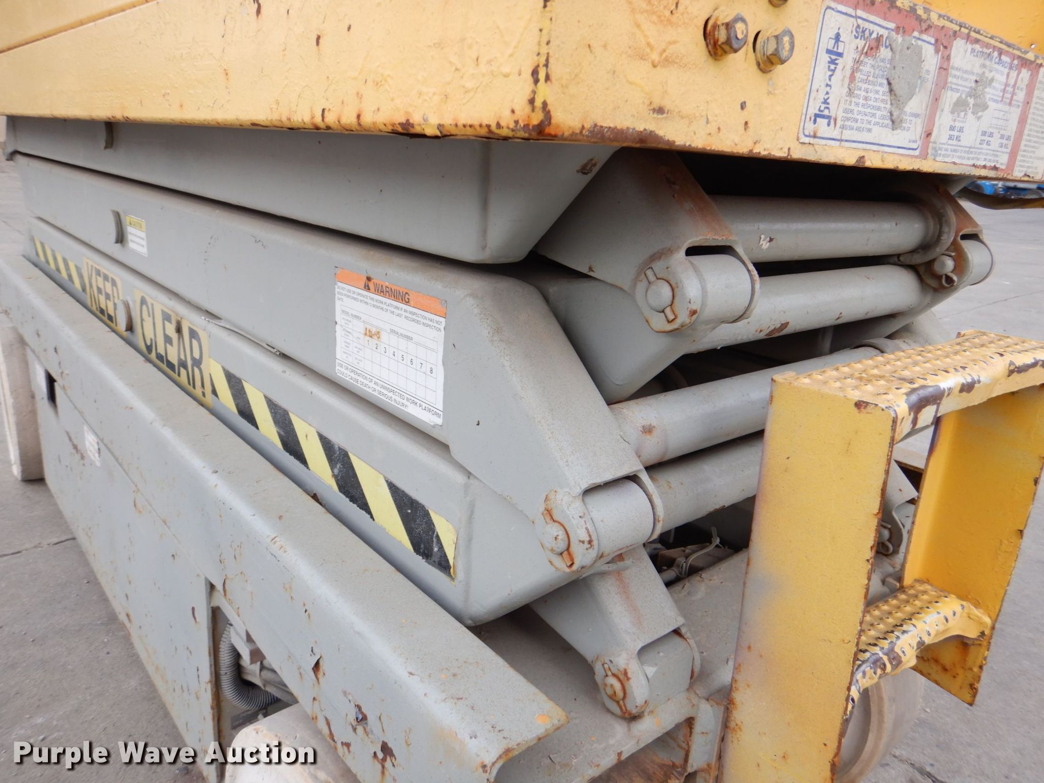Purple Wave is selling a used Scissor or Vertical Lift in Iowa. This item is a Skyjack SJ3220 scissor lift with the following: Hours: 376 on meter, Serial: 604187