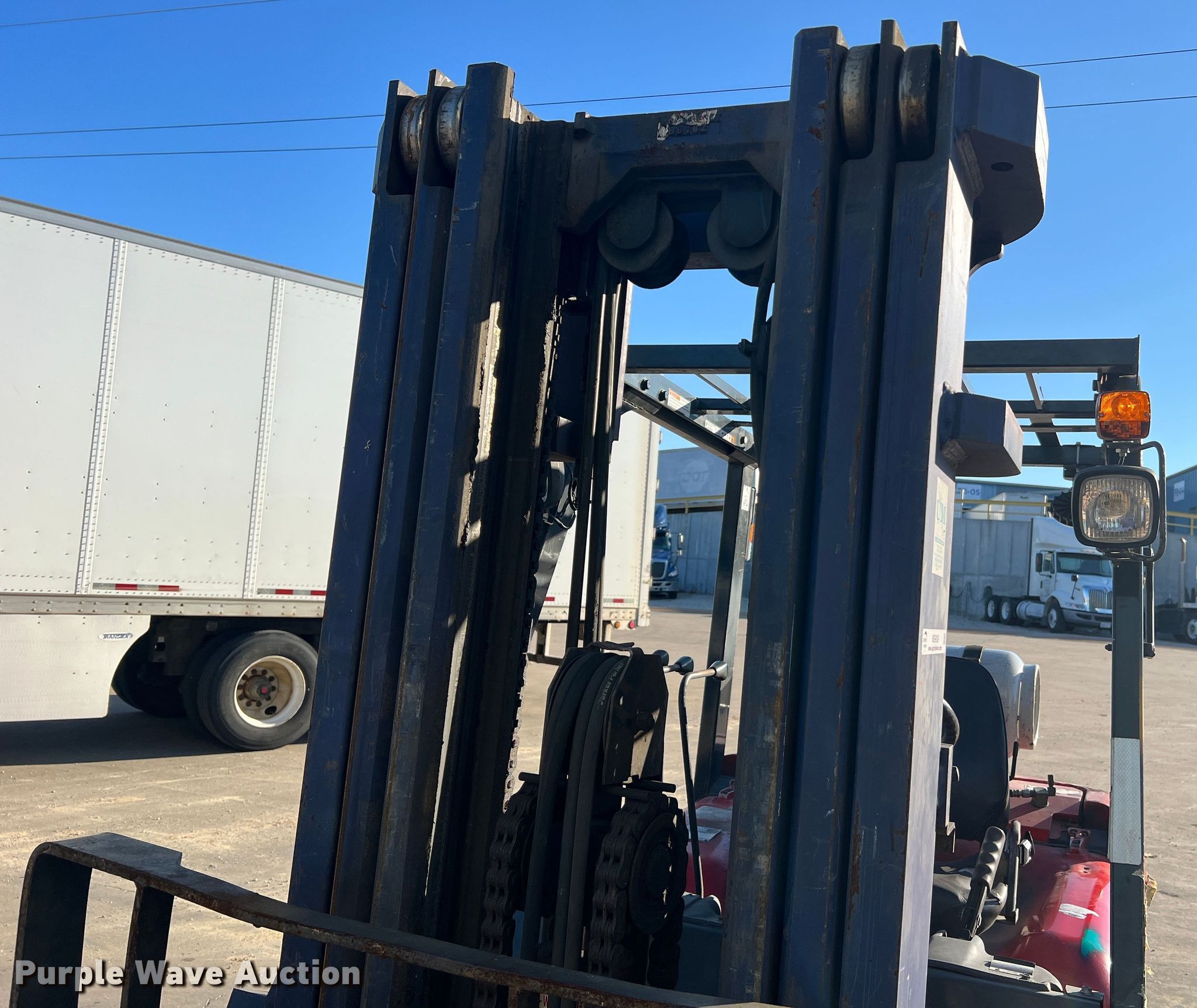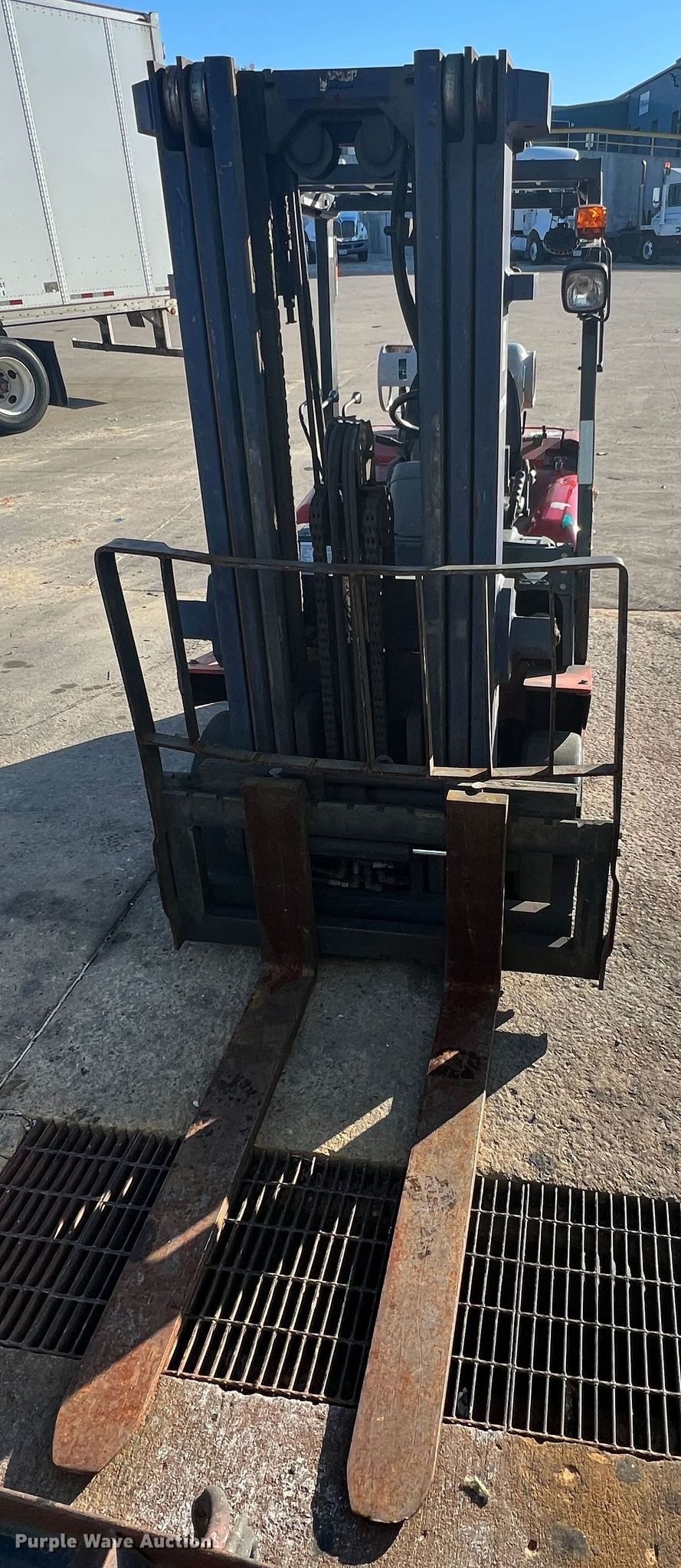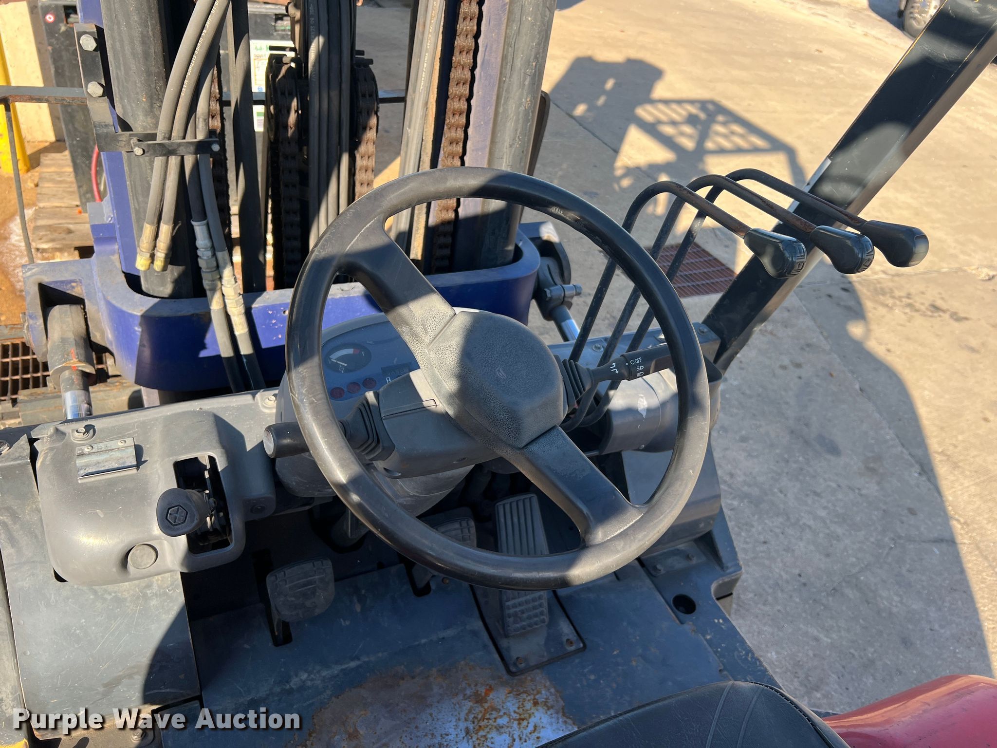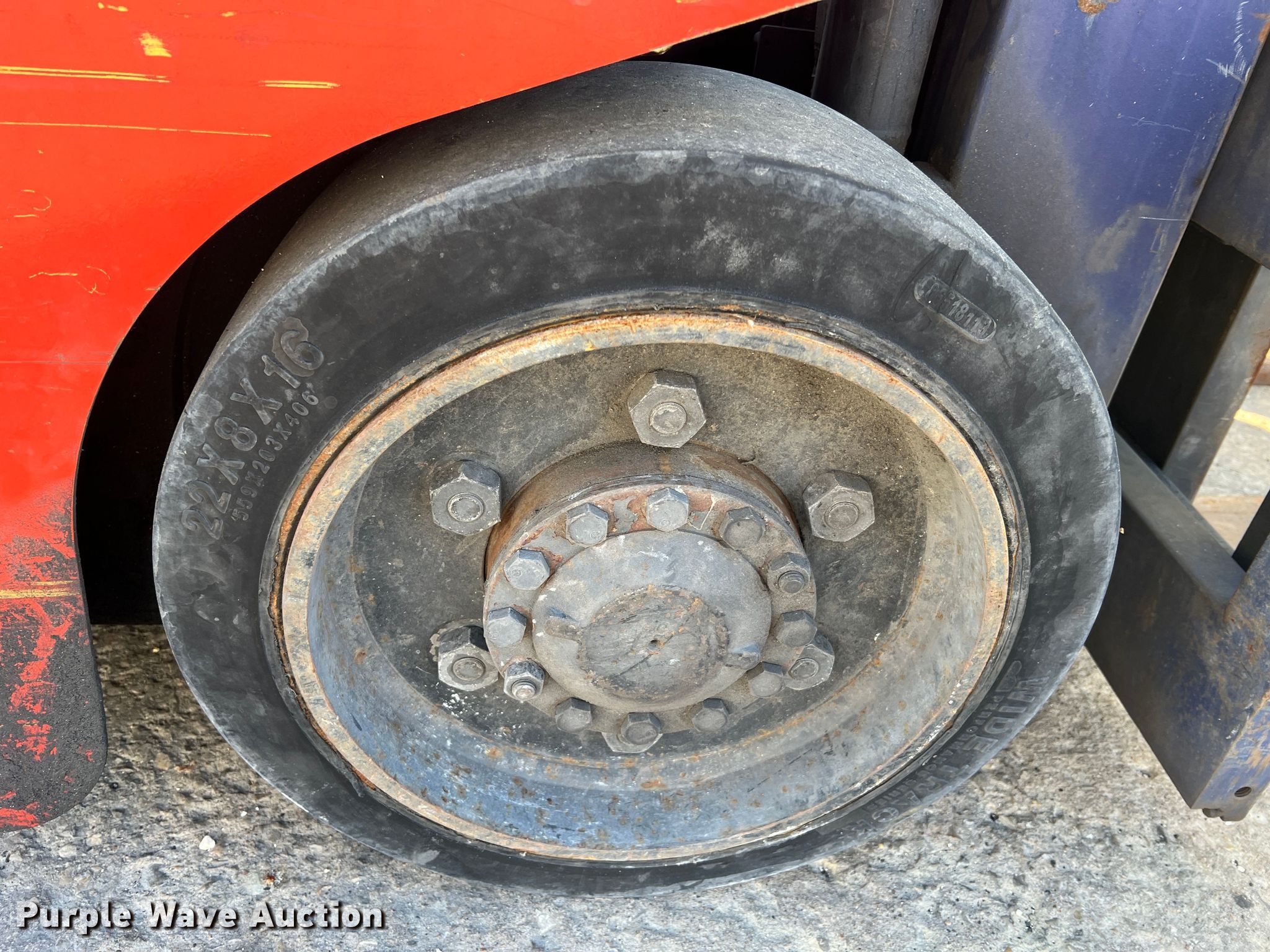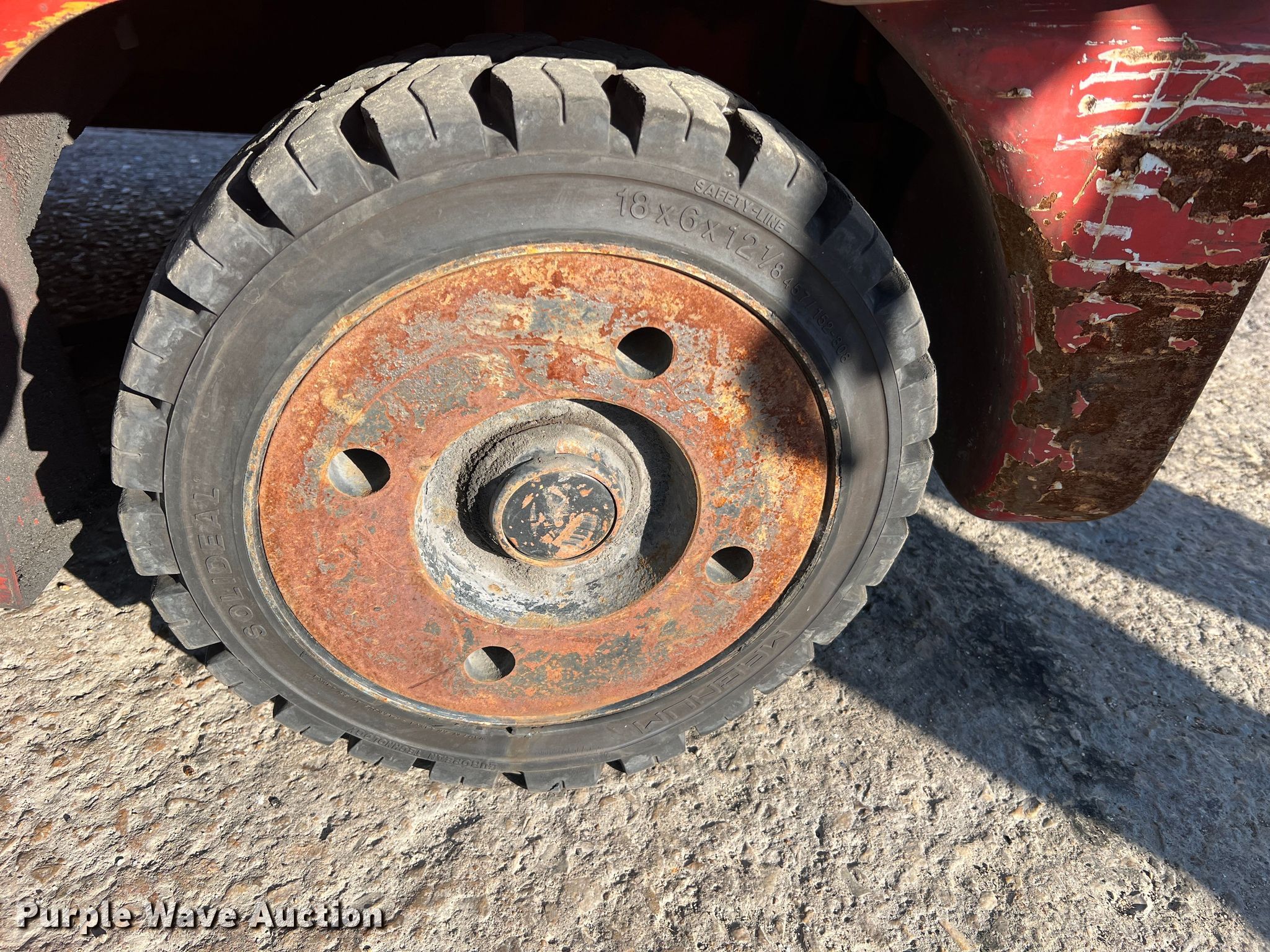 Kalmar AC C80CXPS forklift. Hours: 13,080 on meter, Serial: 130075A, Unit #: QW014. Engine Nissan, Cylinders: 6, Fuel type: LPG LP bottle: Not included. Transmission Powershift. Features Maximum lift capacity: 7,340 lbs, Maximum lift height: 119", Mast stages: 3, Side shift, Mast tilt, Fork length: 47". Tires Size: 22x8x16, Solid, Non marking. Notes Non-operational transmission. Quaker Windows & Doors. 504 S Hwy 63. Freeburg, MO 65035