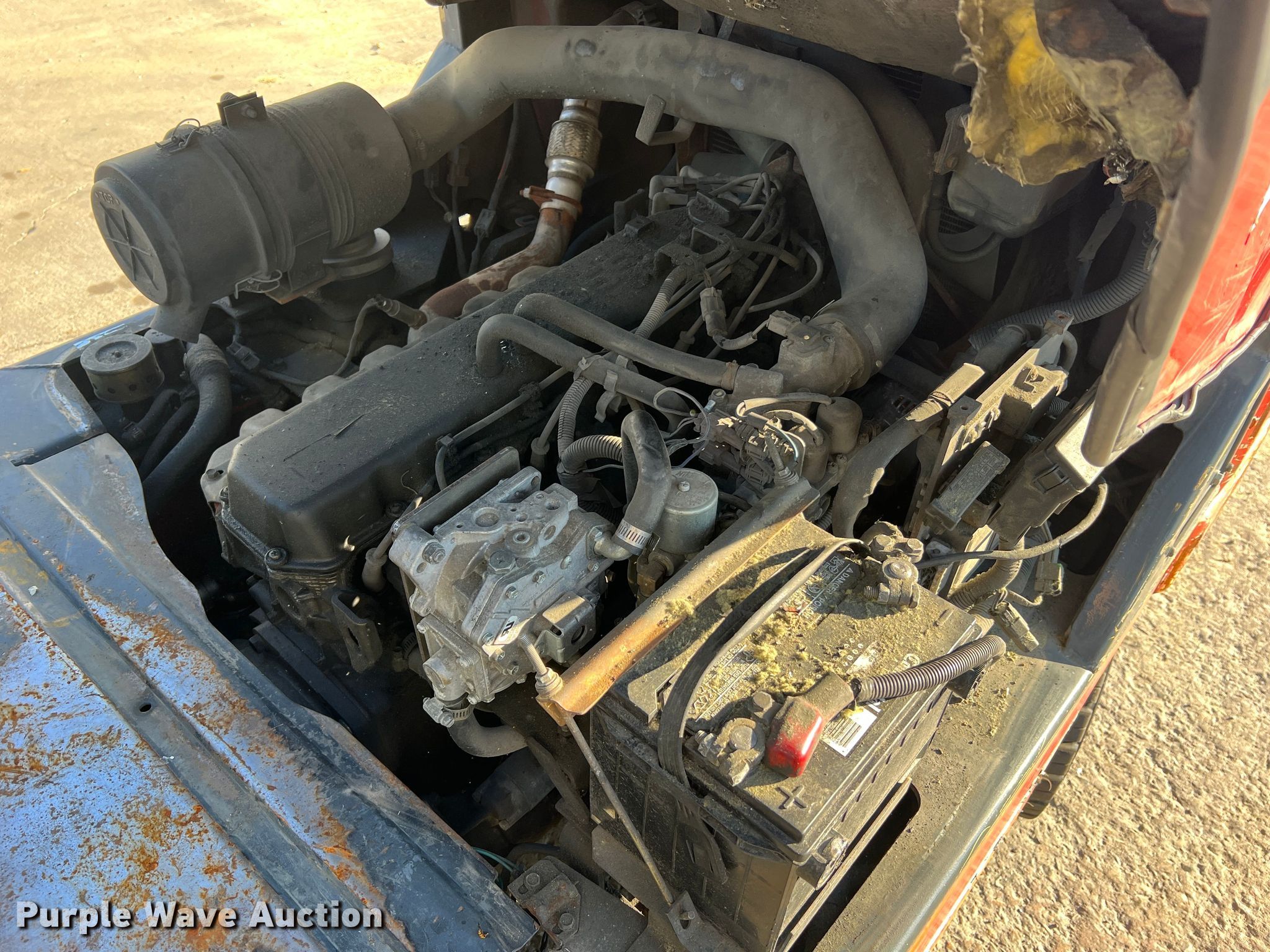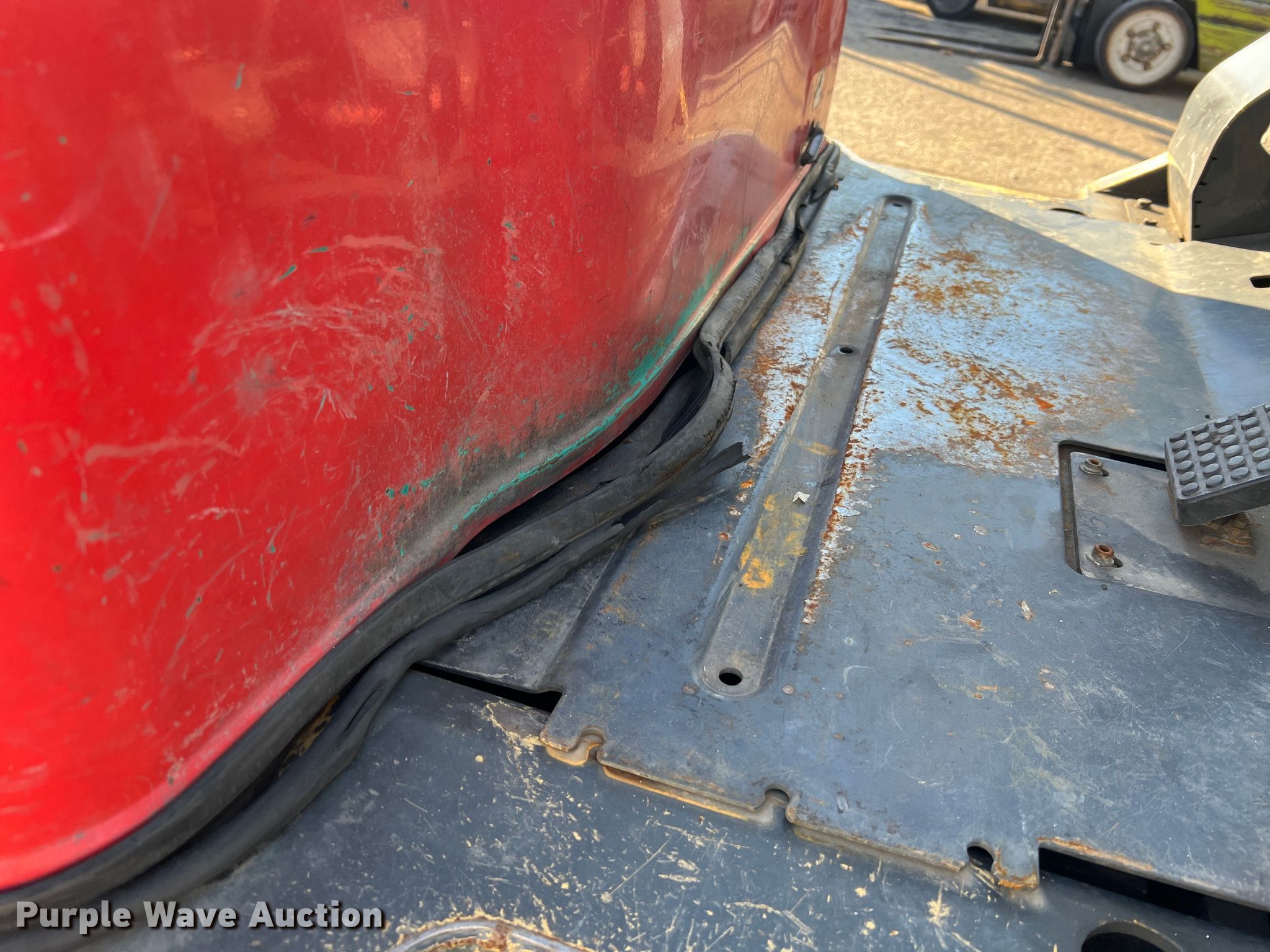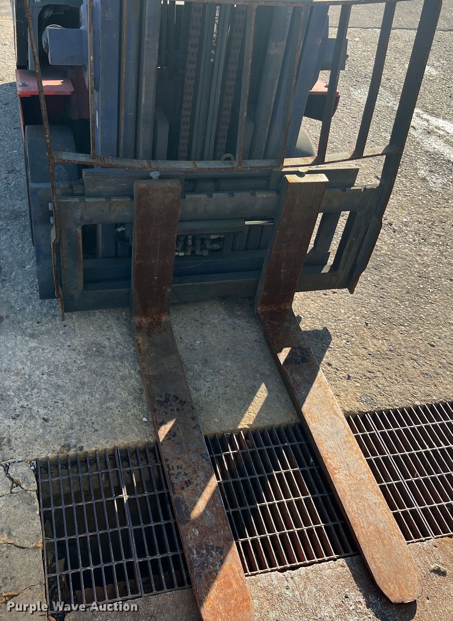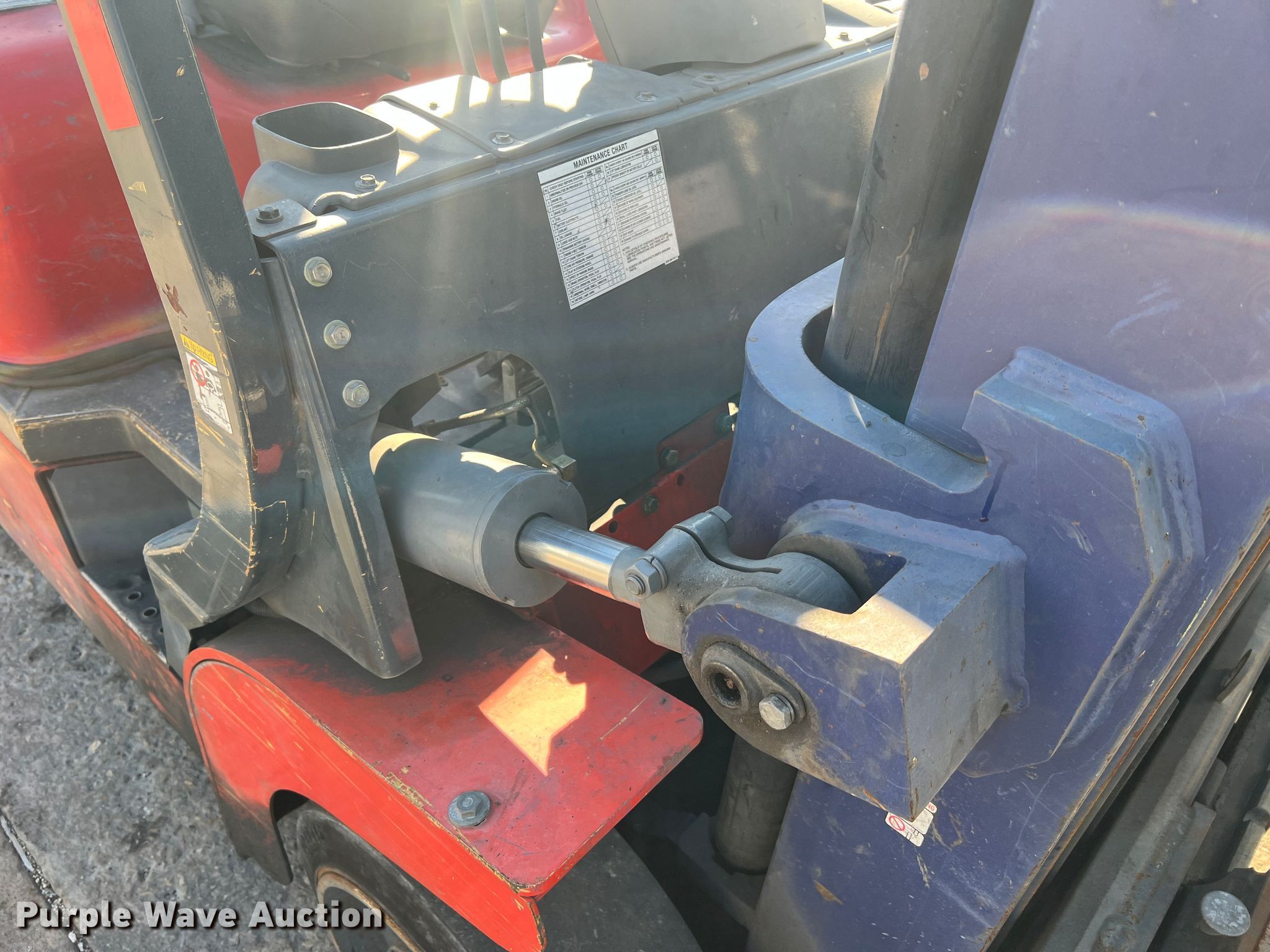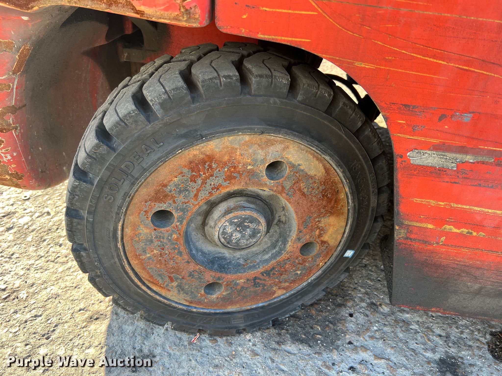 Kalmar AC C80CXPS forklift. Hours: 13,080 on meter, Serial: 130075A, Unit #: QW014. Engine Nissan, Cylinders: 6, Fuel type: LPG LP bottle: Not included. Transmission Powershift. Features Maximum lift capacity: 7,340 lbs, Maximum lift height: 119", Mast stages: 3, Side shift, Mast tilt, Fork length: 47". Tires Size: 22x8x16, Solid, Non marking. Notes Non-operational transmission. Quaker Windows & Doors. 504 S Hwy 63. Freeburg, MO 65035