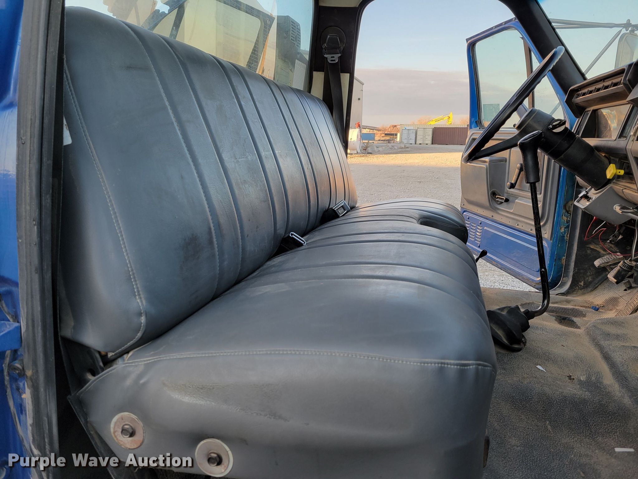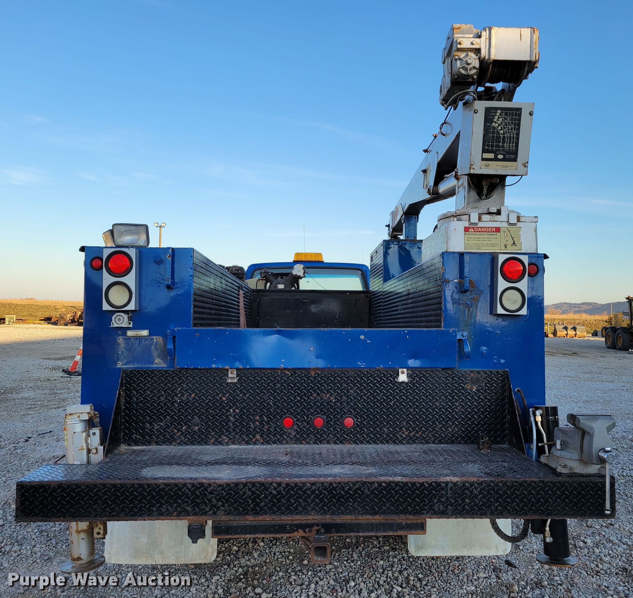 1997 Ford F800 utility / service truck. Miles: 141,512 on odometer, VIN: 1FDNF80C4VVA44554. Engine Cummins, Displacement: 5.9L, Cylinders: 6, Fuel type: Diesel, HP: 190. Transmission Spicer, Manual, Speed: 7. Chassis Axles: Single, Suspension: Spring, Brakes: Air, PTO, GVWR: 26,000 lbs, Wheelbase: 190". Interior AC, Heat. Features Bed IMT, 16' 2" L x 94" W, Air compressor Ingersoll Rand 2475, Honda GX340, Crane IMT, Maximum boom length: 20' Maximum lift capacity: 3,600 lbs.. Tires Size: 10R22.5. Nebraska title. Mileage has not been verified. Exempt will be written in the odometer disclosure on the title. Title distribution may be delayed up to 14 days from verification of funds. Neuvirth Construction. 3400 Old Mormon Bridge Rd. Crescent, IA 51526