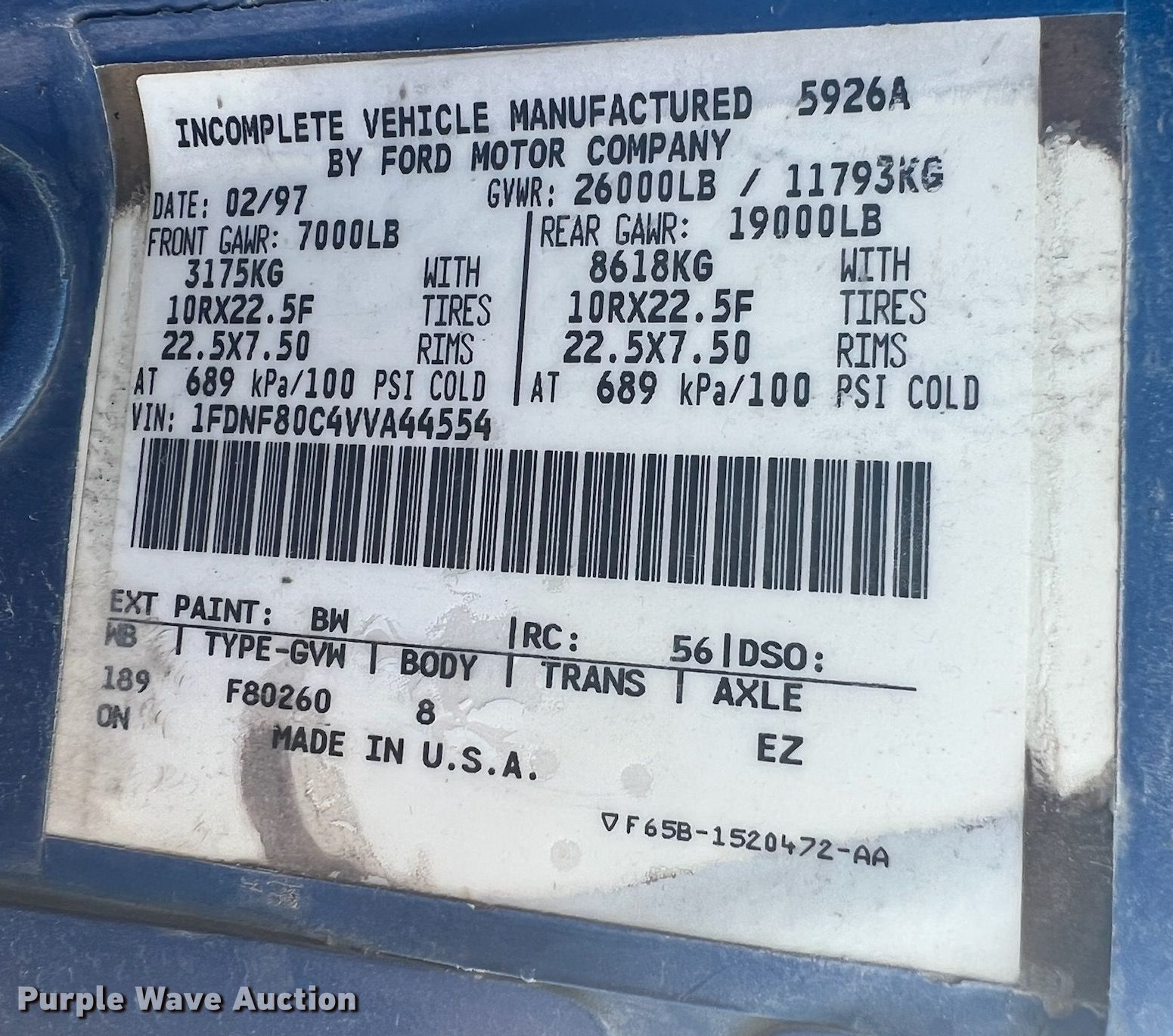 Purple Wave is selling a used Service Truck in Iowa. This item is a 1997 Ford F800 utility / service truck with the following: Miles: 141,512 on odometer, VIN: 1FDNF80C4VVA44554