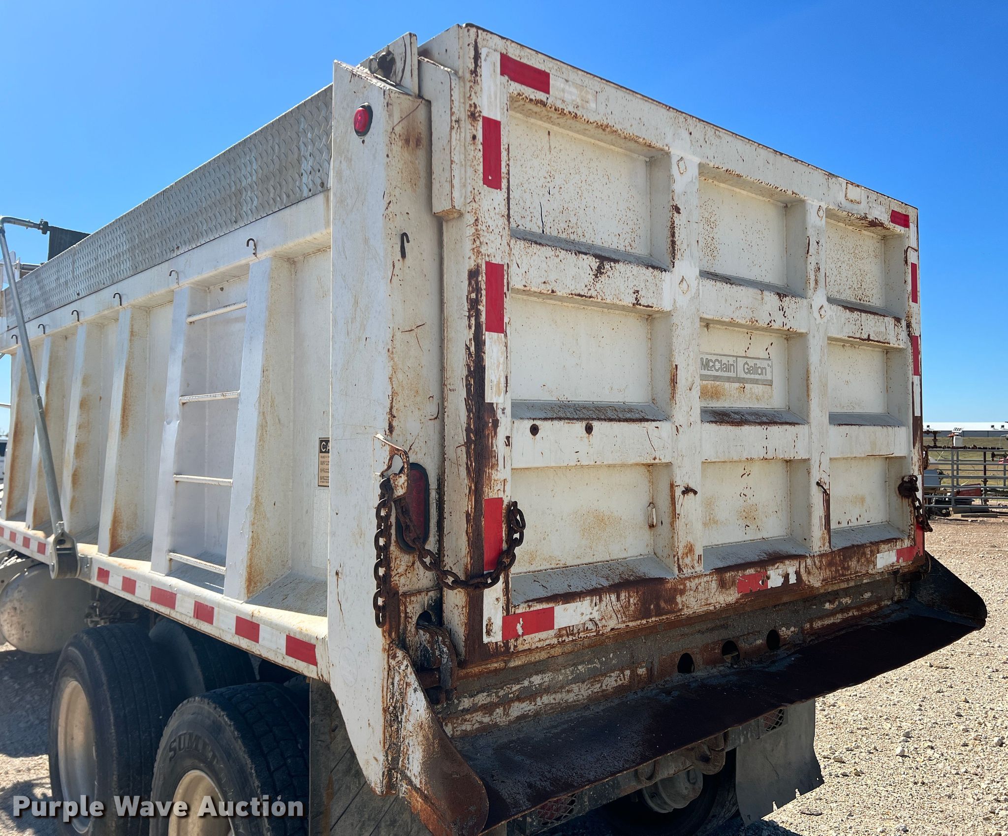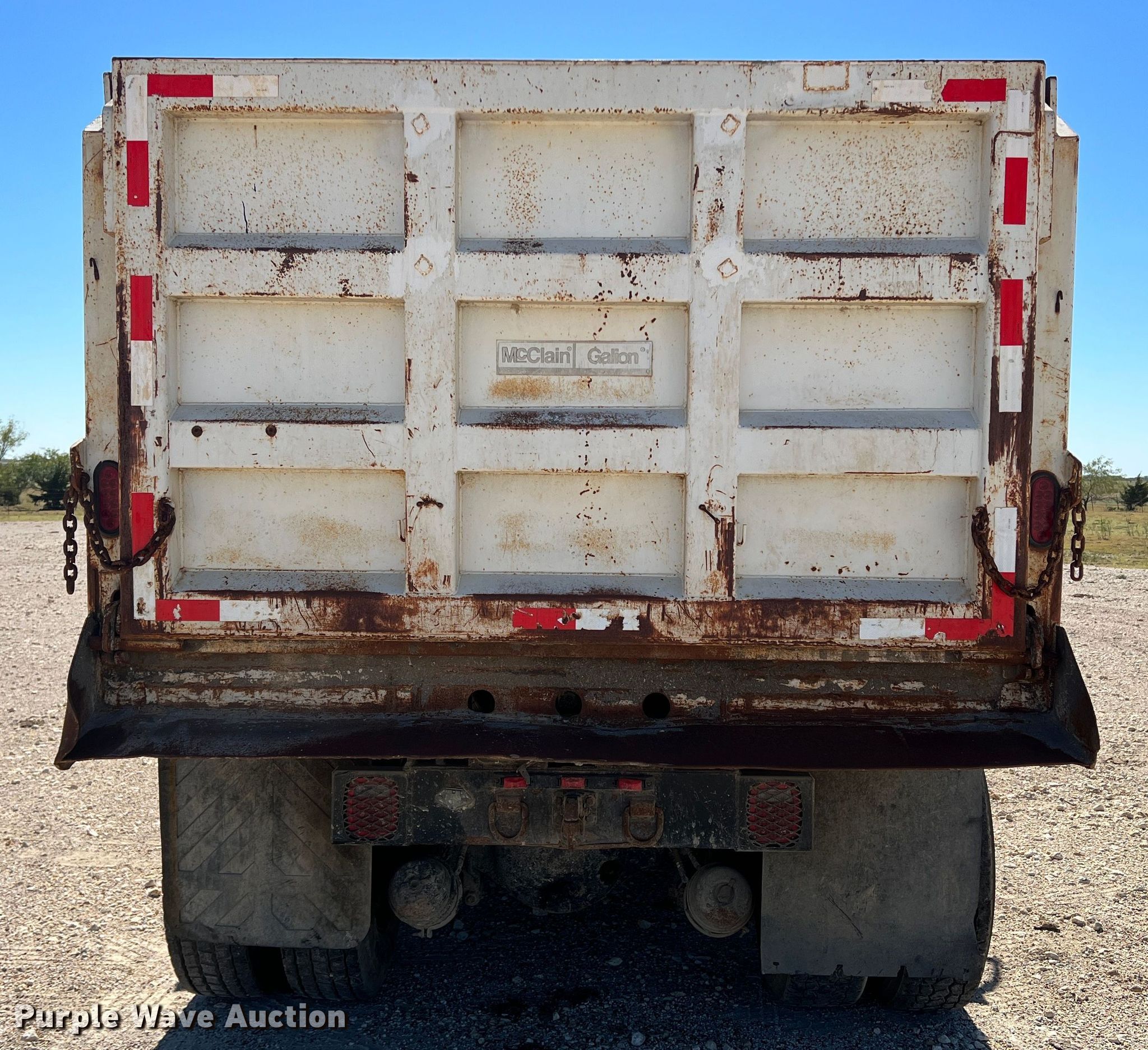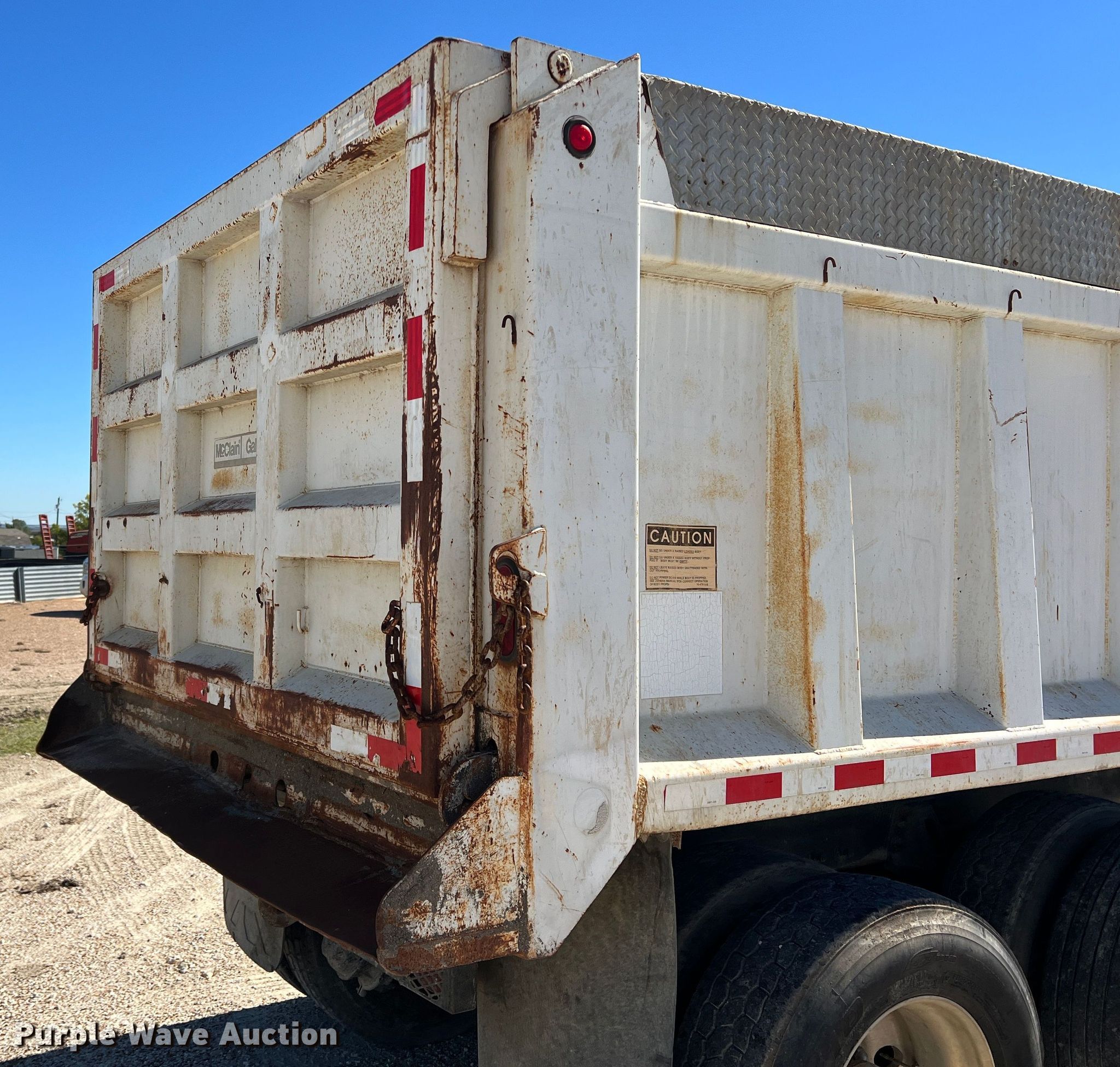 2001 Peterbilt 330 dump truck. Miles: 235,470 on odometer, VIN: 2NPNLD9X81M561032. Engine Caterpillar 3126, Serial: 8YL64245, Displacement: 7.2L, Cylinders: 6, Fuel type: Diesel. Transmission Manual, Speed: 13. Chassis Double frame, Axles: Tandem, Differential lock: Inter-axle, Suspension: Spring over walking beam, Brakes: Air, PTO, GVWR: 52,350 lbs FAWR: 12,350 lbs, IAWR: 20,000 lbs, RAWR: 20,000 lbs. Interior AC, Heat, Heated mirrors, Cruise control, Brake controller. Features Dump bed McClain Galion 502F, 15' L x 95" W, Side height: 47", Side board height: 10", Bed type: Steel, Roll tarp, Ram: Single , End gate: Manual. Tires Size: 295/75R22.5. Notes Dash warning indicator: ABS, Windshield chipped or cracked, Possible fuel system issues, fuel pressure bleeds off. Texas title. Title distribution may be delayed up to 14 days from verification of funds. Haros Brothers Co. 8856 County Road 604. Alvarado, TX 76009