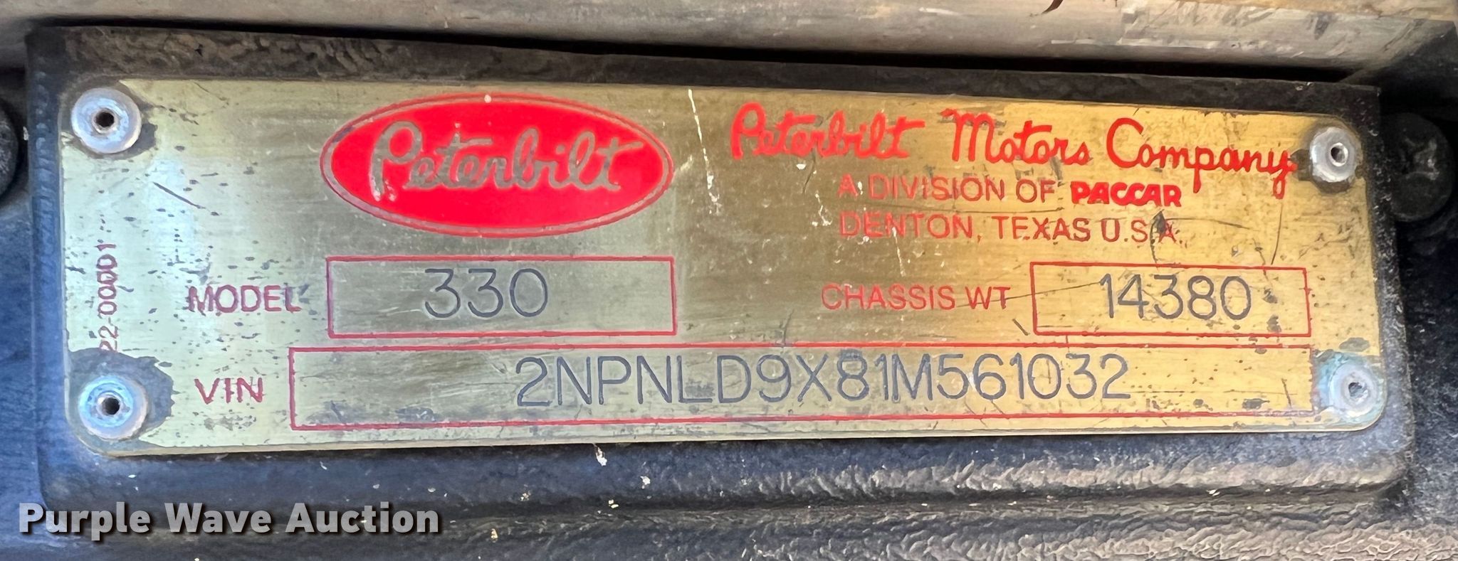 Purple Wave is selling a used Construction Dump Truck in Texas. This item is a 2001 Peterbilt 330 dump truck with the following: Miles: 235,470 on odometer, VIN: 2NPNLD9X81M561032