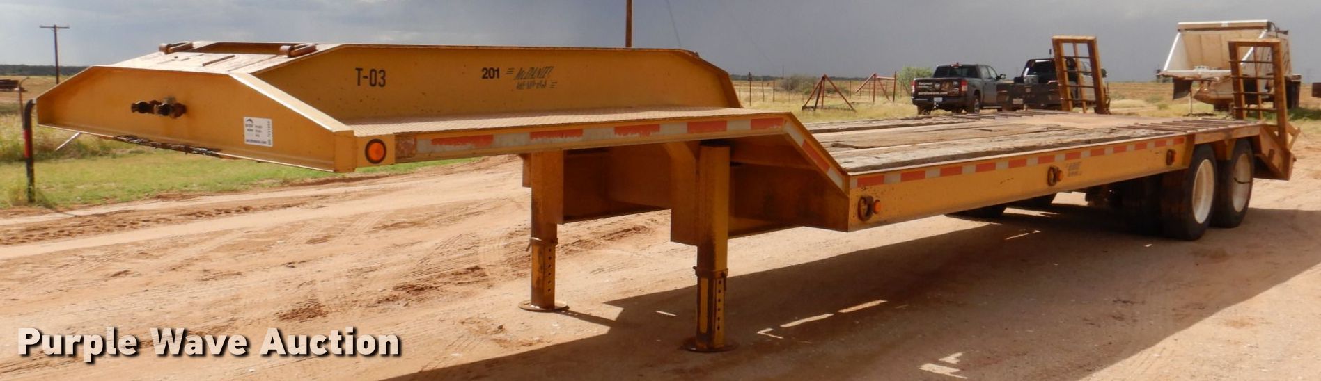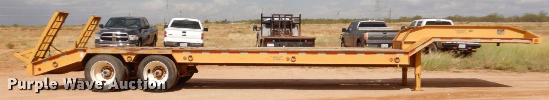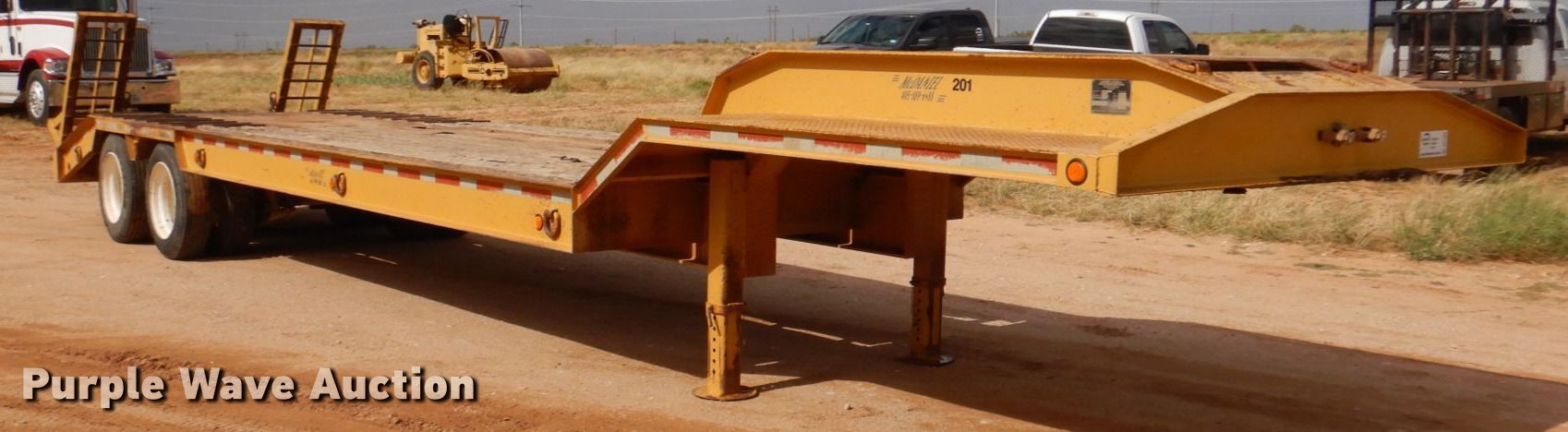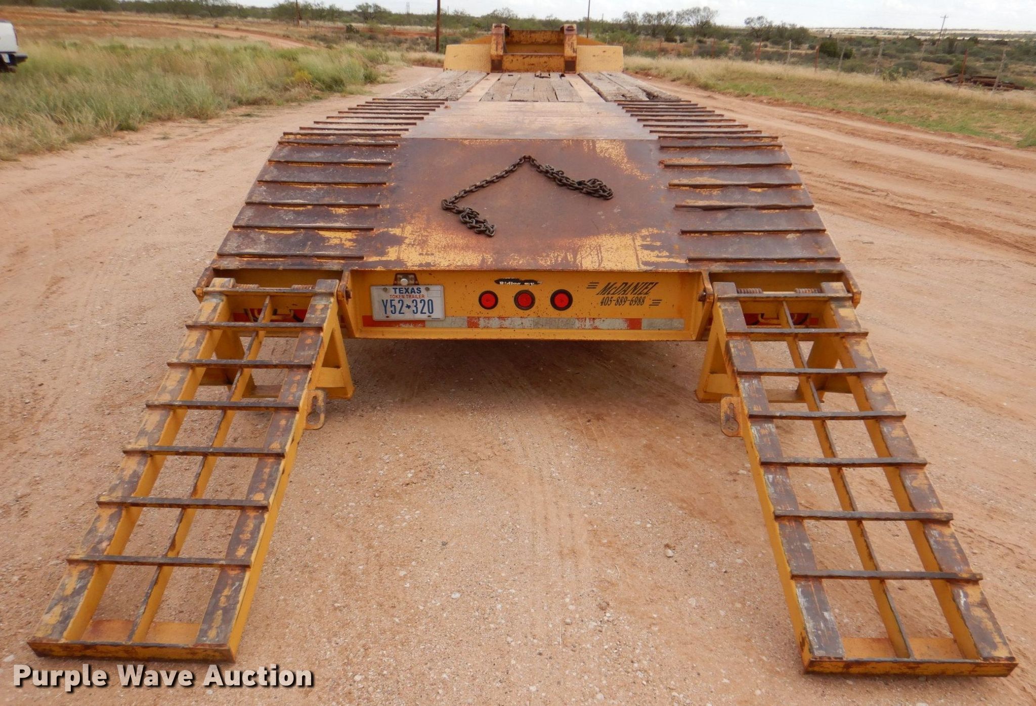 1995 McDaniel 18DE-35-2 equipment trailer. VIN: 1M9GN4021SA103012. Dimensions Overall: 41' L x 102" W, Deck: 25' 9" L x 102" W, Top deck length: 10', Tail length: 52", Ramps: Manual Length: 5'. Features Deck type: Steel, Wood. Chassis Hitch: Gooseneck, Landing gear: Dual, Suspension: Spring, Brakes: Air, Axles: Tandem, GAWR: 25,000 lbs. Tires Steel wheels, Size: 255/70R22.5. Texas title. Rowdy's Backhoe Construction. 8001 FM1606. Ira, TX 79527