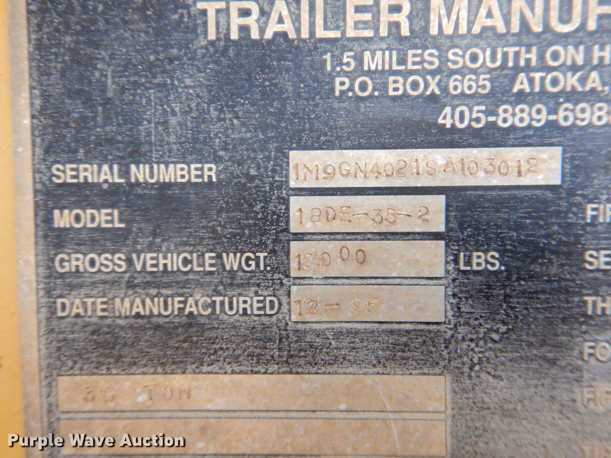 Purple Wave is selling a used Equip. Trailer in Texas. This item is a 1995 McDaniel 18DE-35-2 equipment trailer with the following: VIN: 1M9GN4021SA103012