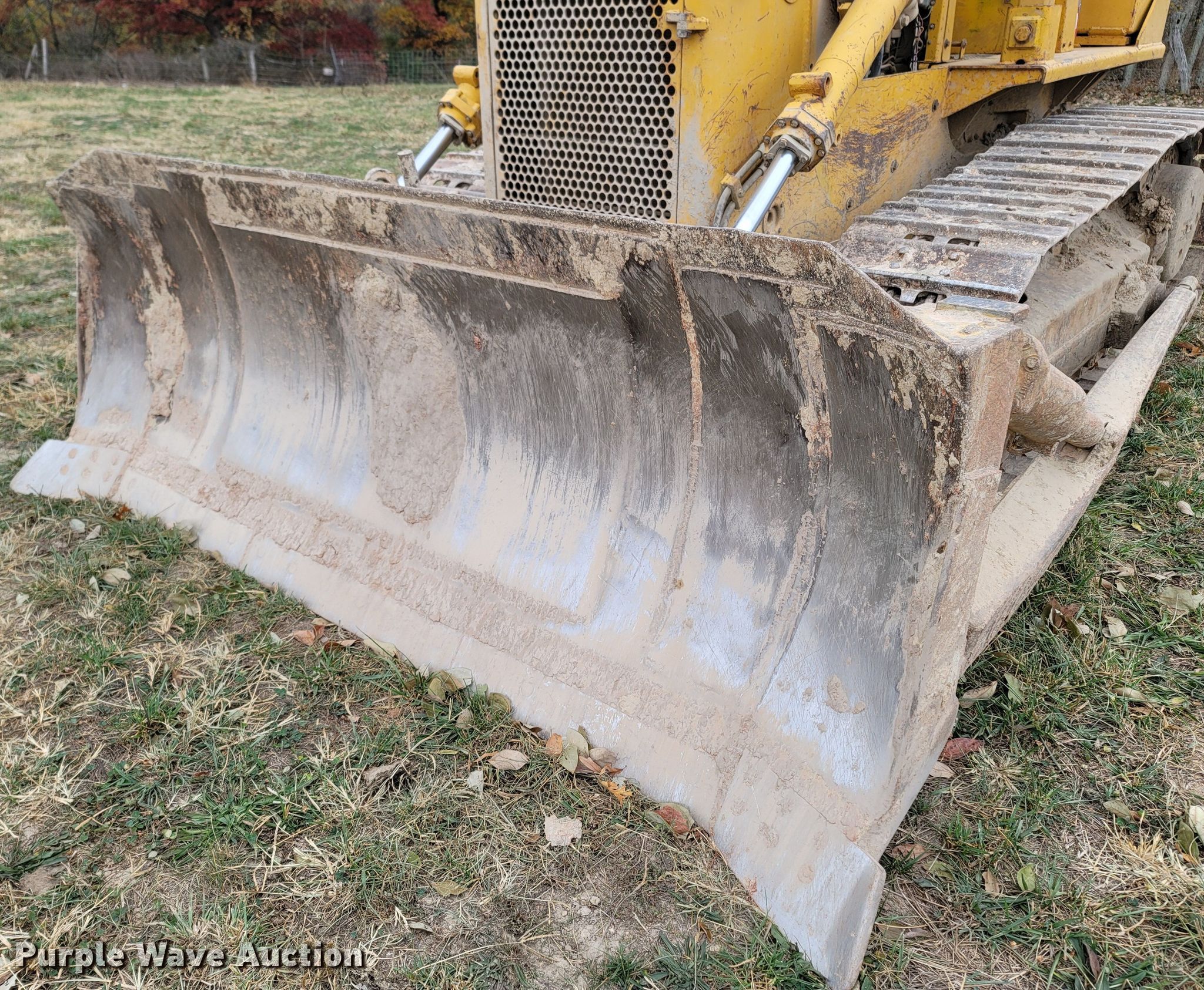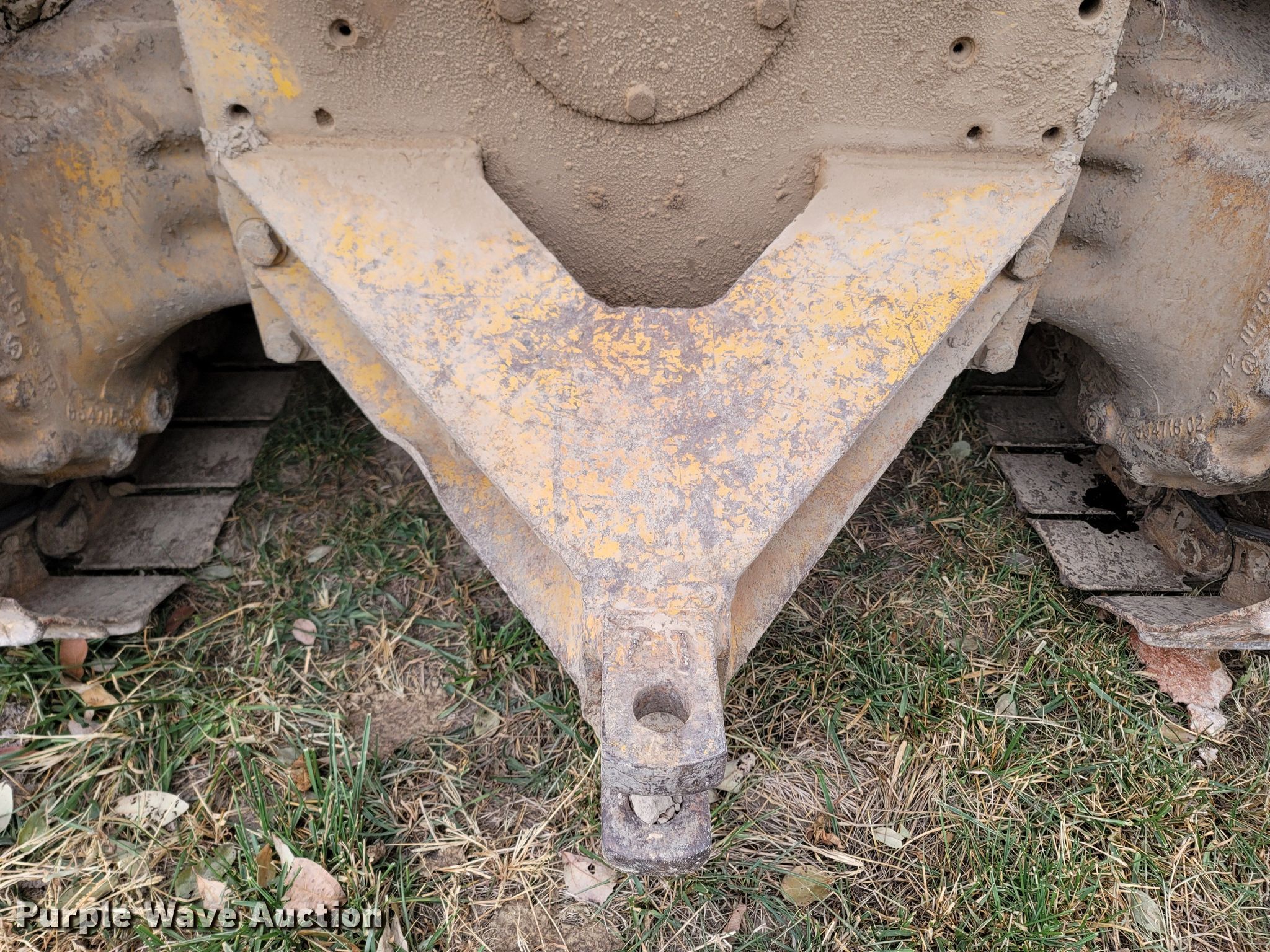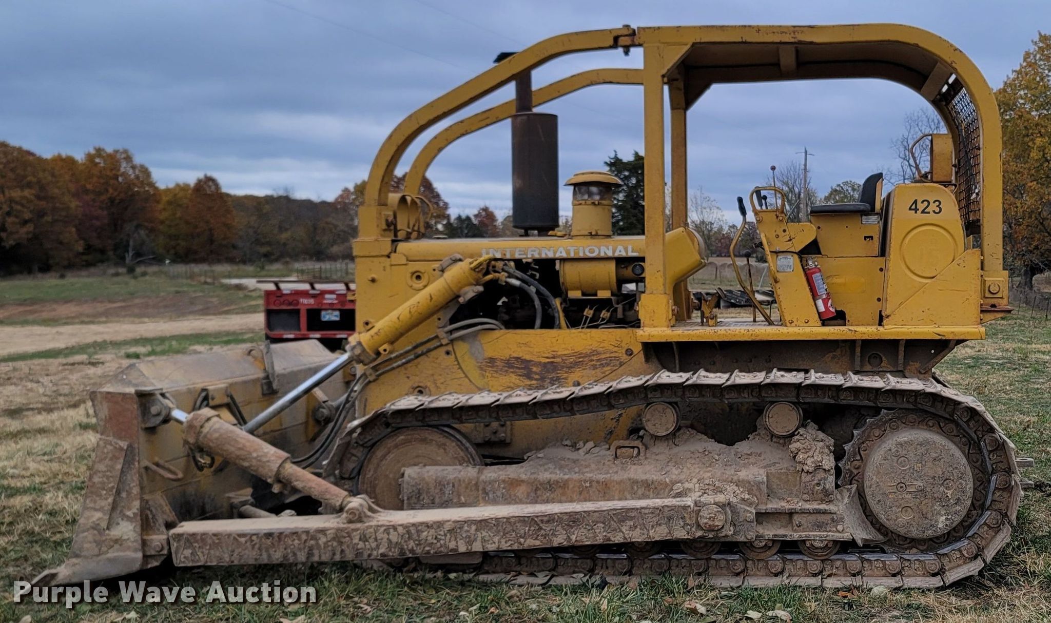 International TD15C dozer. Hours: 6,840 on meter, Serial: 4240002UI1330. Engine International DT466, Cylinders: 6, Fuel type: Diesel. Transmission Powershift, 4F - 4R. Operators station Canopy, Steering: Clutch brake. Features Screen guards, Rear drawbar, Dozer blade Type: Semi-U, Single-tilt, Width: 10' 4" W. Tracks Width: 22", Grouser pads: Single, Bottom rollers: 6. A Plus Farms. Buckbrush Road. Seymour, MO 65746