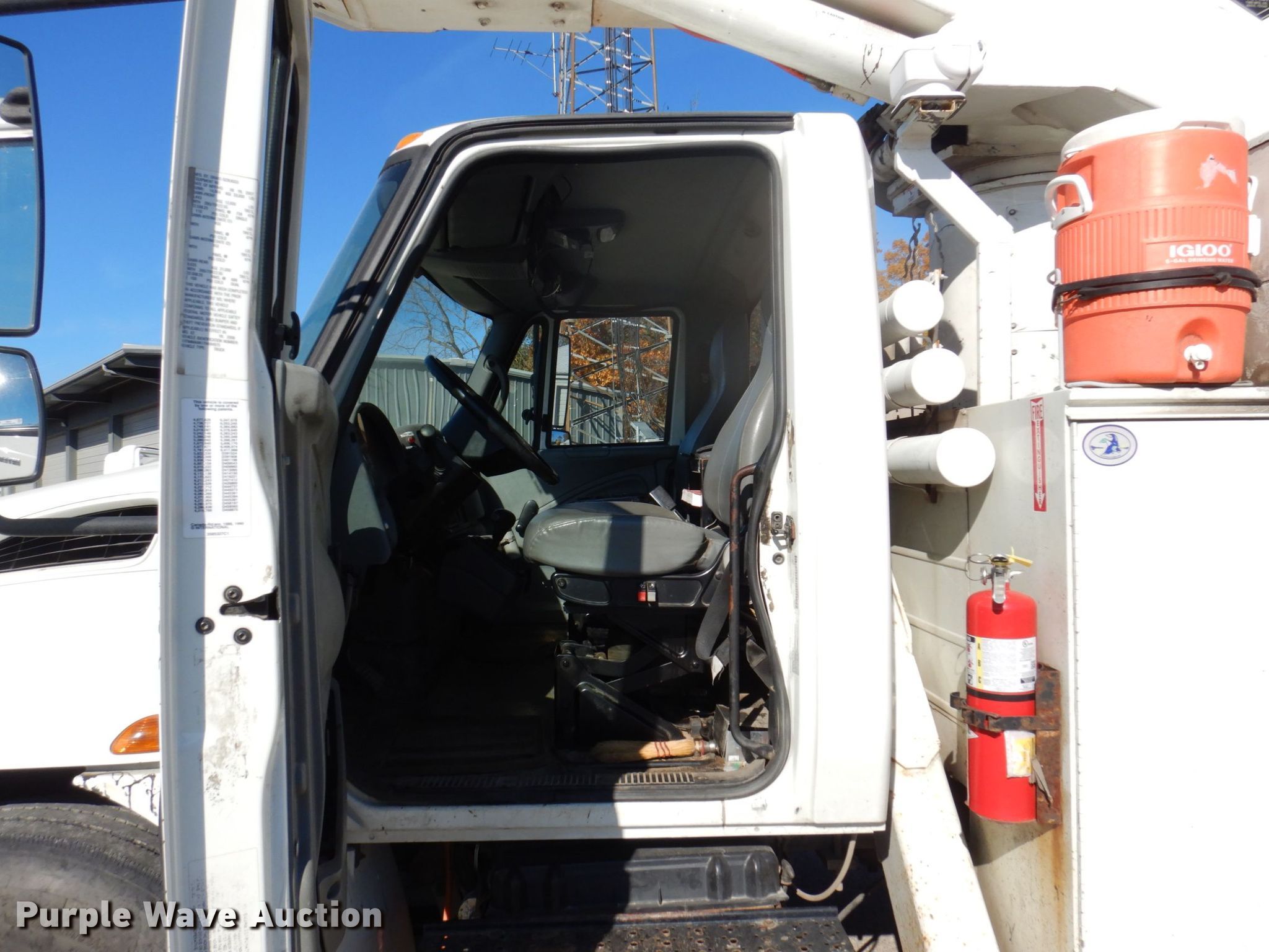 2007 International 4300 bucket truck. Miles: 144,540 on odometer, VIN: 1HTMMAAN17H484975, Unit #: 25. Engine International DT466, Displacement: 7.6L, Cylinders: 6, Fuel type: Diesel. Transmission Automatic. Chassis Axles: Single, Suspension: Spring, Brakes: Air, PTO, GVWR: 33,000 lbs. Interior AC, Heat, Heated mirrors, Cruise control, Auxiliary controls, Brake controller. Features Bed Knapheide 6147HC, Serial: 20061213-0048917, 12' 3" L x 95" W, Boom Versalift VST-5000I01, Serial: GG060092, Maximum lift capacity: 500 lbs, Maximum lift height: 50', Boom type: Articulating, Insulated, Telescopic, Man basket, Boom controls Ground, Platform/ basket, Material handler, Certification valid through: 12/2022. Tires Front: 315/80R22.5, Rear: 285/75R22.5. Notes Contents not included. Illinois title. Title distribution may be delayed up to 14 days from verification of funds. Coles-Moultrie Electric Cooperative. 104 Dewitt Ave. Mattoon, IL 61938