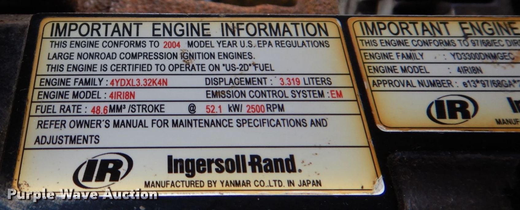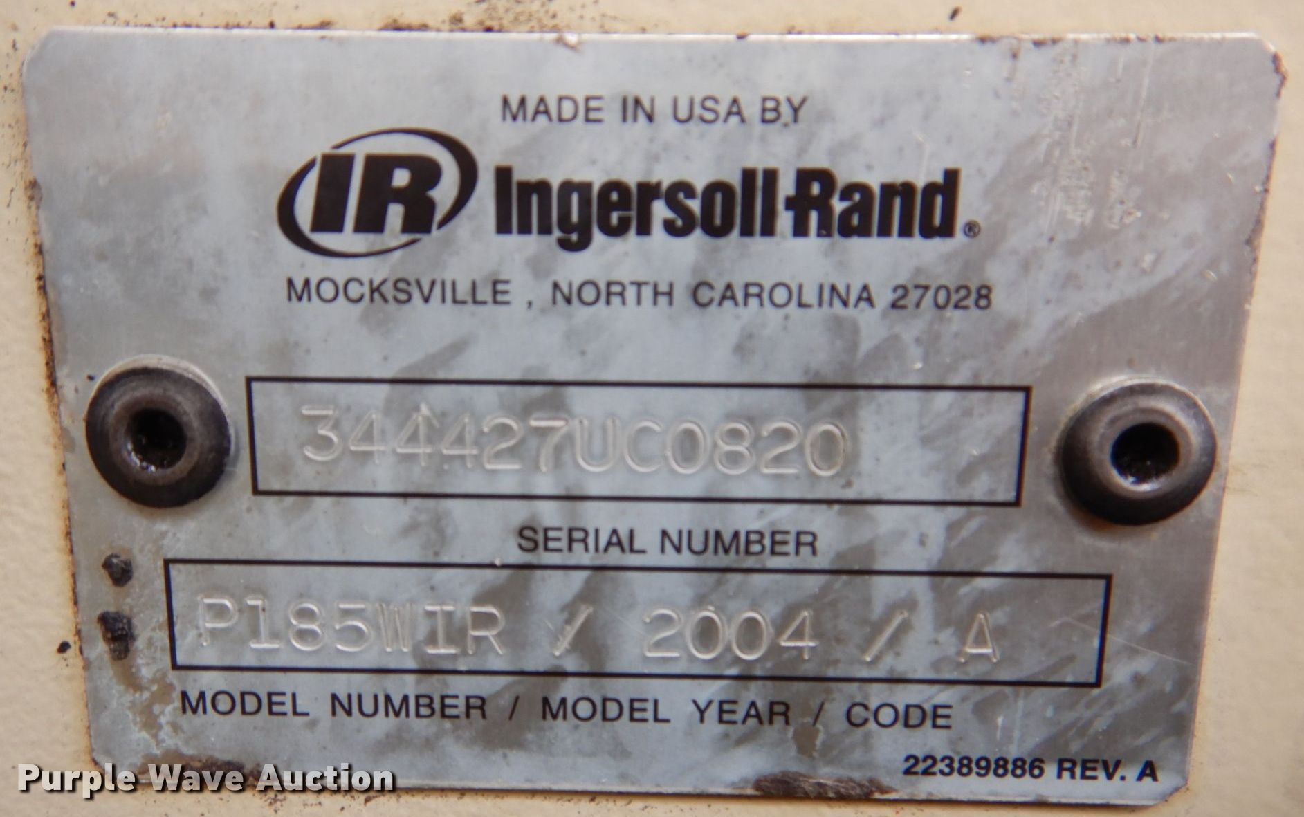 Purple Wave is selling a used Air Compressor in Illinois. This item is a 2004 Ingersoll Rand P185WR air compressor with the following: Hours: 743 on meter, Serial: 344427UC0820