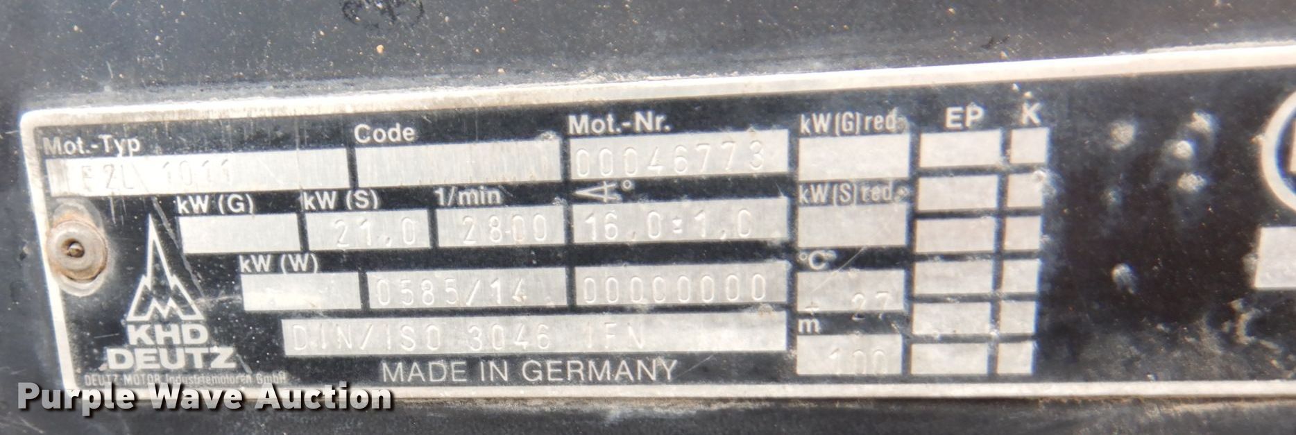 1995 Bomag BW120AD-2 double drum roller. Hours: 1,548 on meter, Serial: 101170501785. Engine Deutz F2L1011, Cylinders: 2, Fuel type: Diesel. Transmission Hydrostatic. Features Drum: Smooth, Vibratory system: Double, Front drum Width: 47", Diameter: 27", Rear drum Width: 47", Diameter: 27", Drum scrapers: Front, Rear, Water spray applicator: Front, Rear. United Heavy Haul LLC. 450 West Taft Drive. South Holland, IL 60473