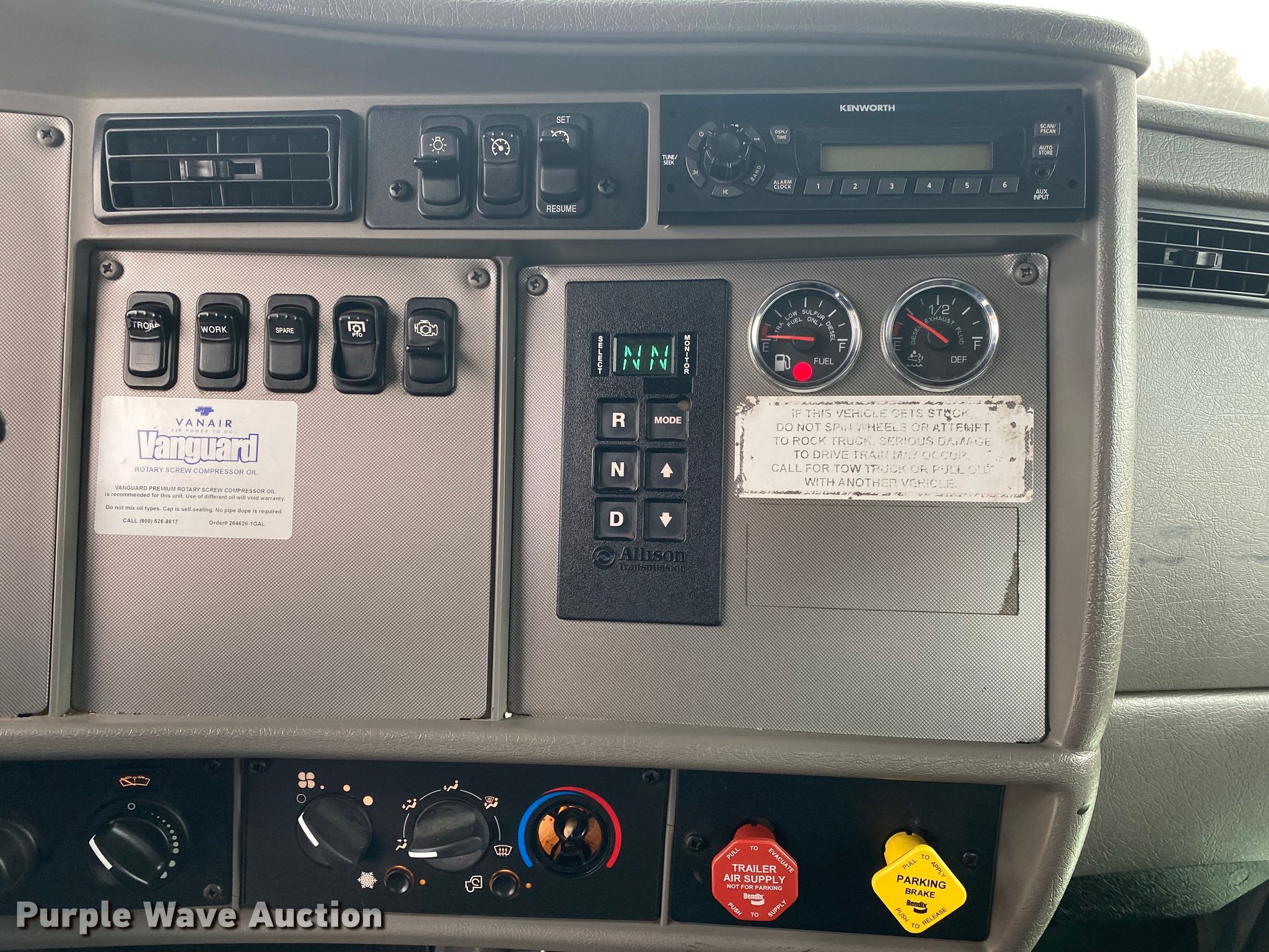 2012 Kenworth T370 utility / service truck. Miles: 31 on odometer Actual mileage unknown, Hours: 17 on meter, VIN: 2NKHHM7X7CM303188. Engine Paccar PX-6, Displacement: 6.7L, Cylinders: 6, Fuel type: Diesel. Transmission Automatic. Chassis Axles: Single, Brakes: Air, PTO, GVWR: 33,000 lbs. Interior AC, Heat, Power locks, Cruise control. Operational Bed Omaha Service Bodies, 13' x 94" W, Vanair 185UDSN. Tires Size: 11R22.5. Notes ECM has been replaced. Oklahoma title. Mileage has not been verified. Exempt will be written in the odometer disclosure on the title. 15600 N 145th E. AVE. Collinsville, OK 74021